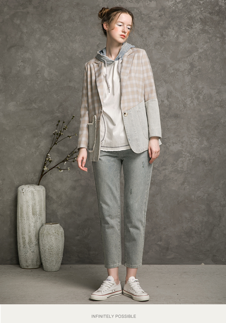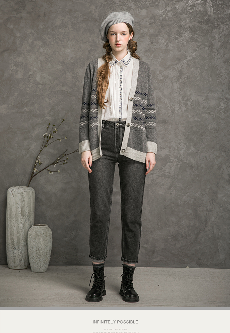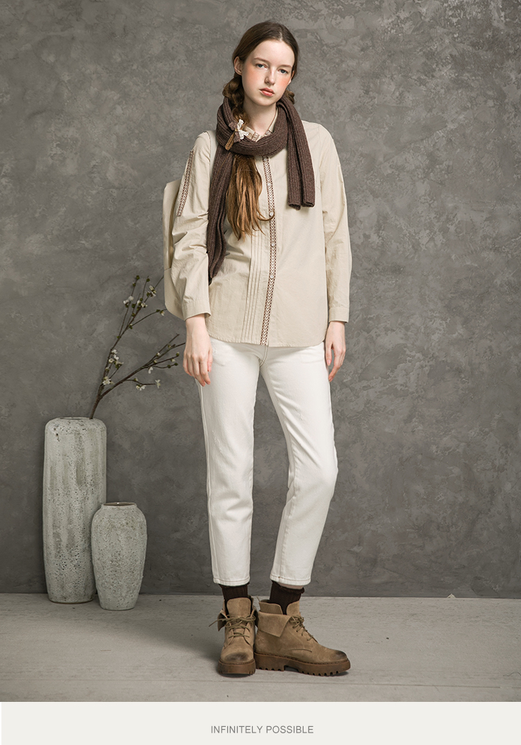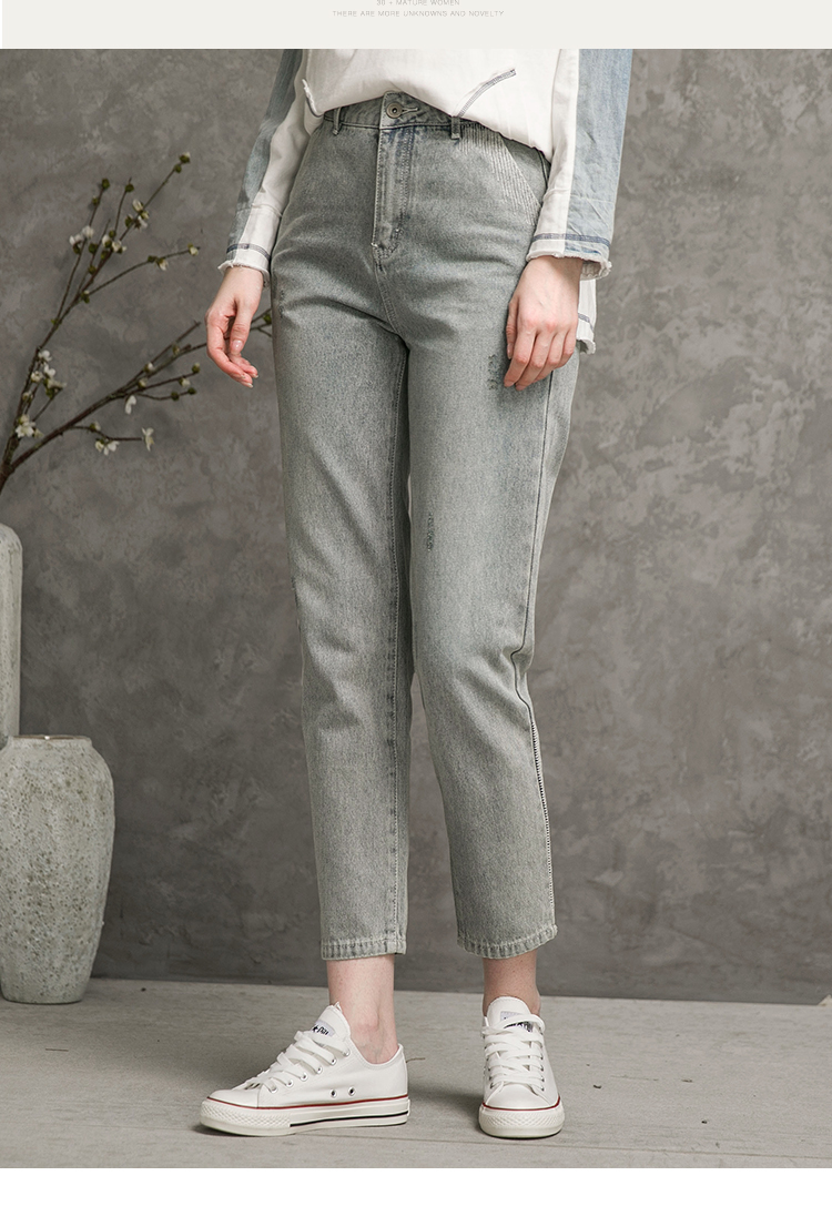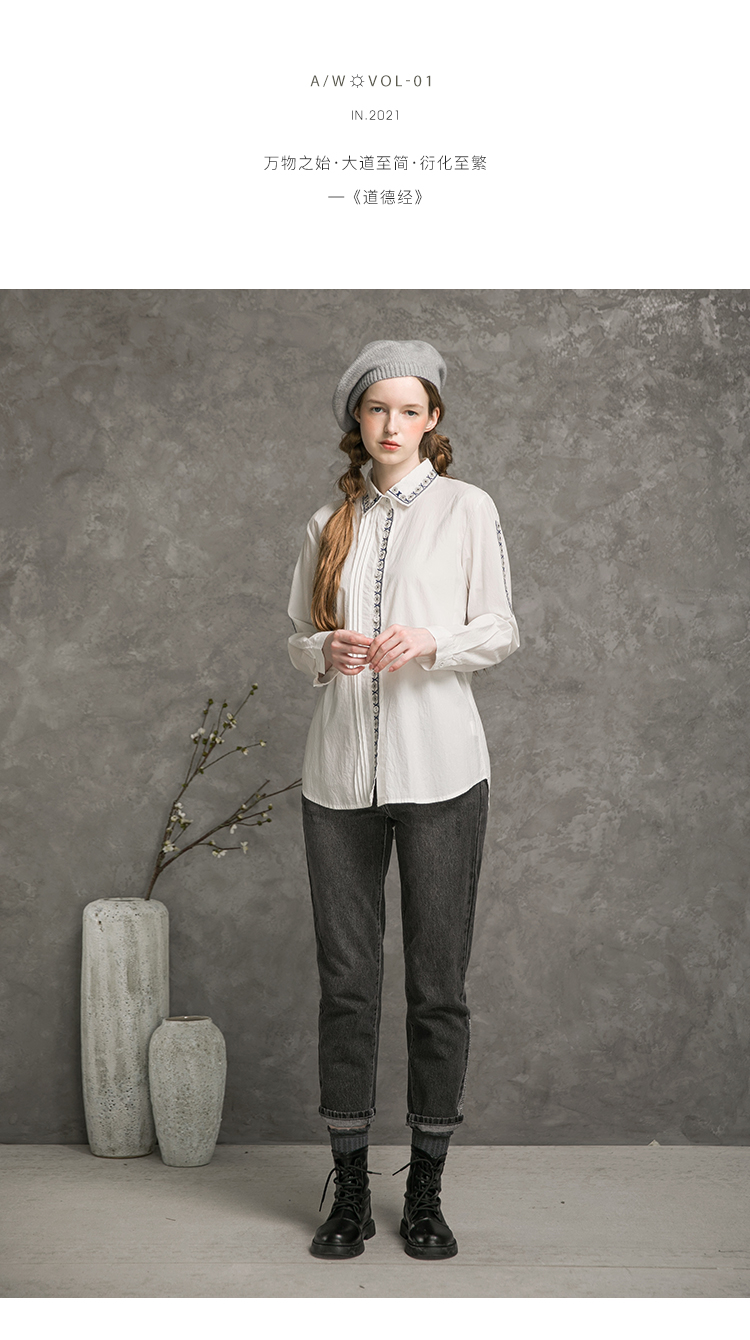 Famecoco范可儿刺绣牛仔裤女秋直筒设计感长裤F216GA009