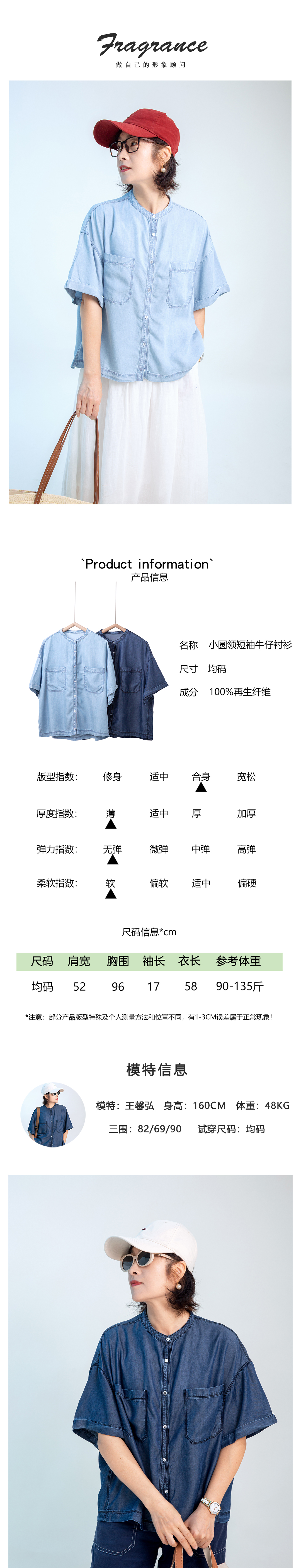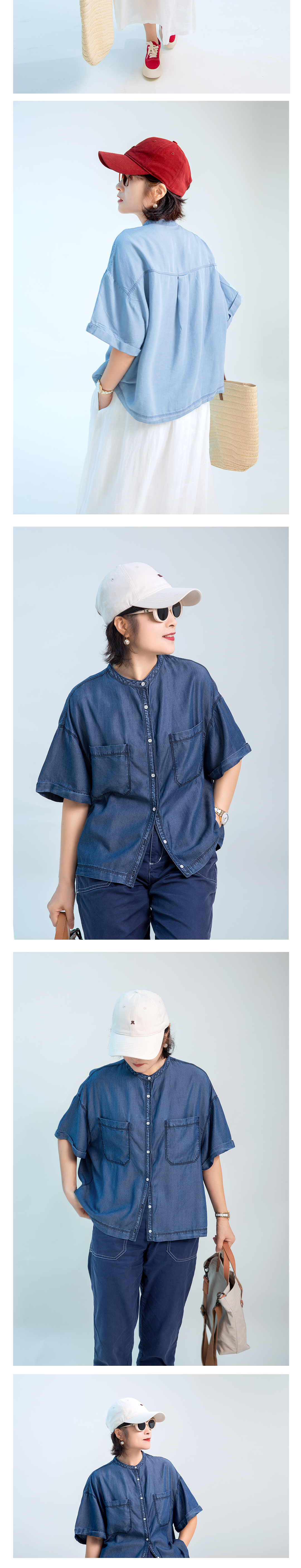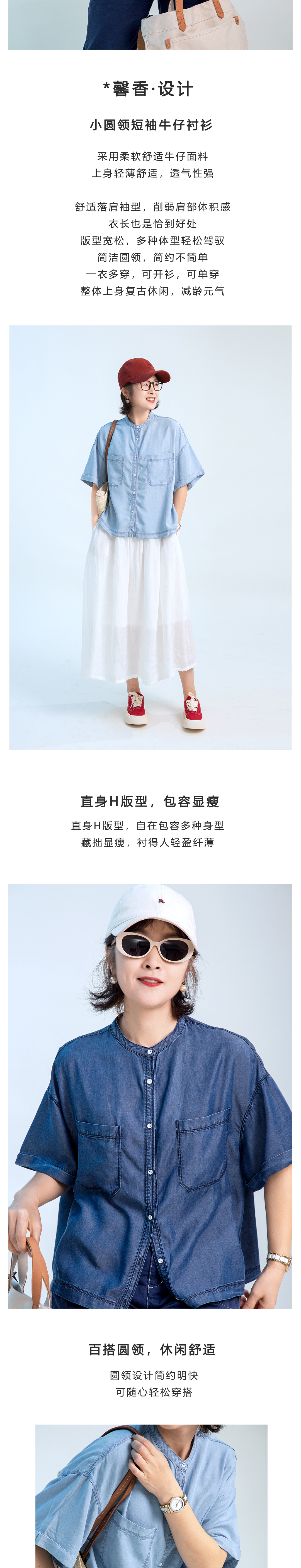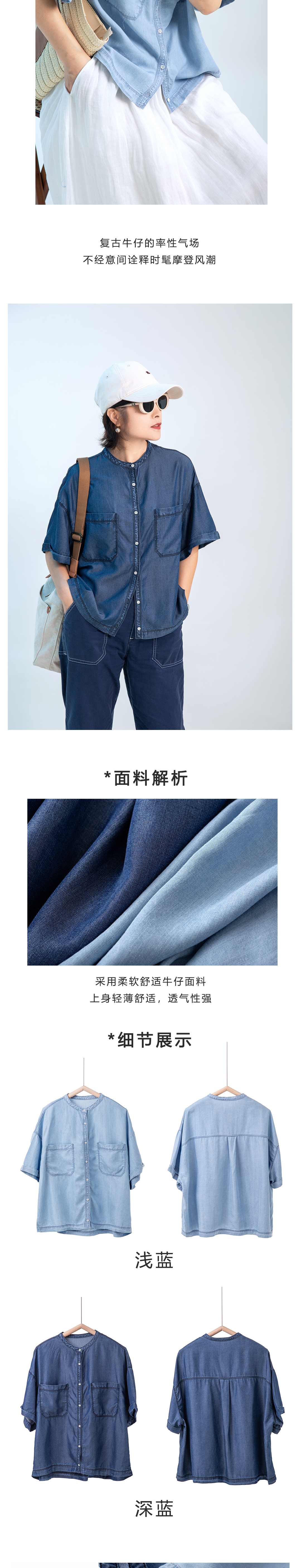 小圆领短袖牛仔衬衫