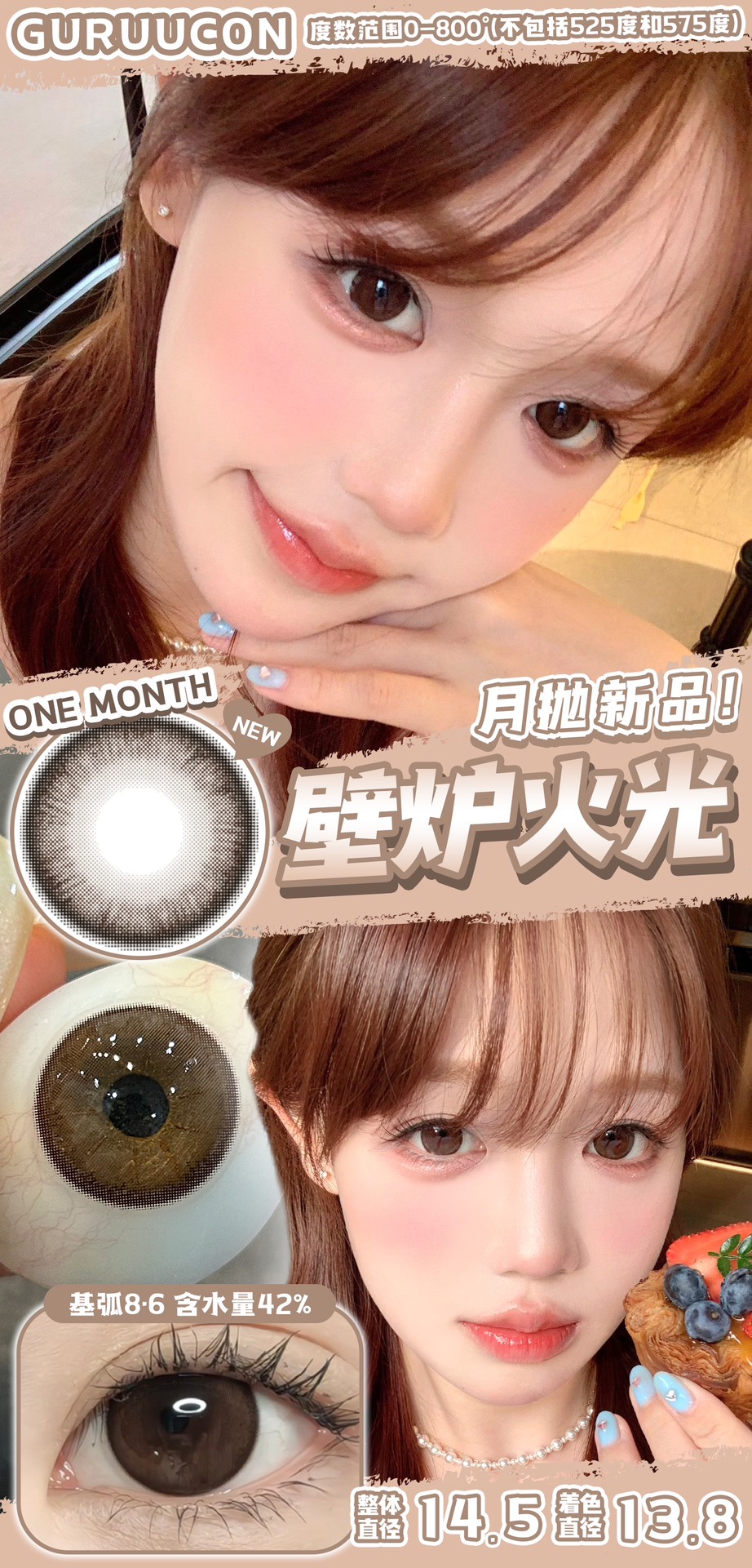 guruucon(gugulens旗下) 月抛 壁炉火光 直径14.5mm着色13.8mm