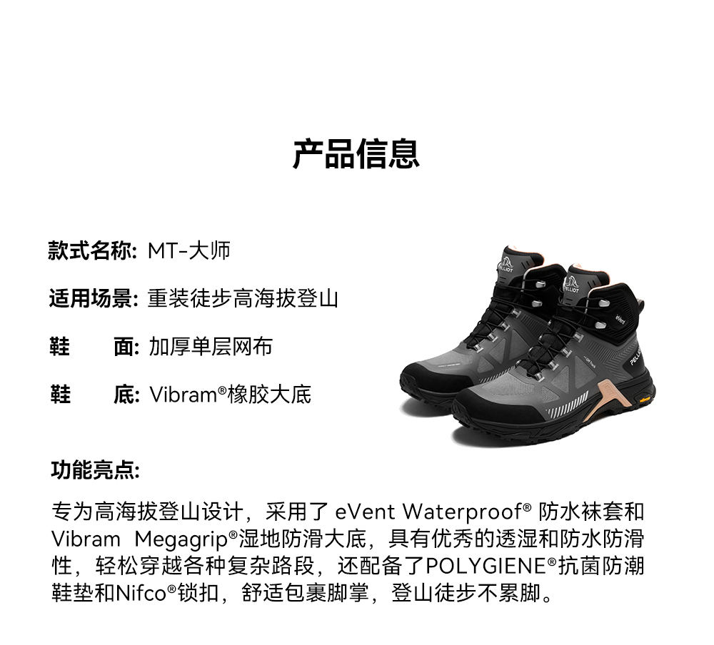 【MT-大师】伯希和户外高帮登山鞋女Vibram防滑防水爬山徒步鞋男