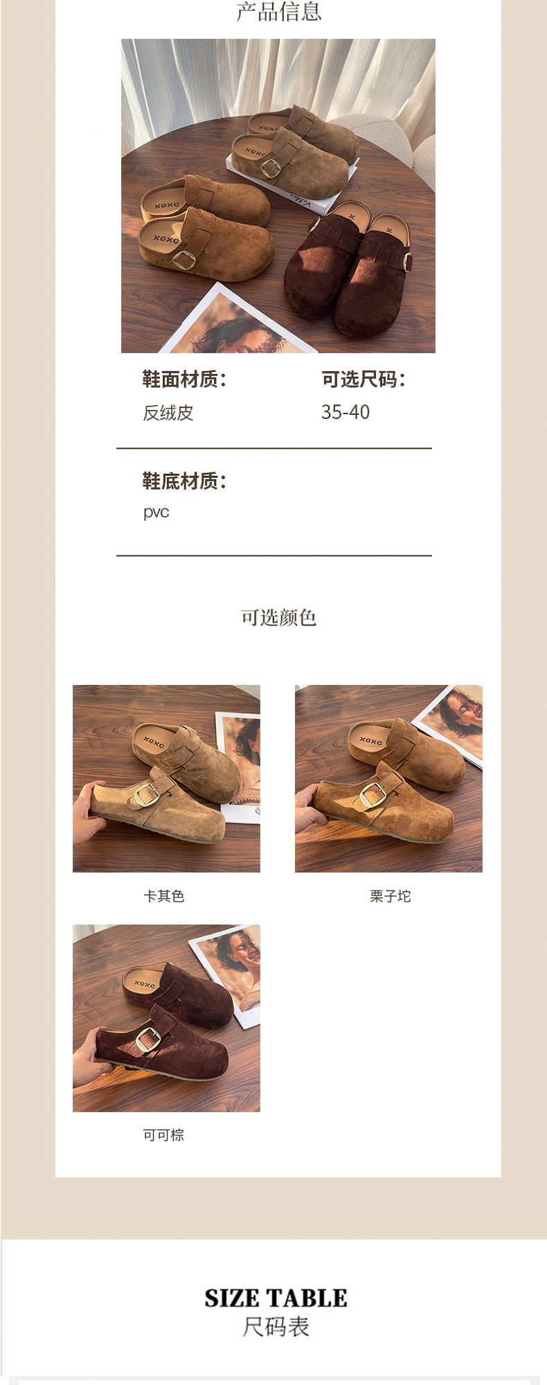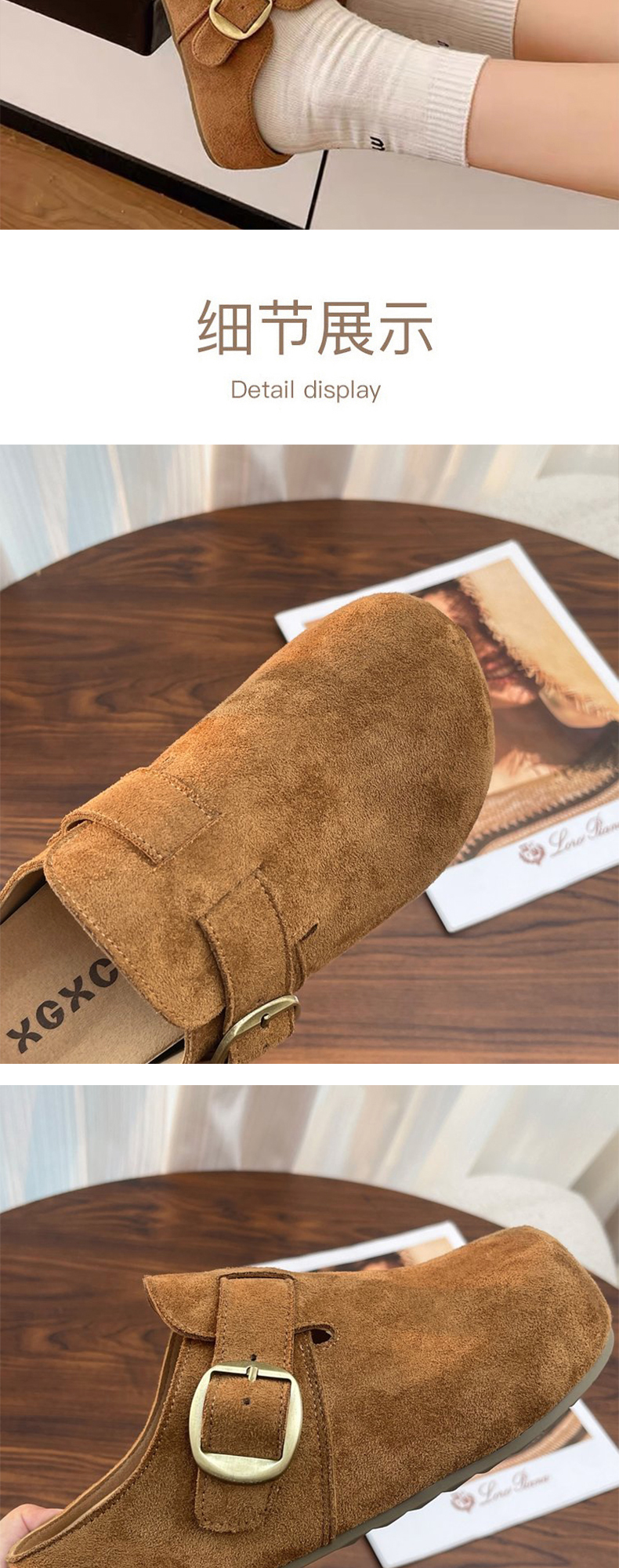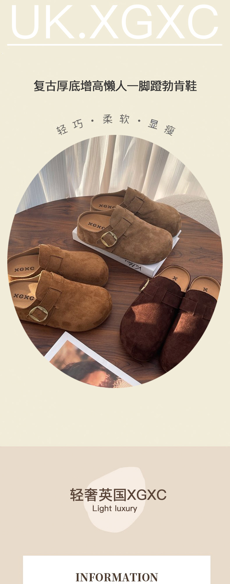 【时髦百搭】XGXC复古厚底增高勃肯鞋 半拖一脚蹬