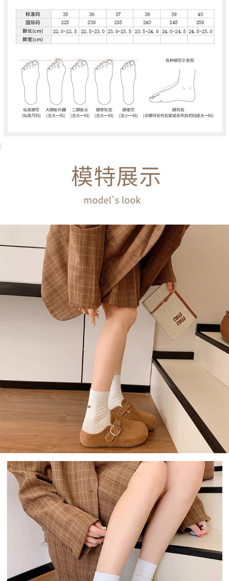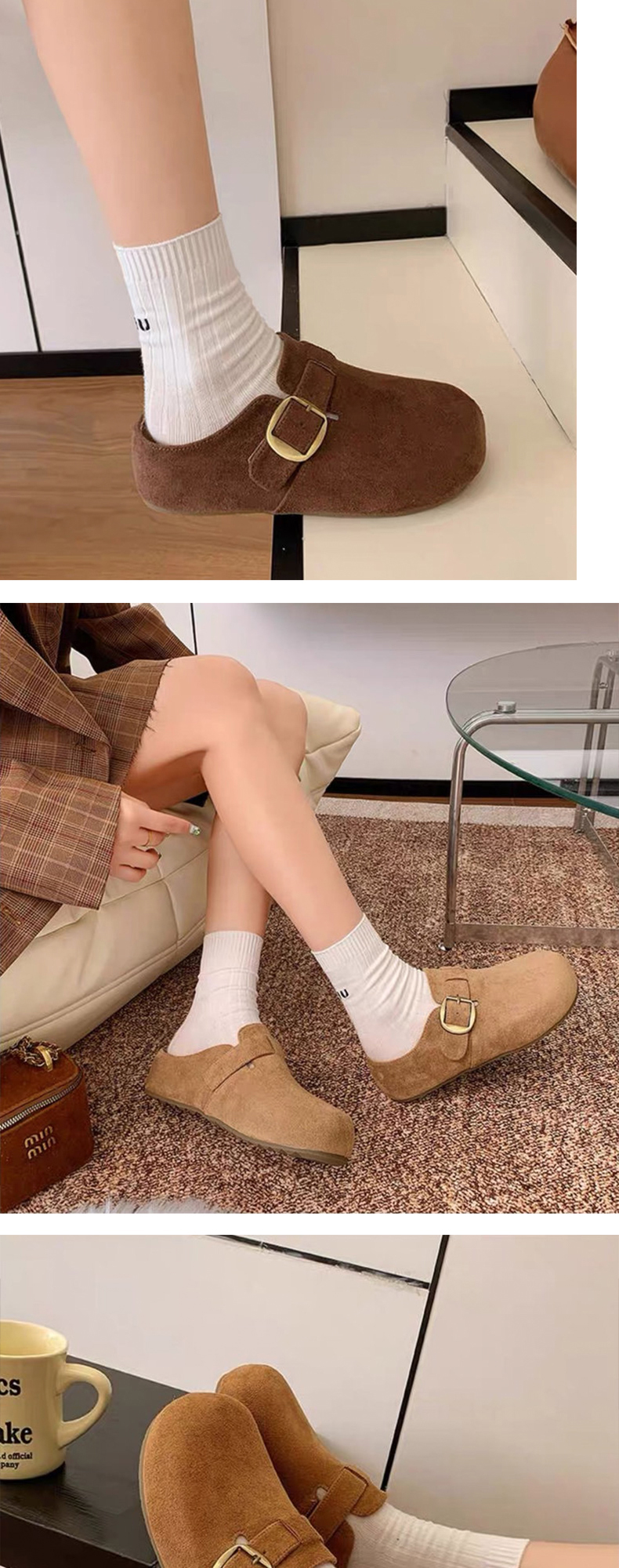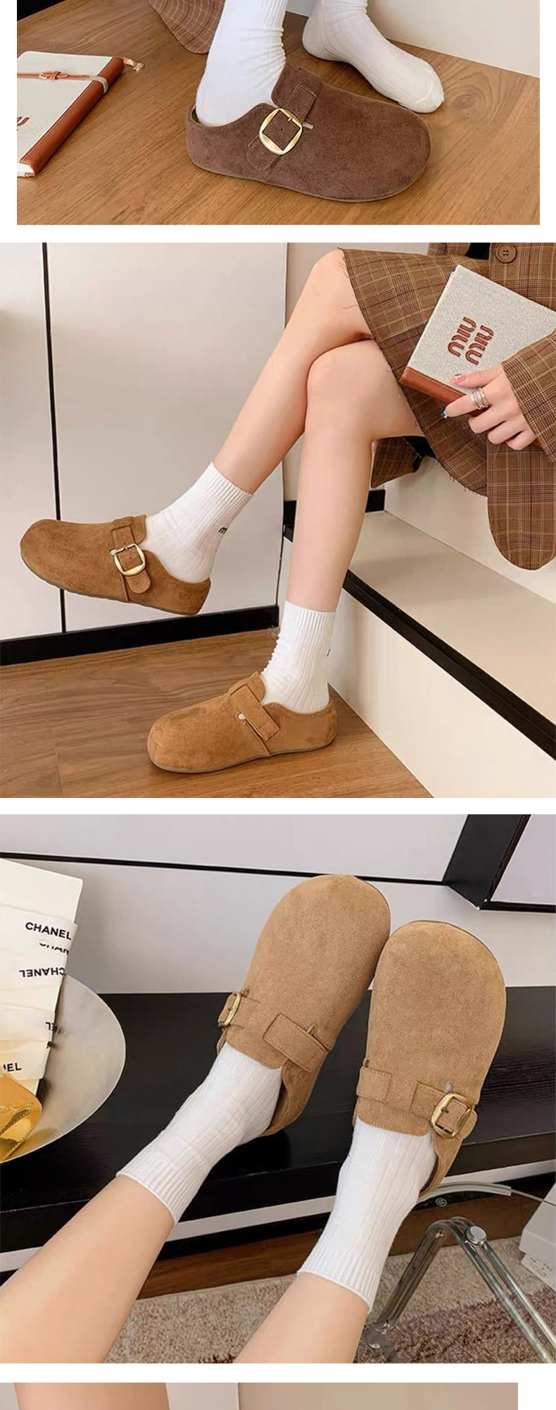 【时髦百搭】XGXC复古厚底增高勃肯鞋 半拖一脚蹬