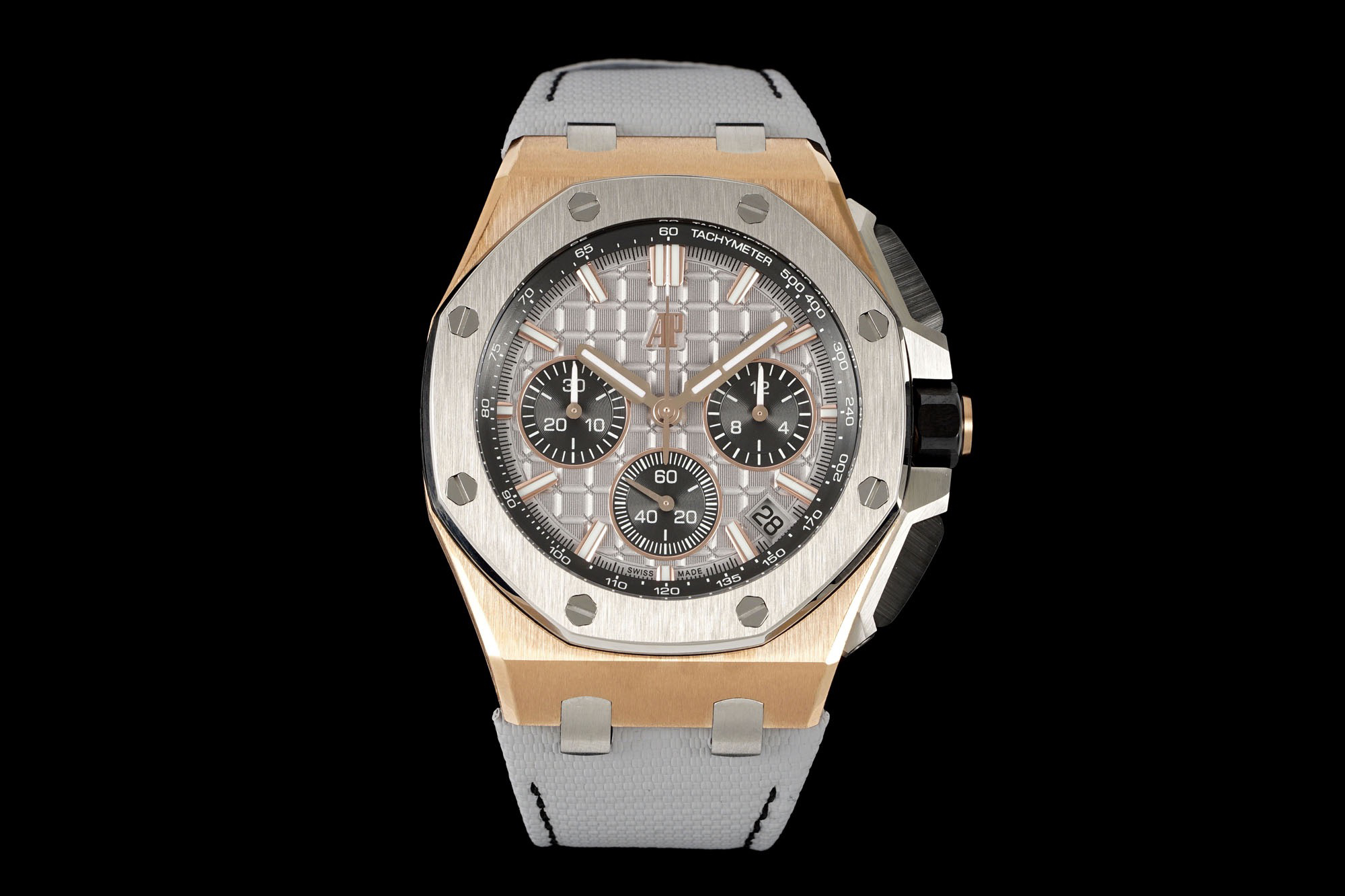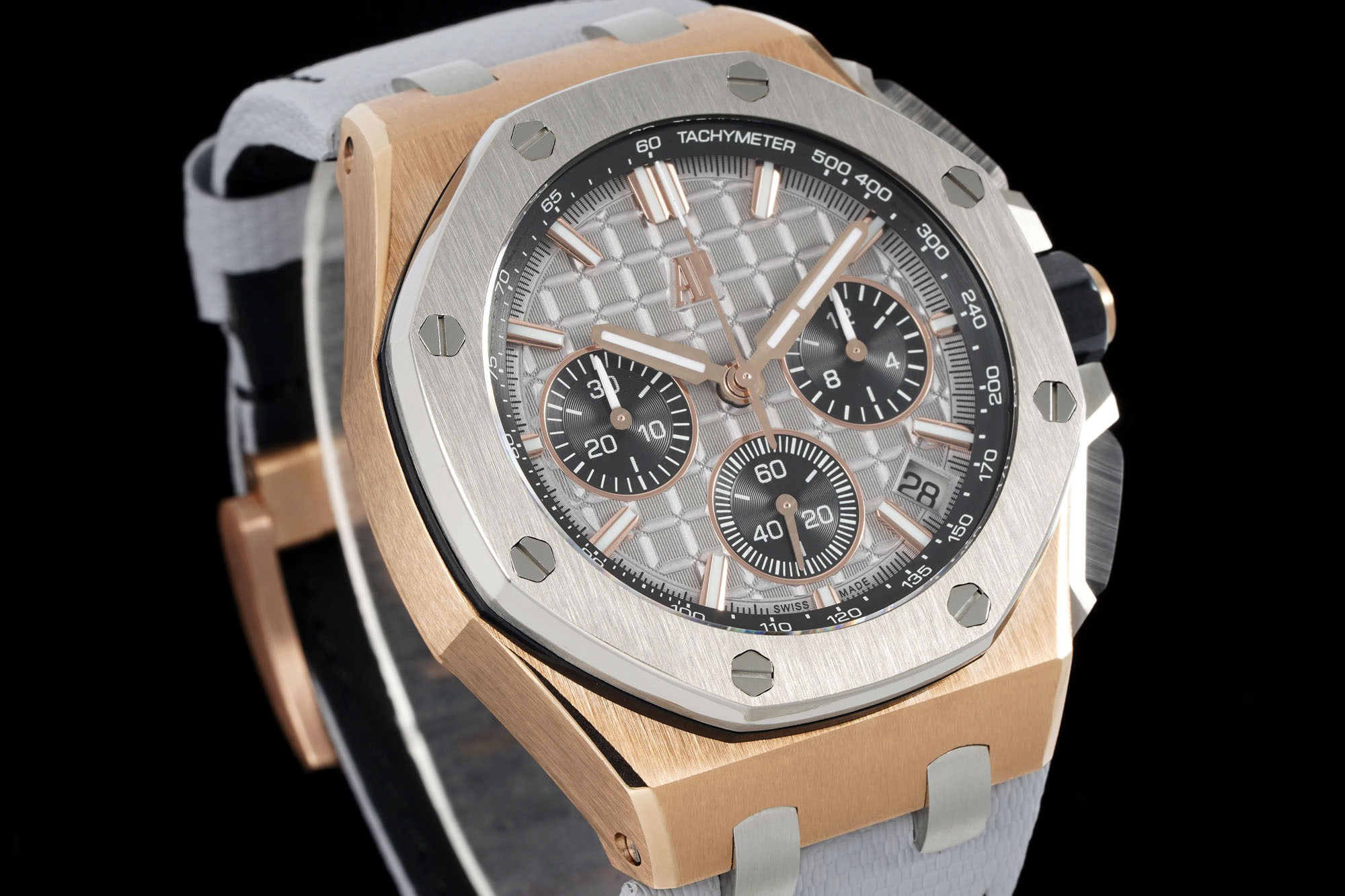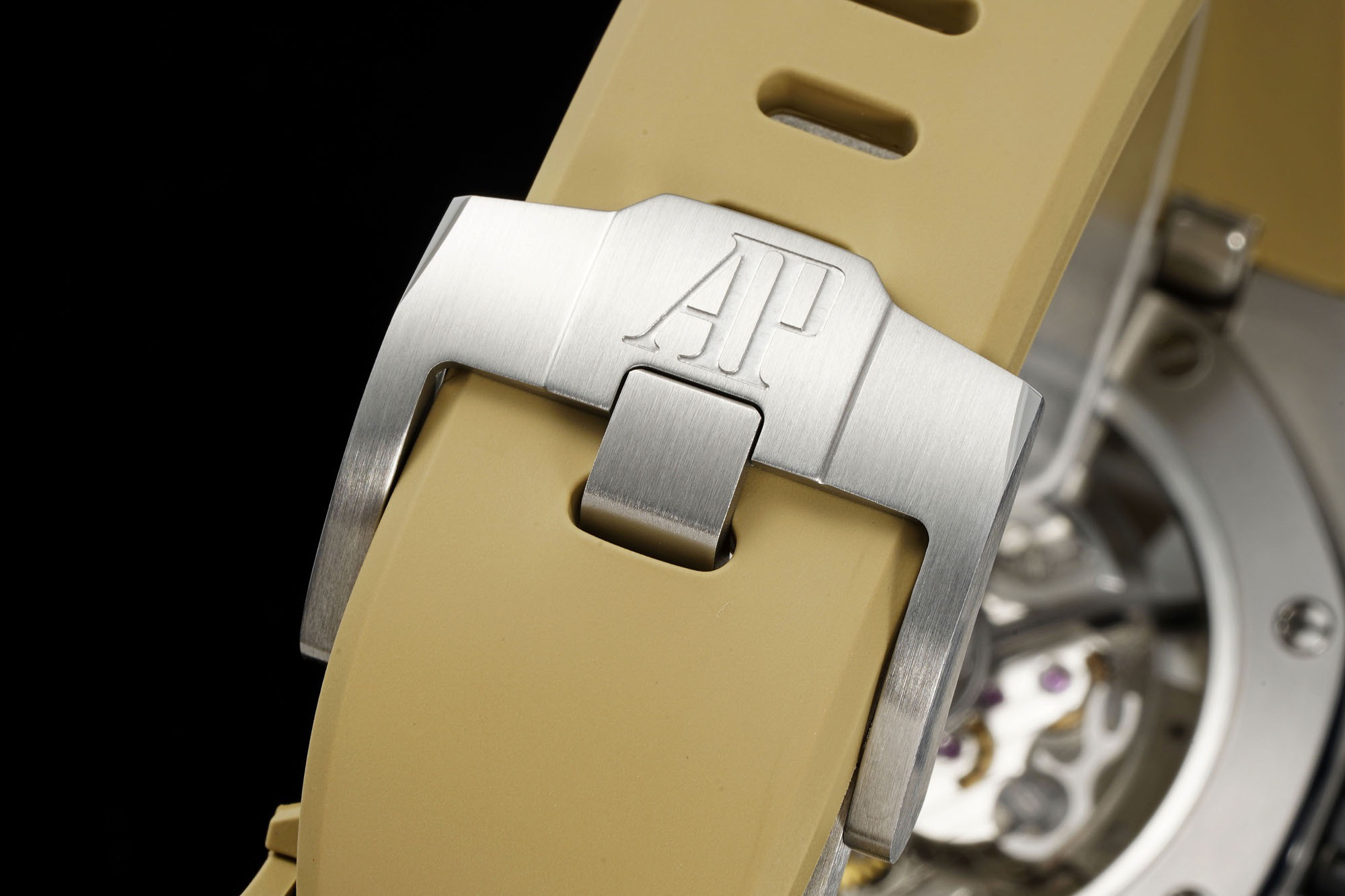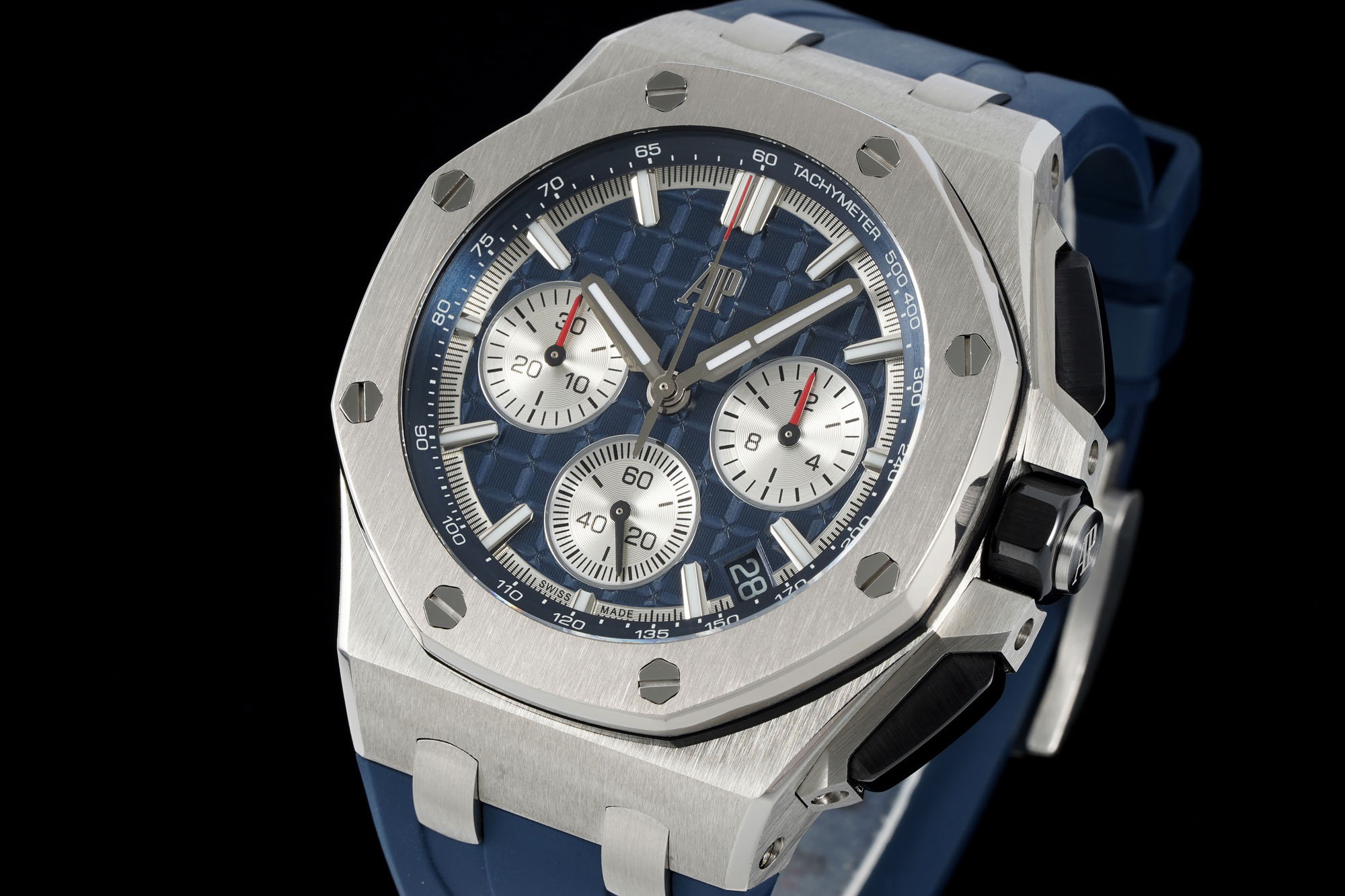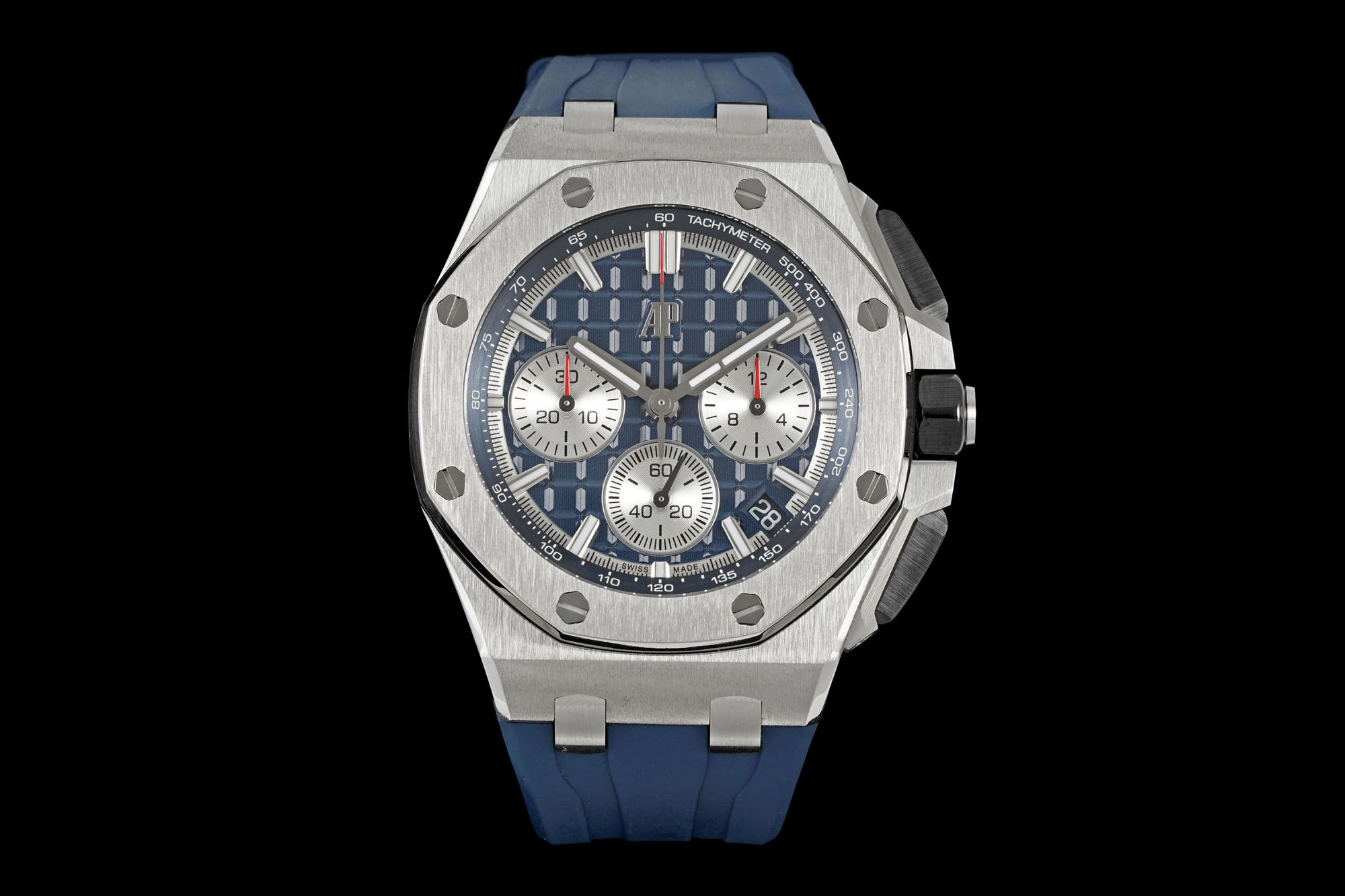 In addition to the titanium version, the Royal Oak Offshore Chronograph 43mm features a black ceramic bezel that creates a sharp contrast in material and color. The crown and buttons are also made of ceramic material. We have purchased genuine second-hand watches and made super copies of the original molds. The craftsmanship is exquisite and the polishing is fine, making it one of the finest pieces in the world ❕❕❕