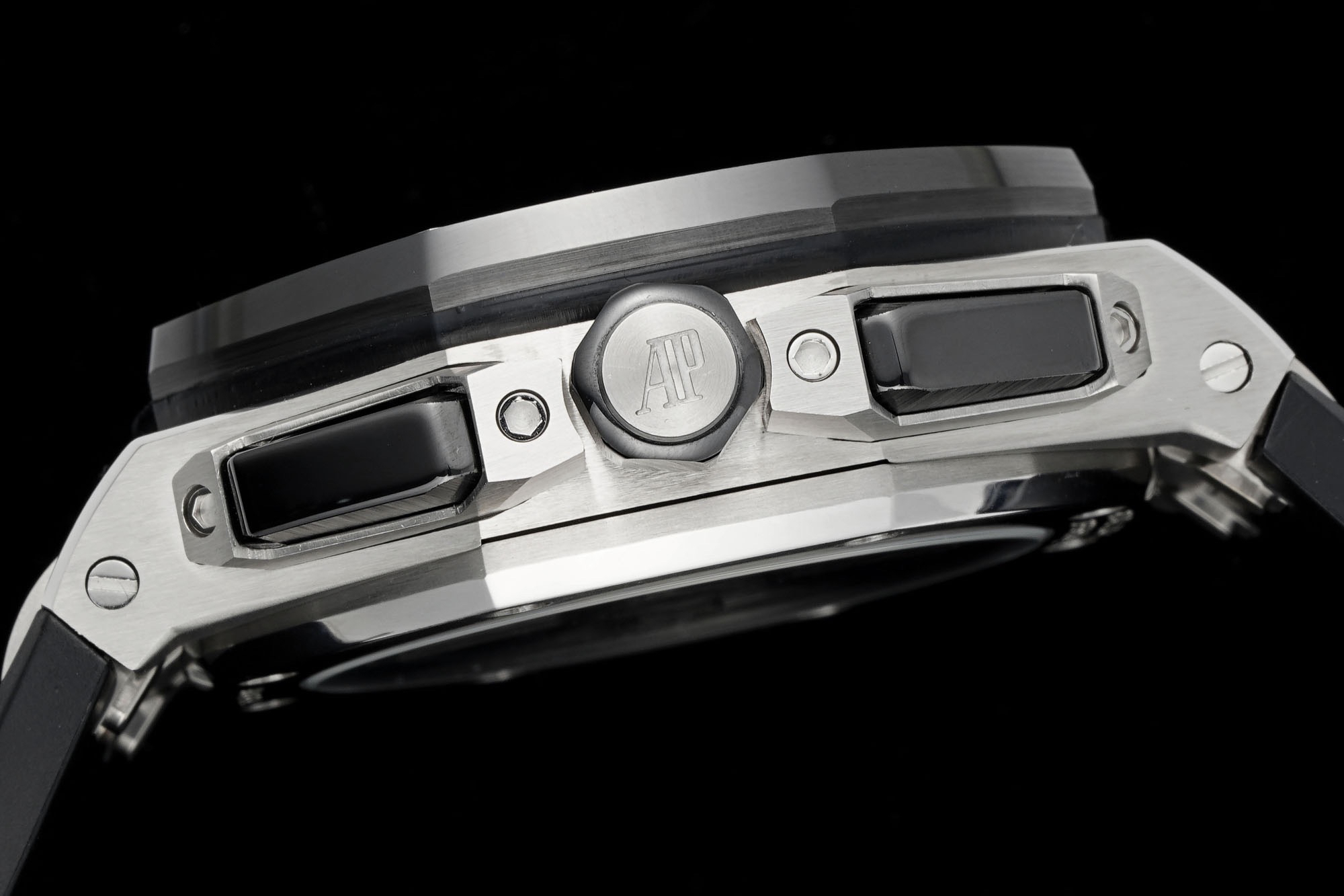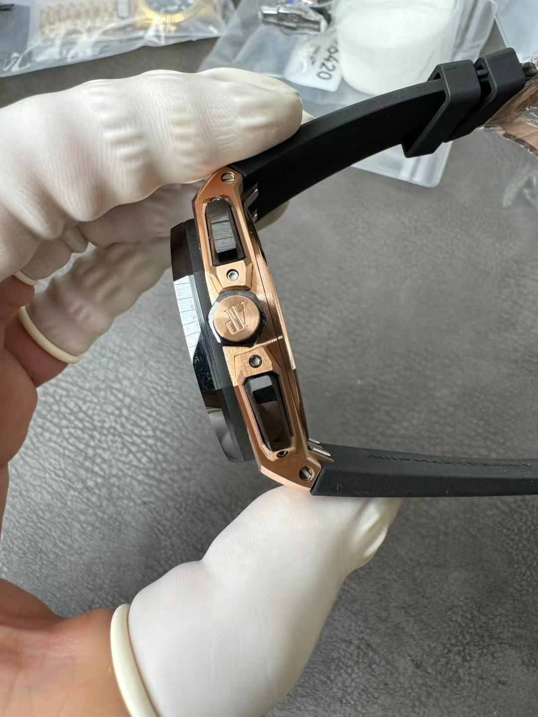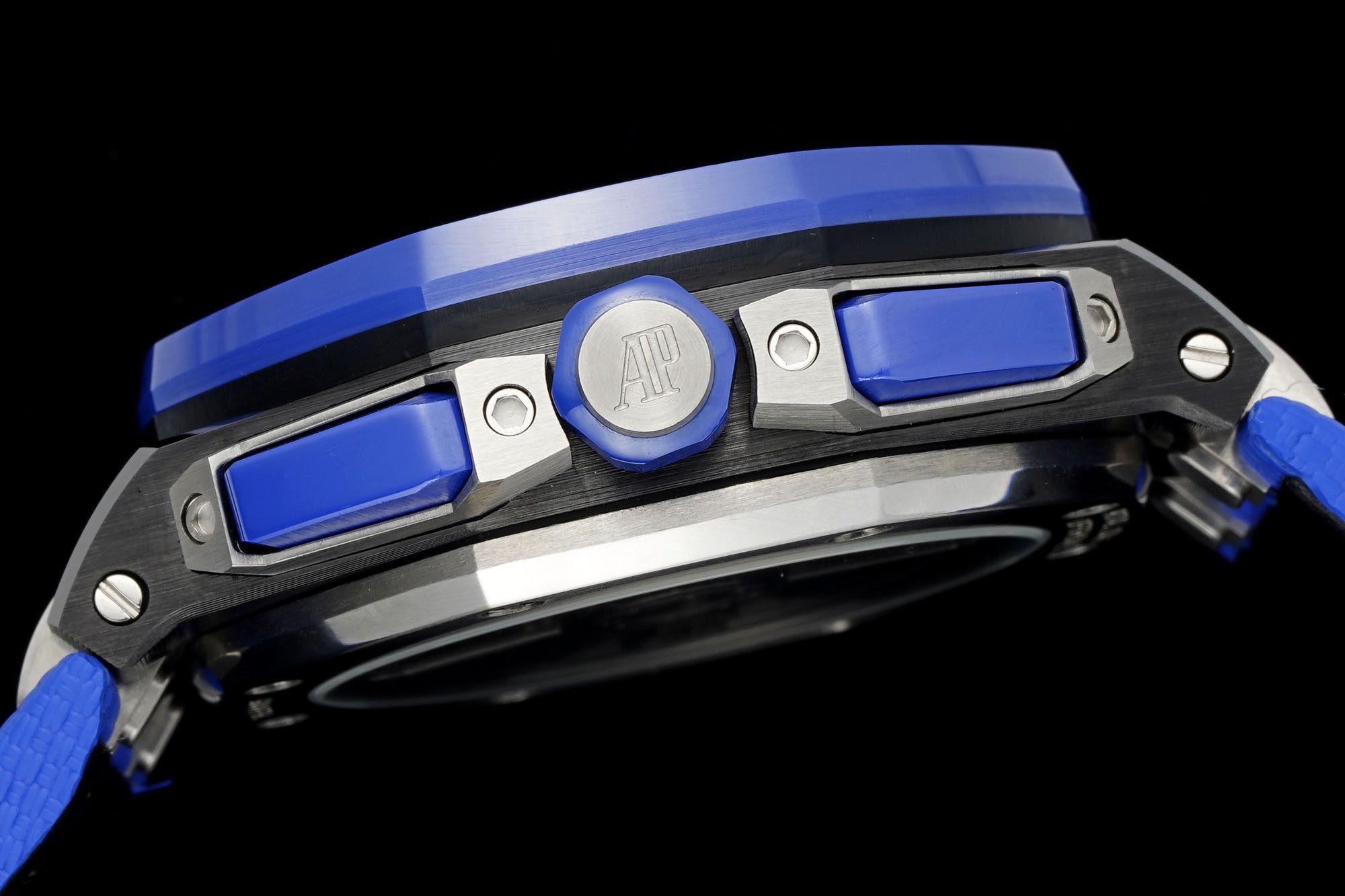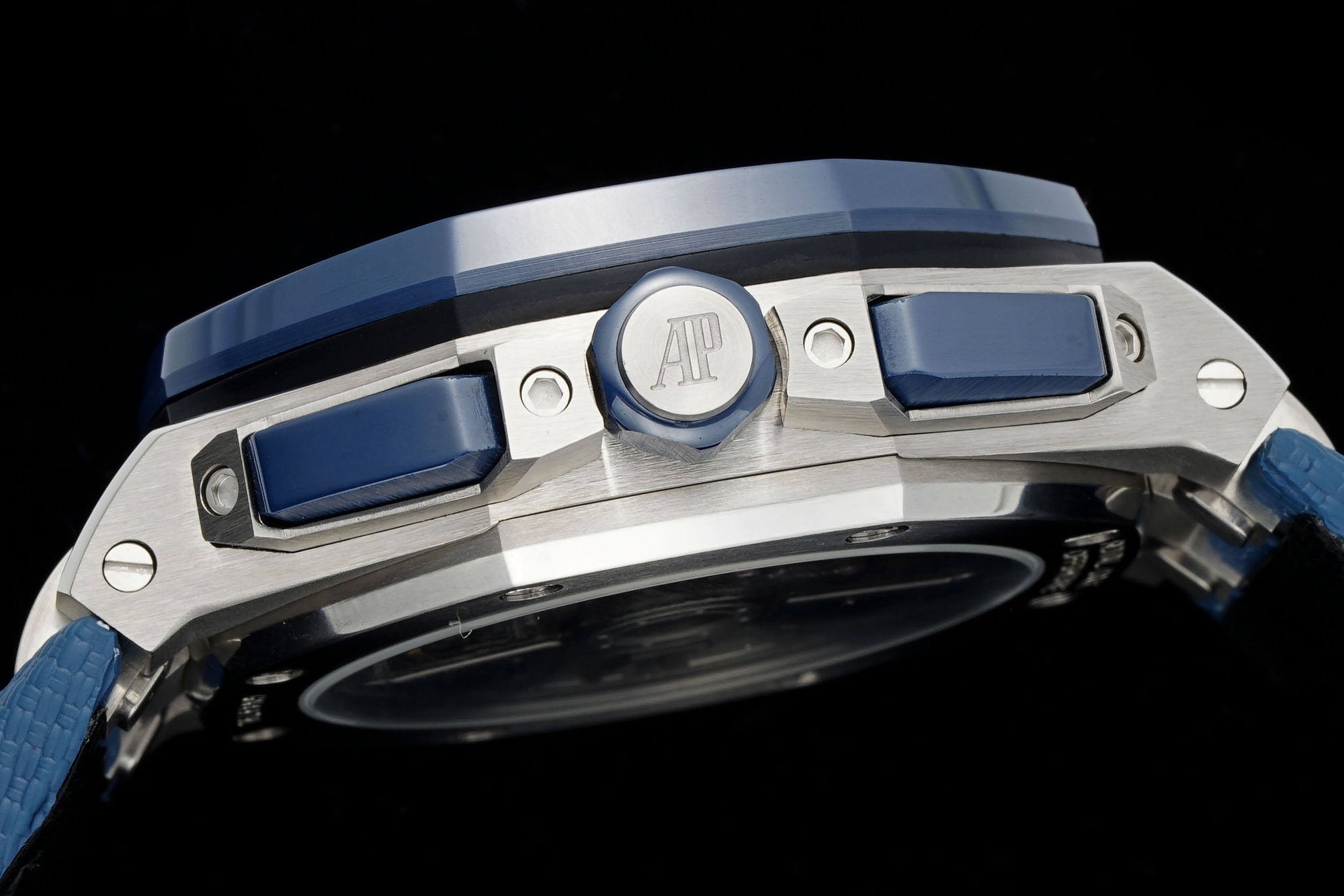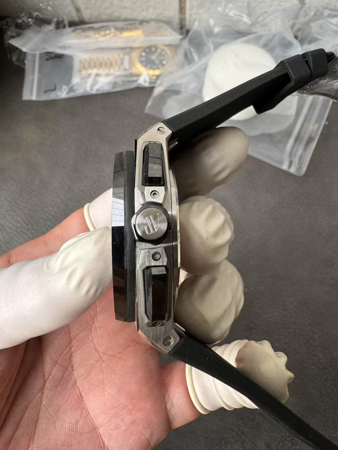 除钛金属版本外,皇家橡树离岸型计时码表 43 毫米采用黑色陶瓷表圈,在材质和颜色上形成鲜明对比。表冠和按钮同样采用陶瓷材质。我们是购入了原装正品二手的手表进行正品Original原版开模的super copy 做工精良 打磨精细乃精品中的精品❕❕❕Noob official ➕ AP Audemars Piguet Royal Oak Offshore 26420 New V2 Upgraded Edition
