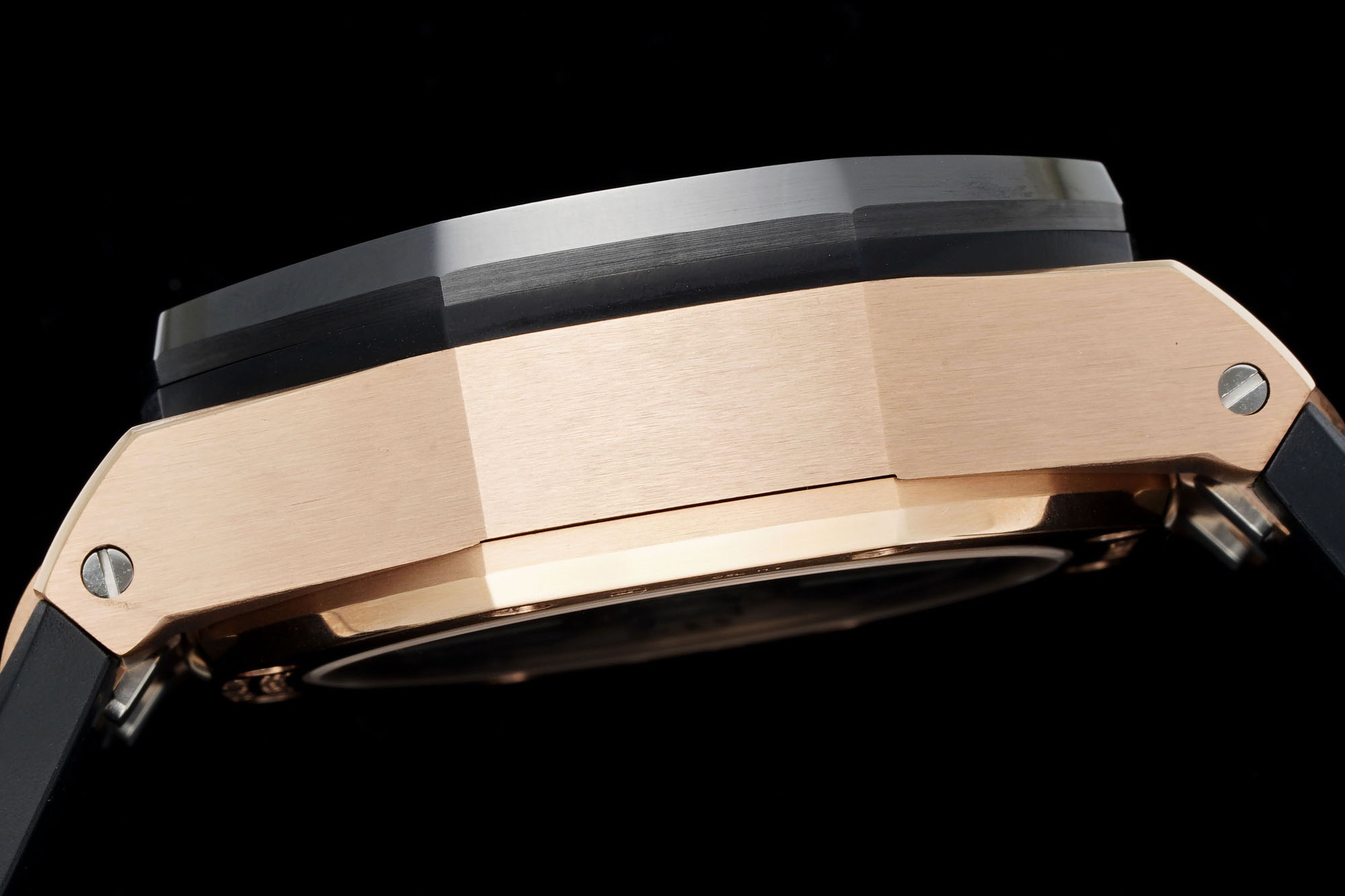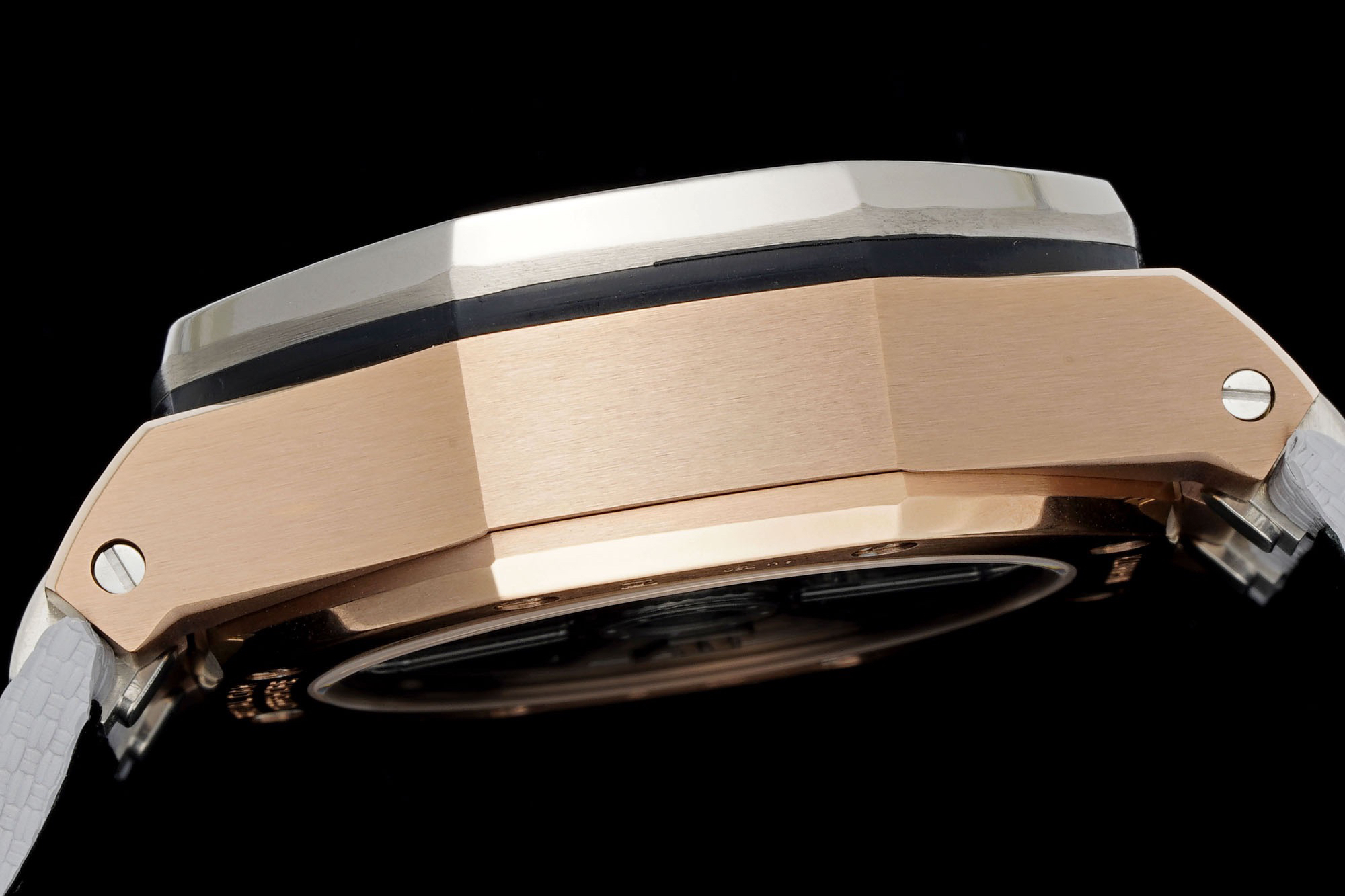 2、圈口升级成弧度陶瓷圈口。12H到6H是有弧度的,由平面玻璃升级成了带弧度蓝宝石玻璃,加工难度系数大。