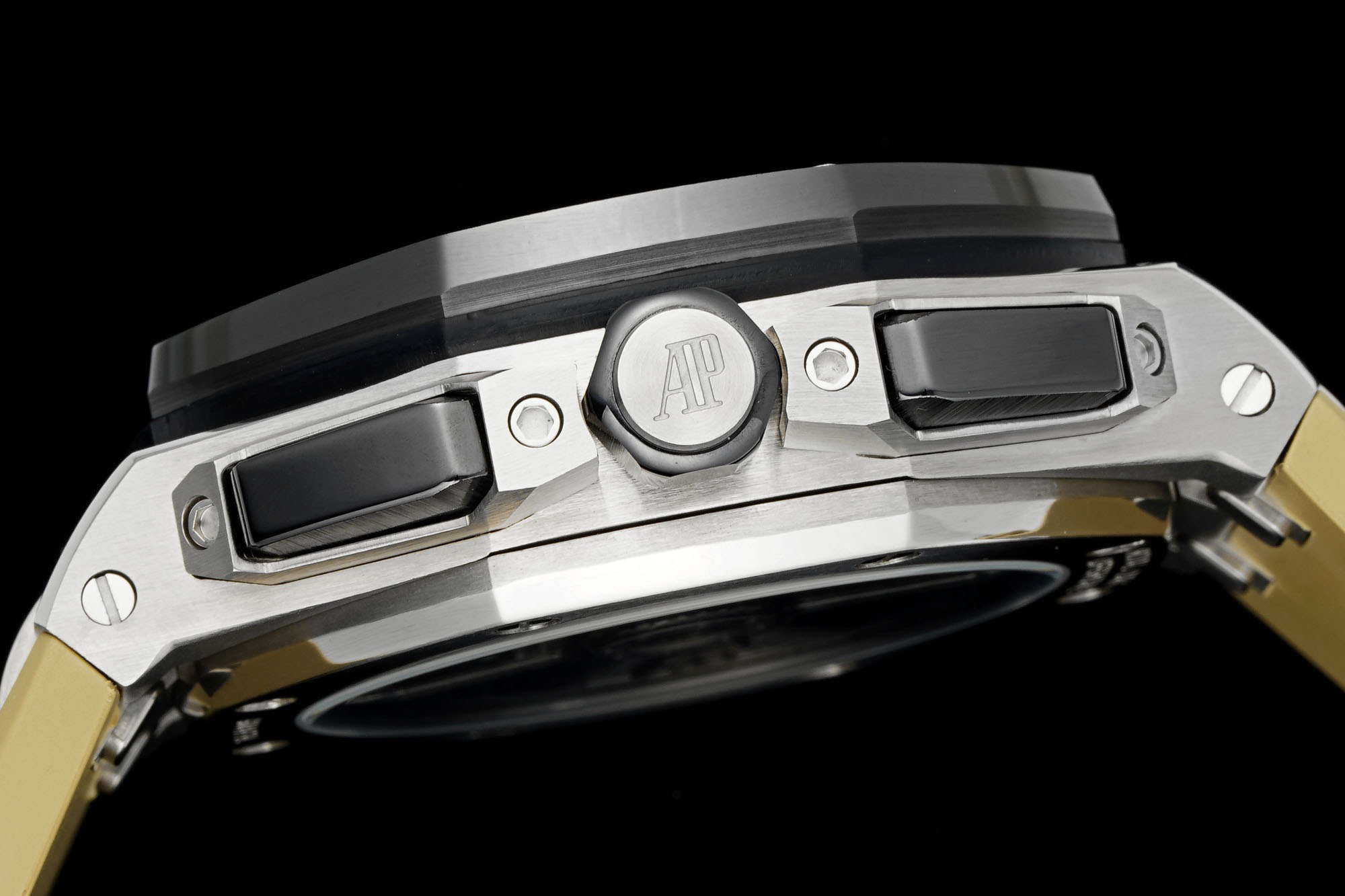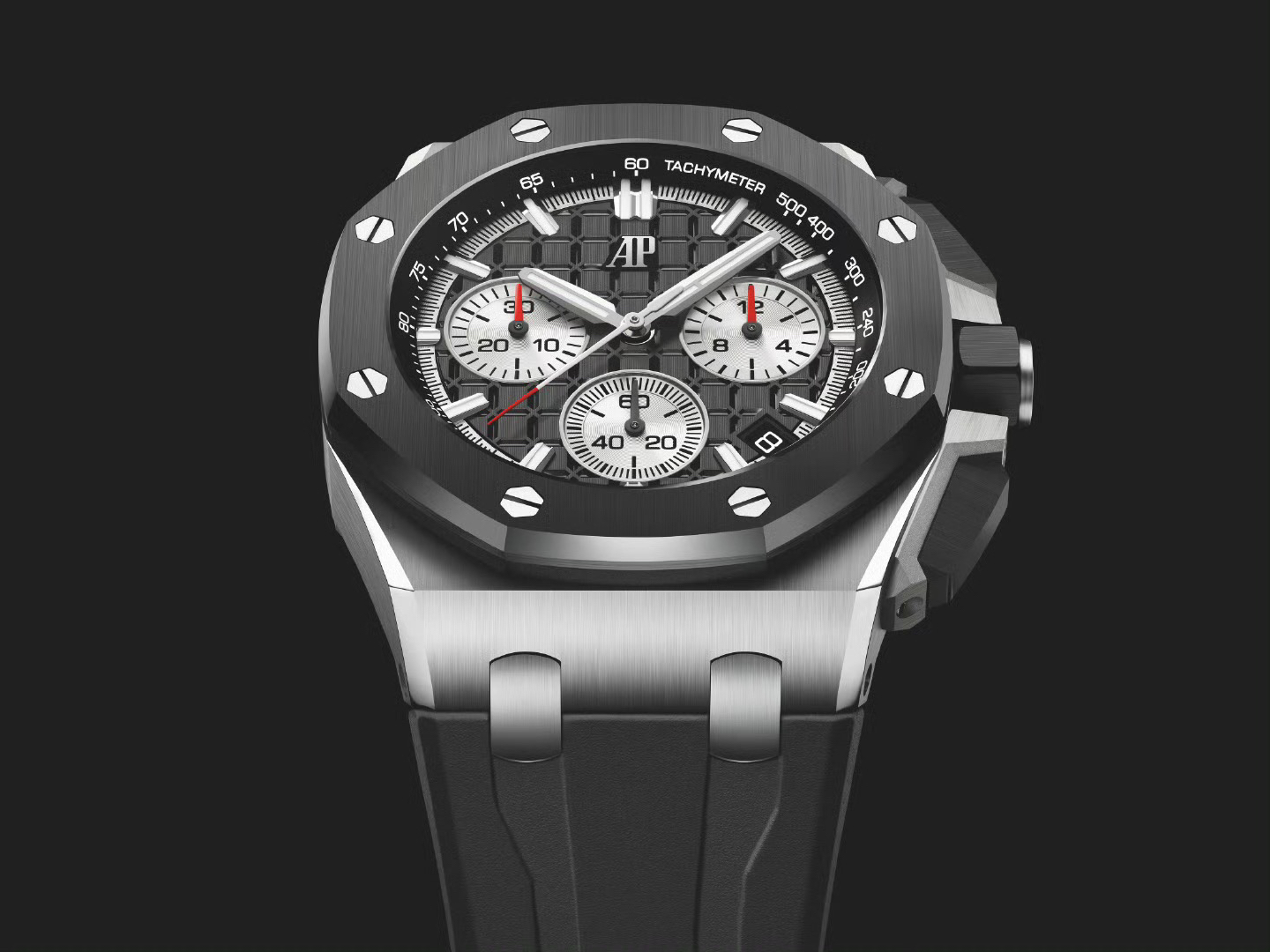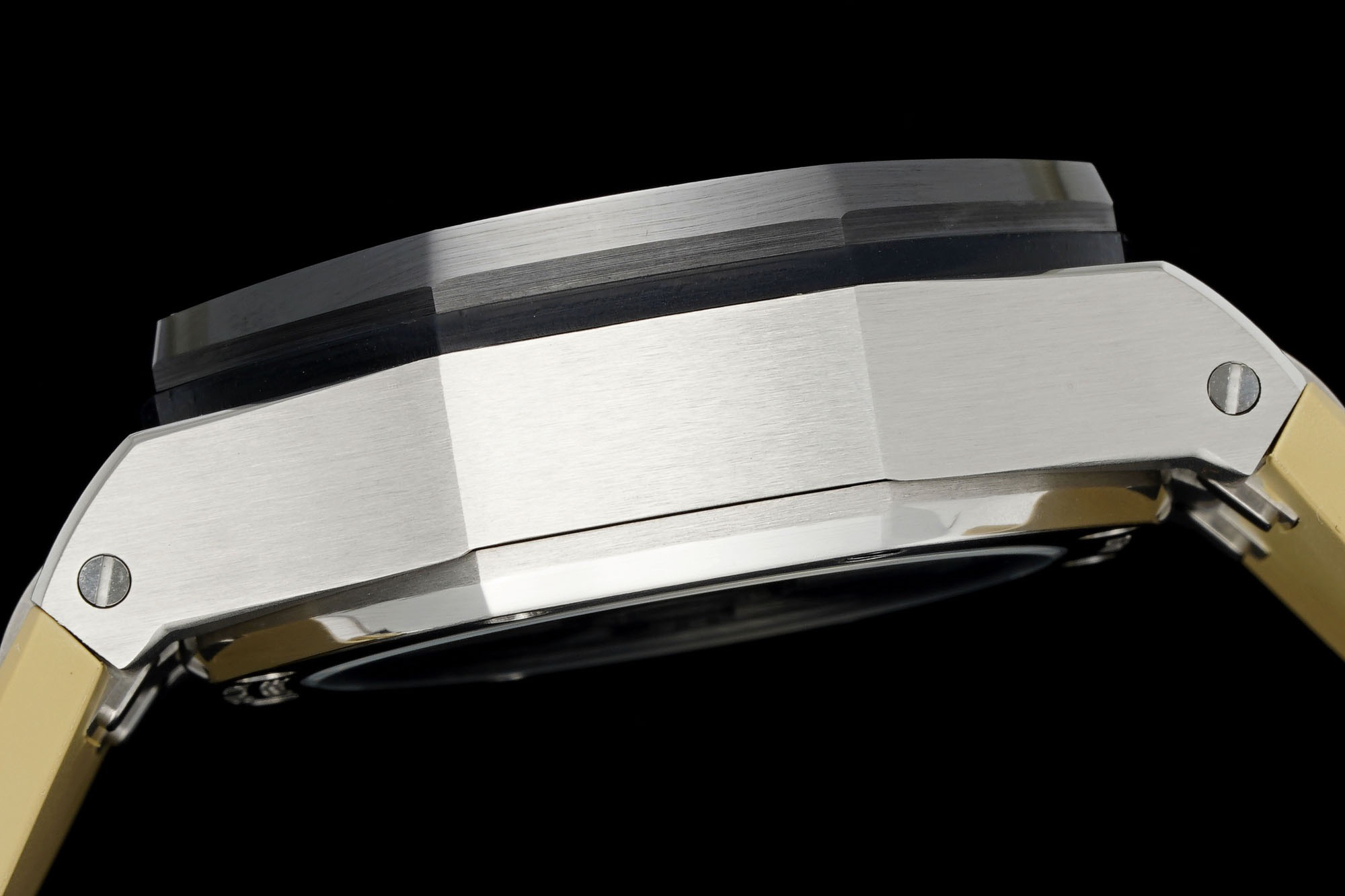 1. Newly molded 43mm case. Adopting a brand new design, a more ergonomic case, and more exquisite case details, it has a large polished chamfer. The 43mm wide case has been carefully modified to accommodate a slightly larger diameter new movement, and the case is equipped with a set of newly designed timing buttons.