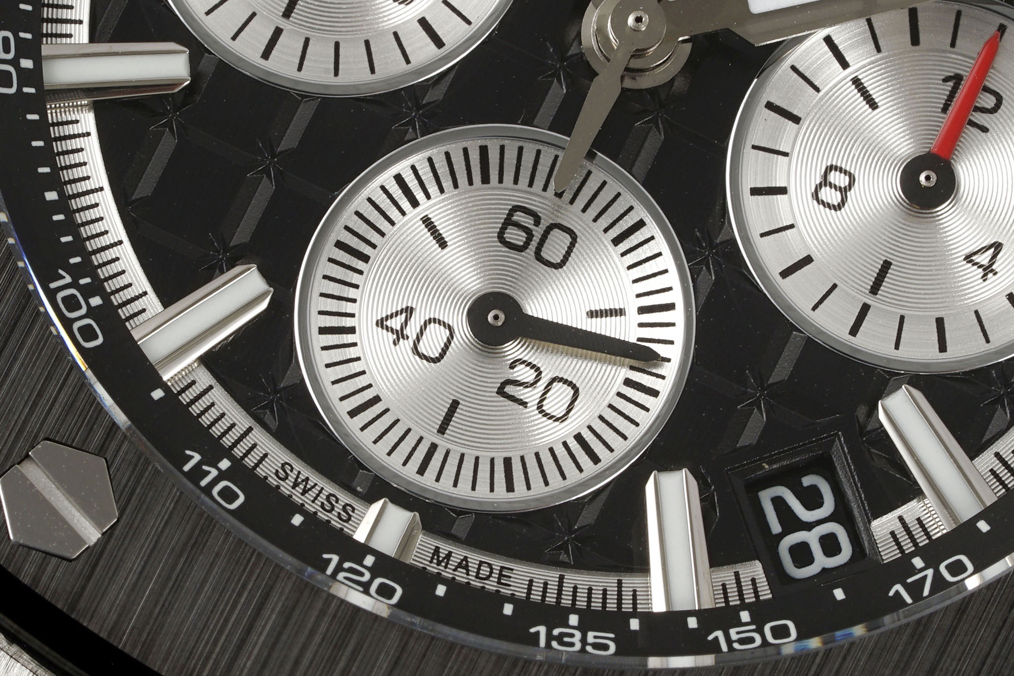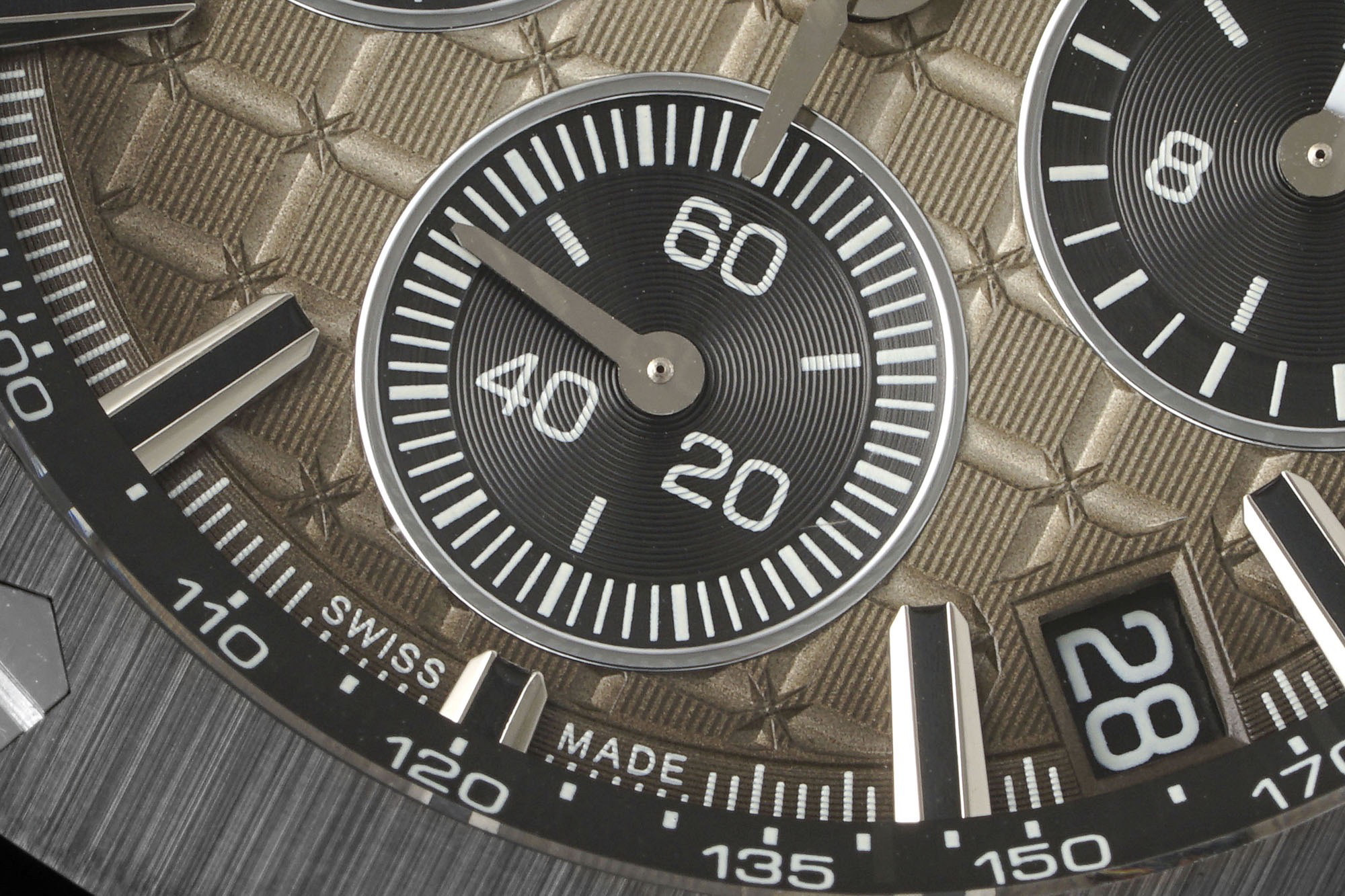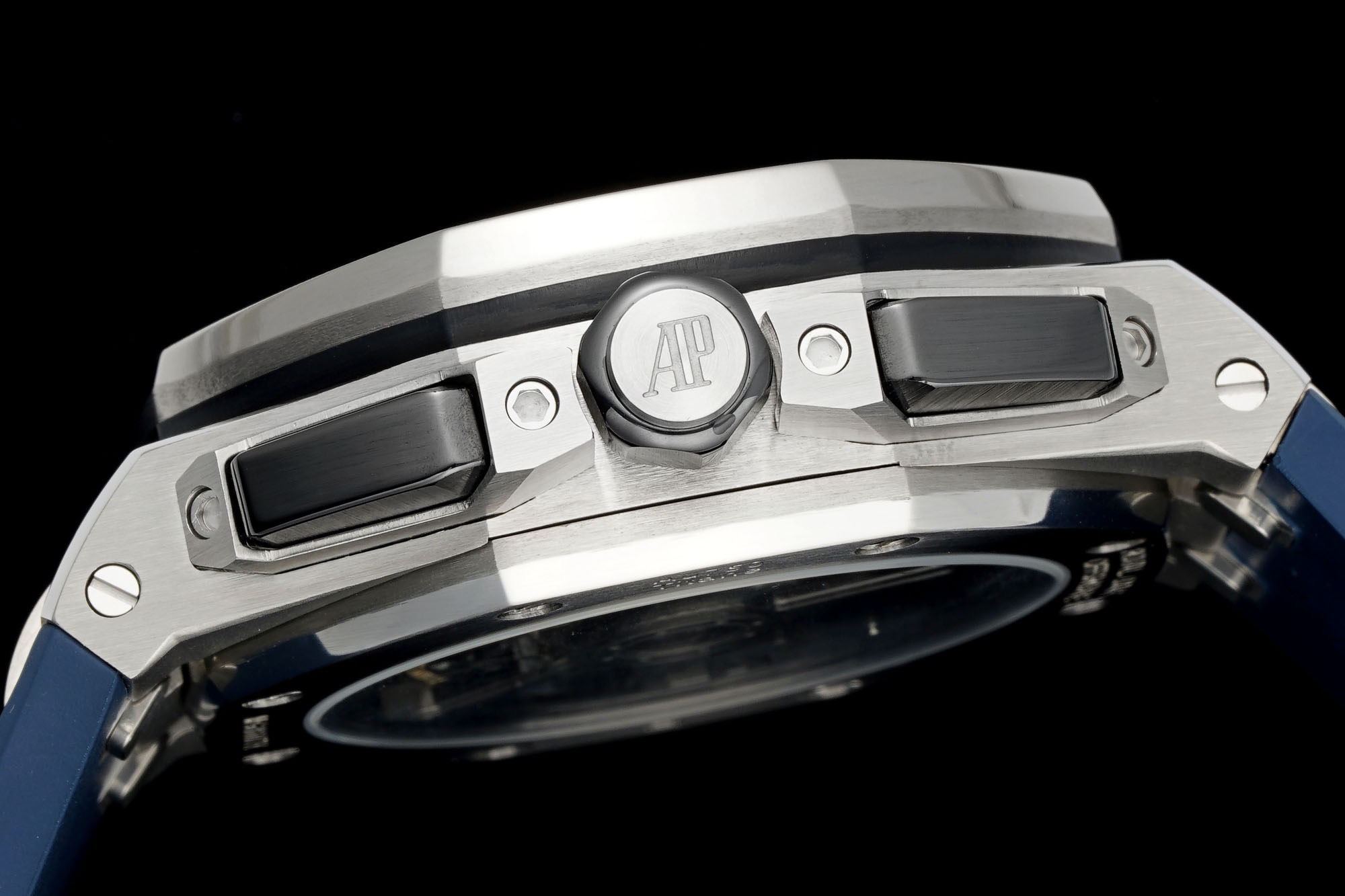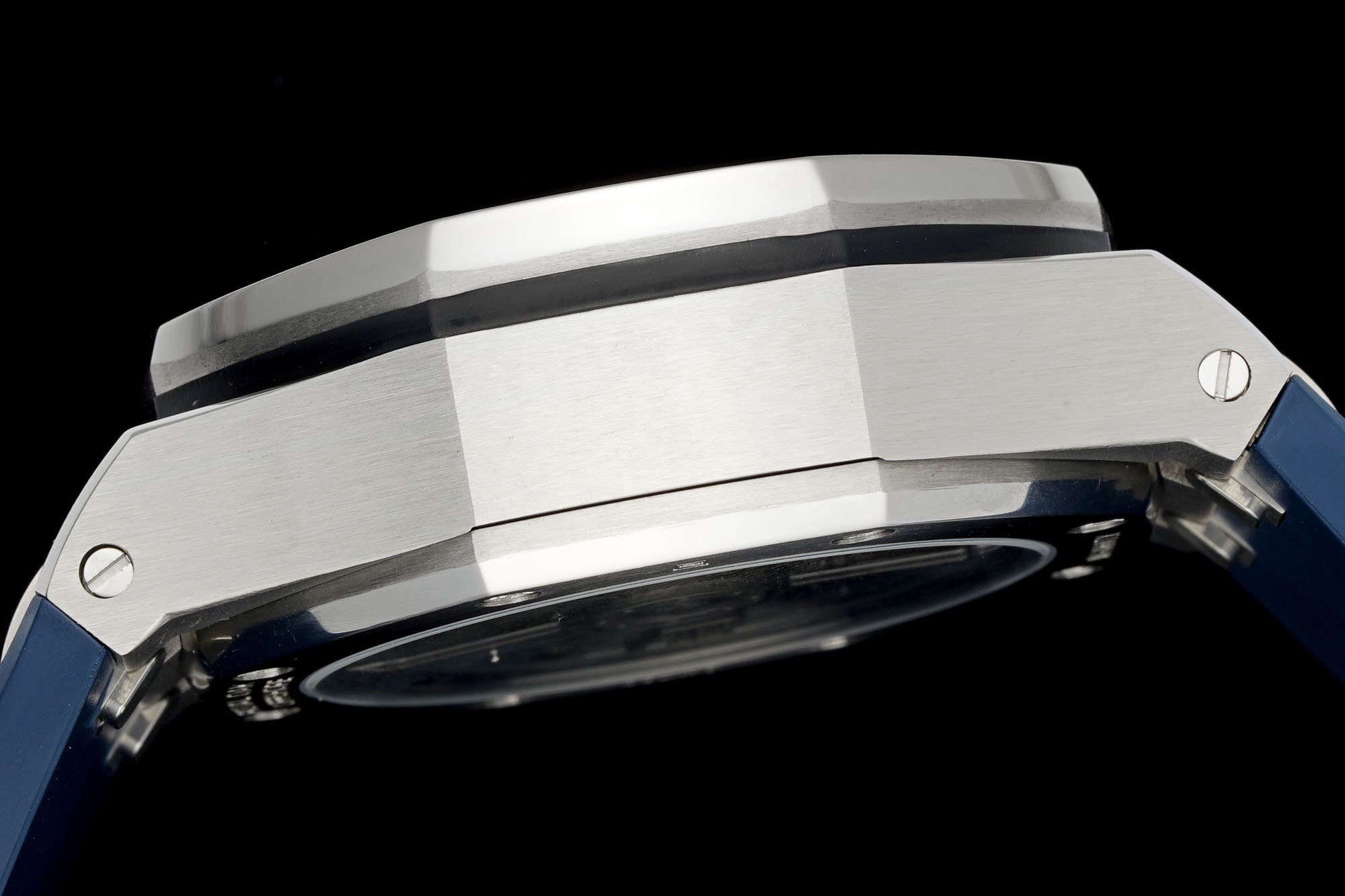 1. Newly molded 43mm case. Adopting a brand new design, a more ergonomic case, and more exquisite case details, it has a large polished chamfer. The 43mm wide case has been carefully modified to accommodate a slightly larger diameter new movement, and the case is equipped with a set of newly designed timing buttons.