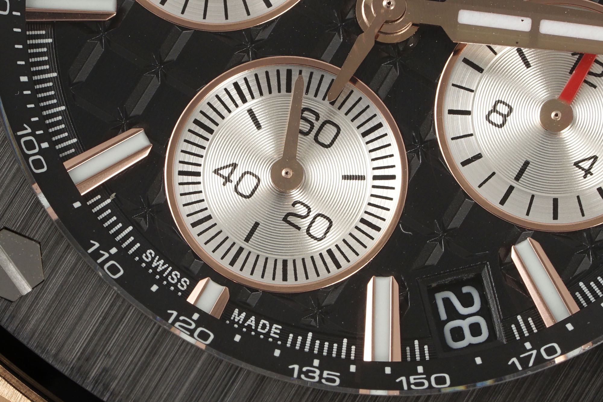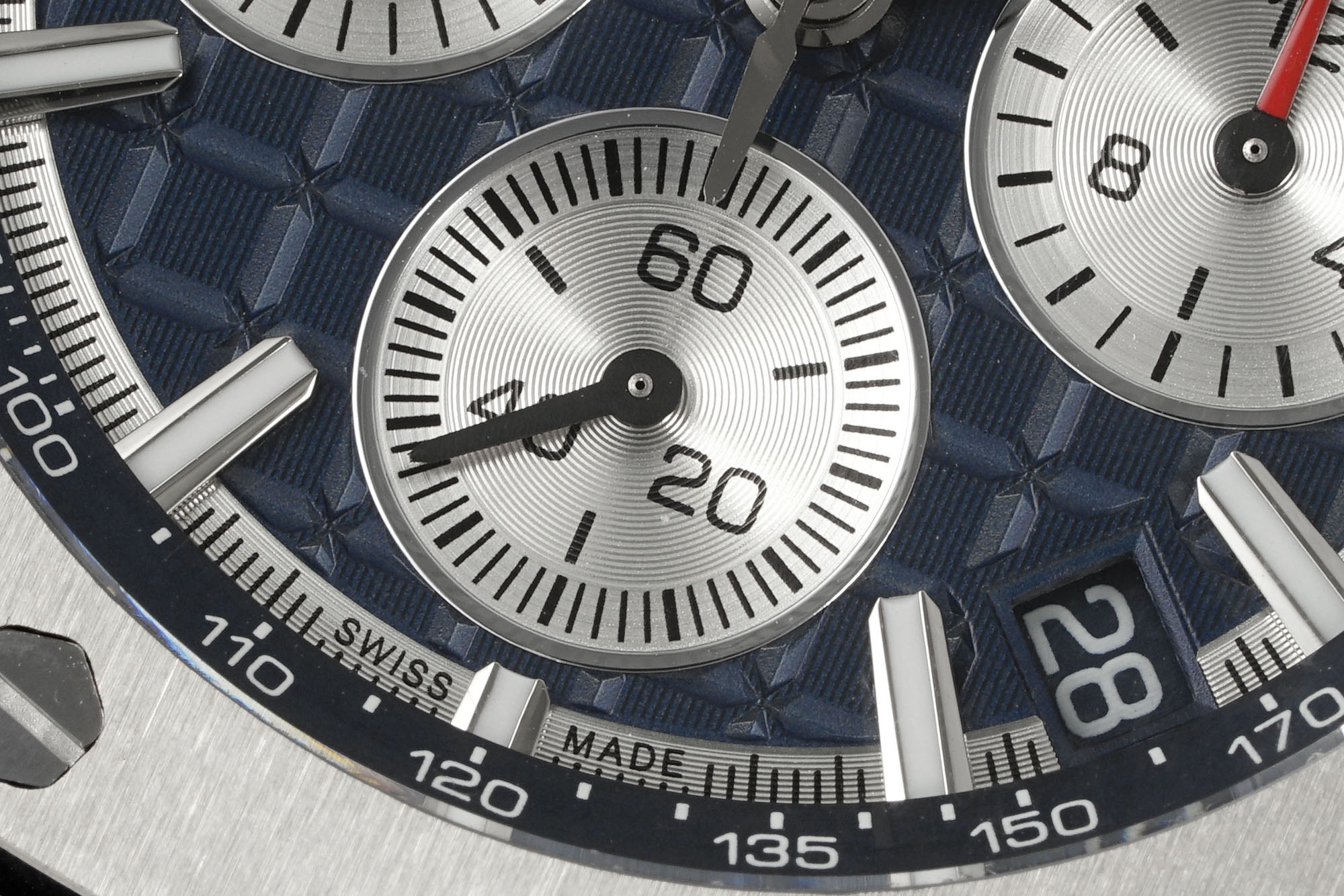 3、表盘升级,表盘纹路由CNC慢冼(非油压式),成品纹路清晰,标志性的方形现在通过十字相互连接。