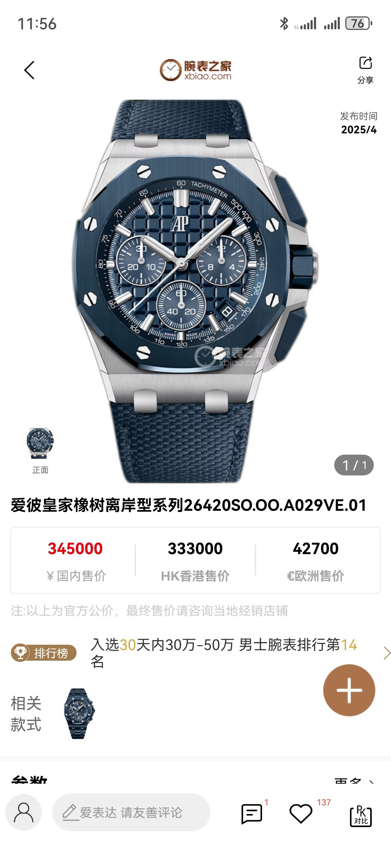 ➕Noob official➕AP 爱彼 皇家橡树离岸型26420 全新V2升级版