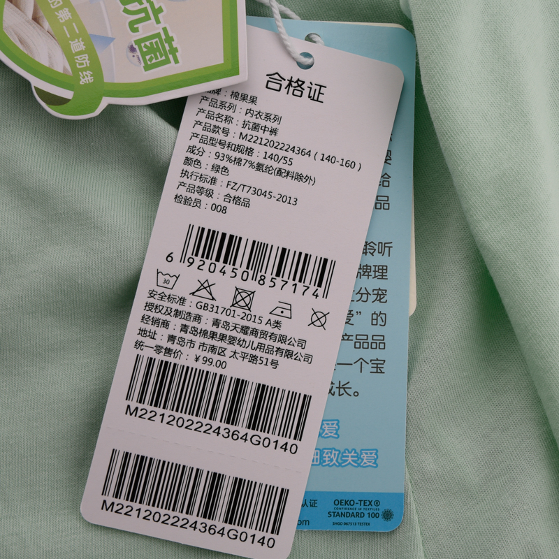 棉果果夏季新品5A抗菌纯棉140-160码女童中裤M221202224364