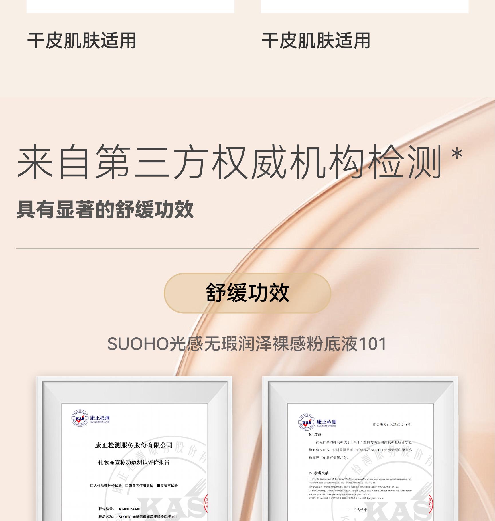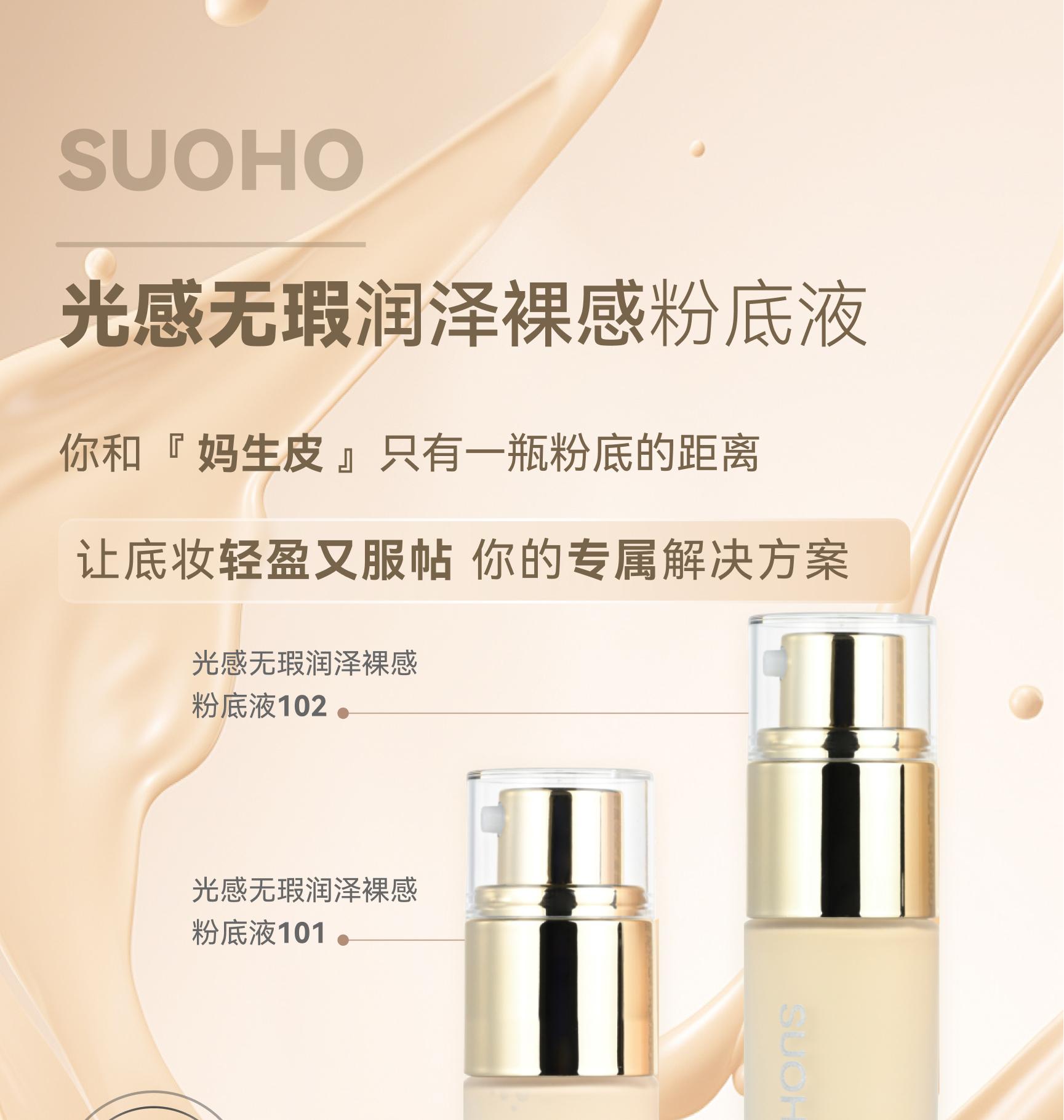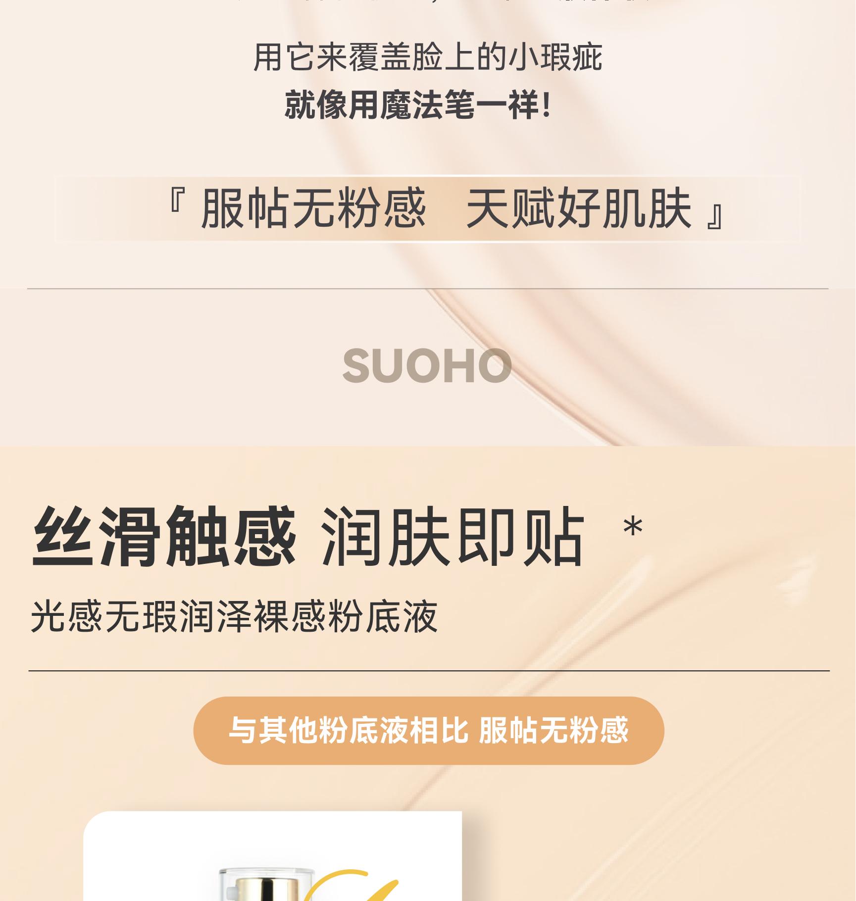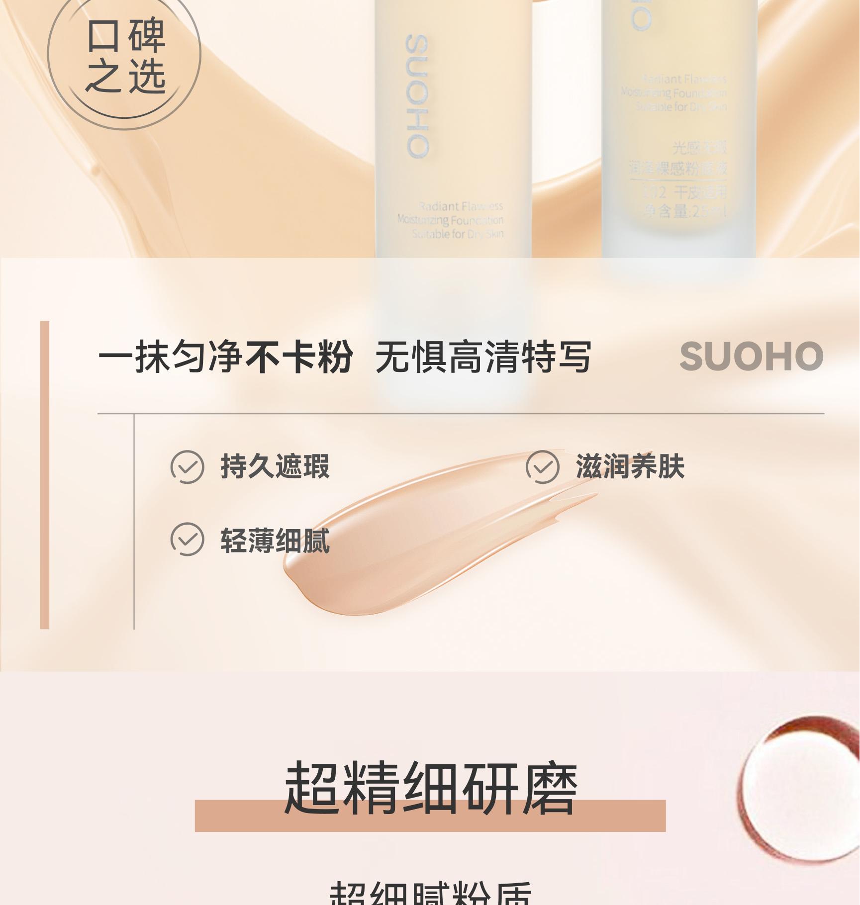 【TOPC-SUOHO光感无瑕润泽裸感粉底液(干皮适用)】 贴肤不厚重 细腻粉质 透气不闷痘