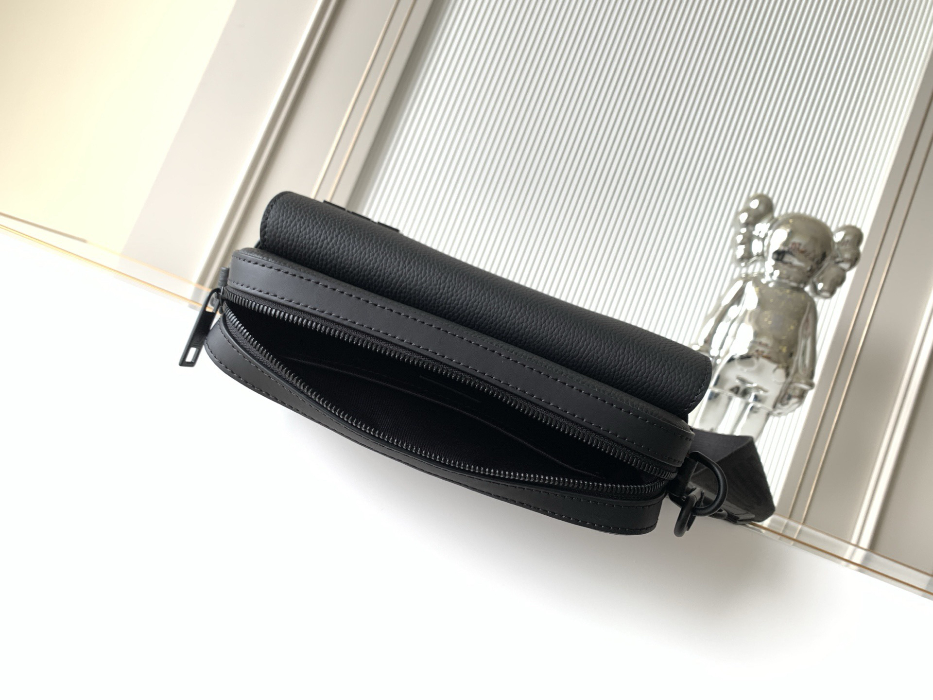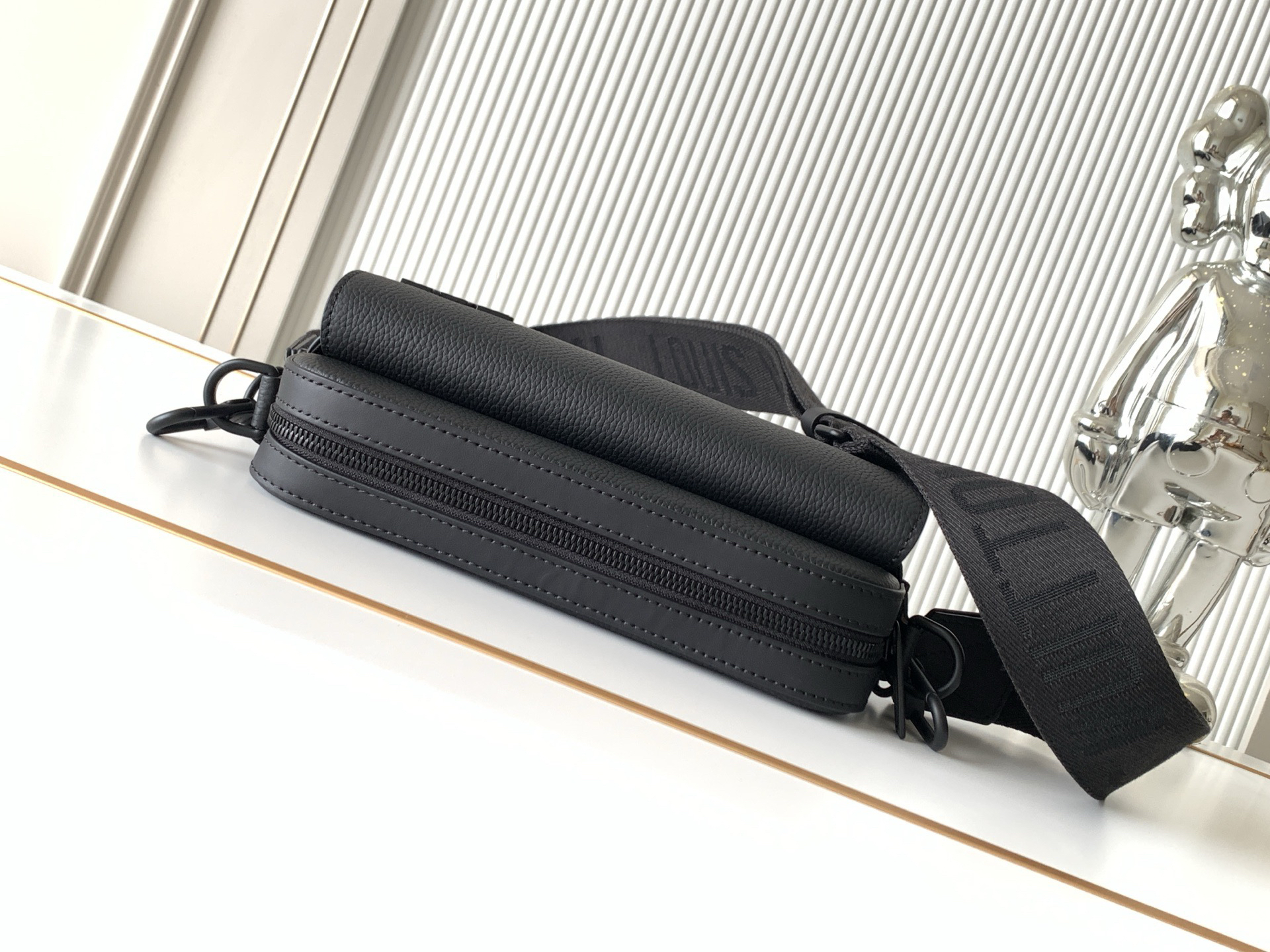 秋冬特惠💰1300 渠道级LV【全钢五金 MB163c01变码芯片】te级LV 全套包装 M22482黑色 本款 Fastline 邮差包取材柔软牛皮革,兼备潮流风尚与功能考量。贴身构型可容纳手机、小号钱夹、记事本和耳机,前袋方便取放随行物品。路易威登标识肩带可拆卸或调节,实现肩背和斜挎选择。size:23.5x18x7cm (长度 x 高 x 宽)