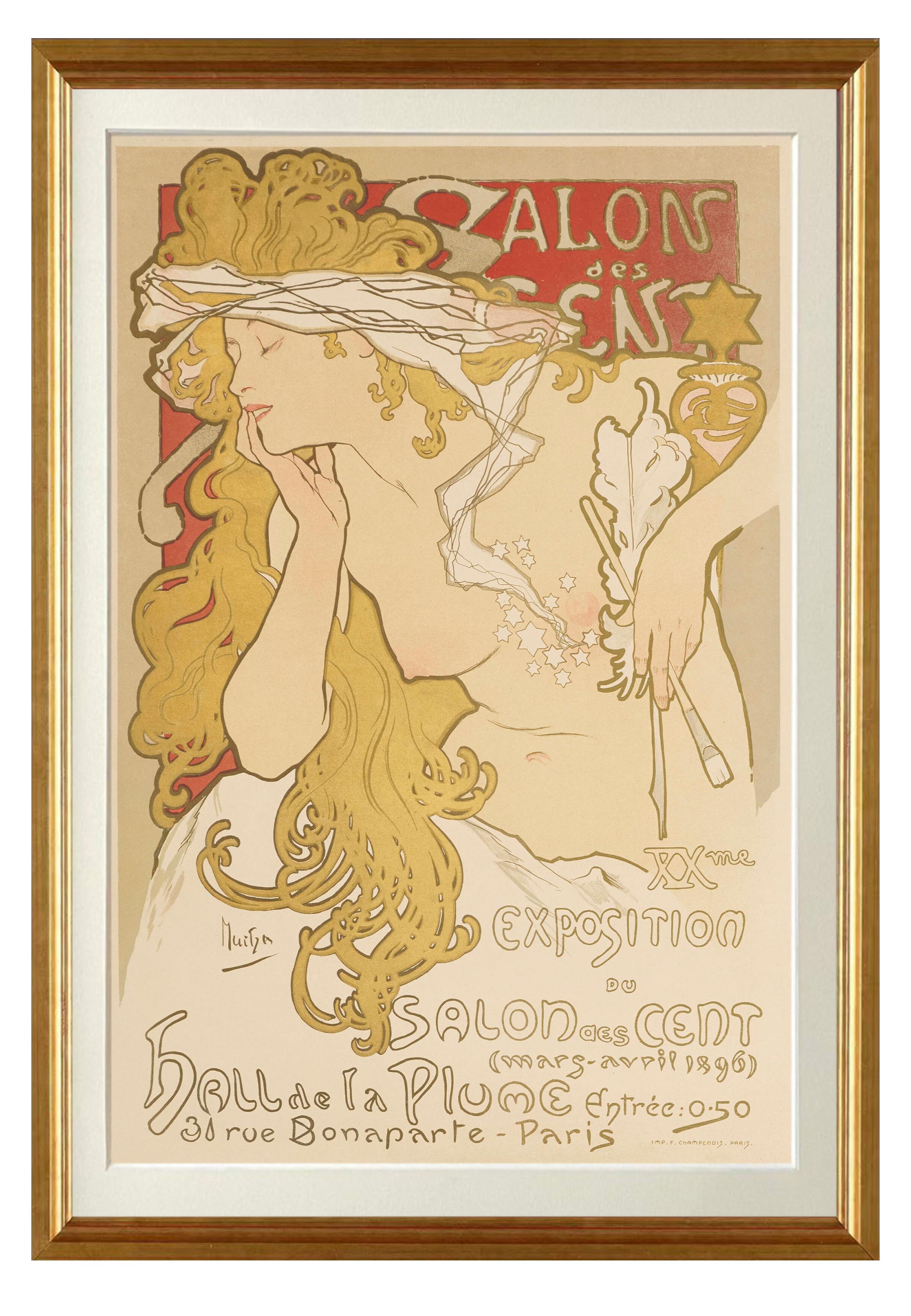 1896年法国出品捷克国宝级画家穆夏签名创作海报作品《百人沙龙 Salon des Cent》