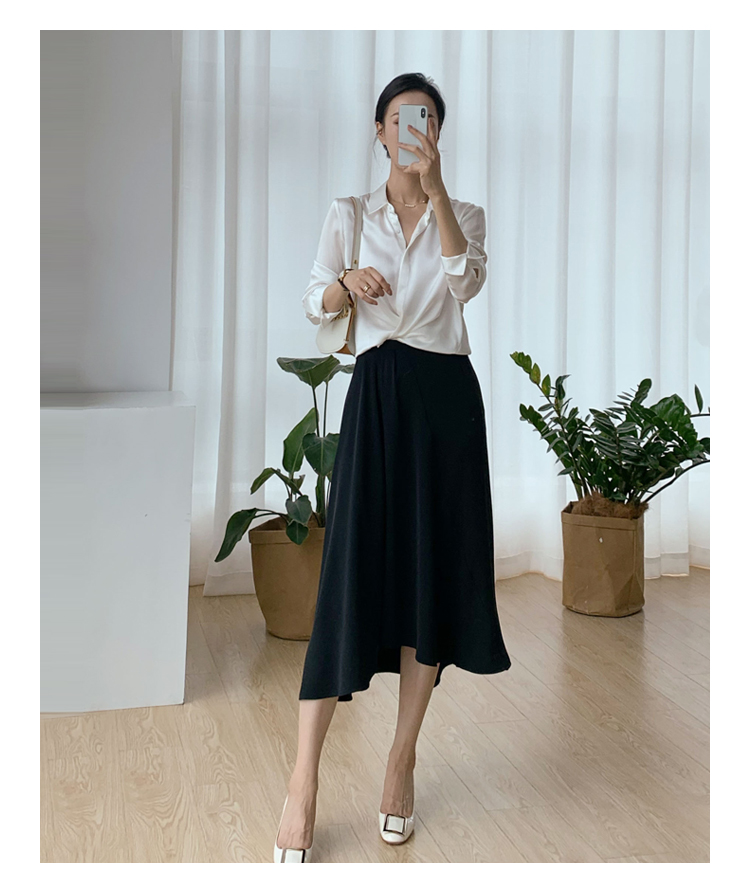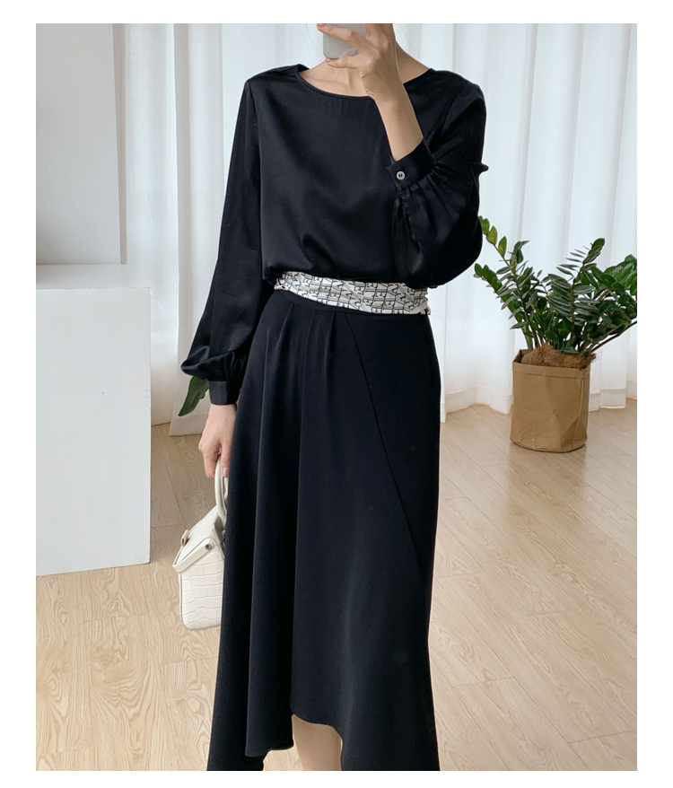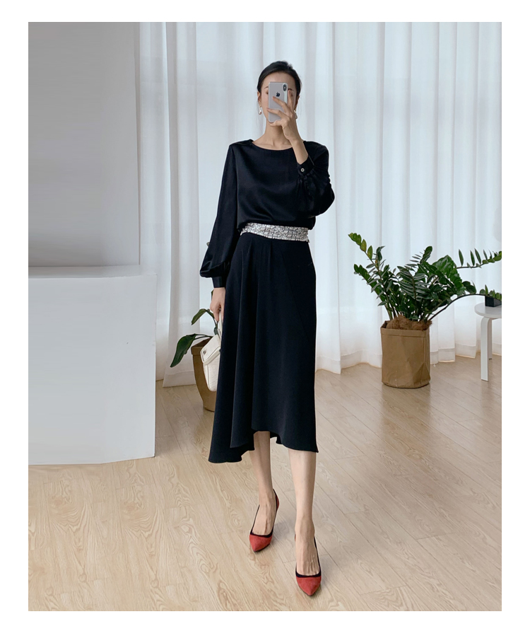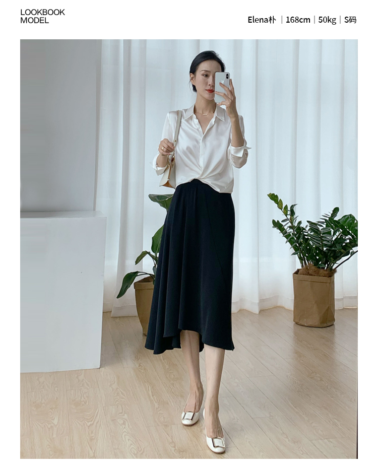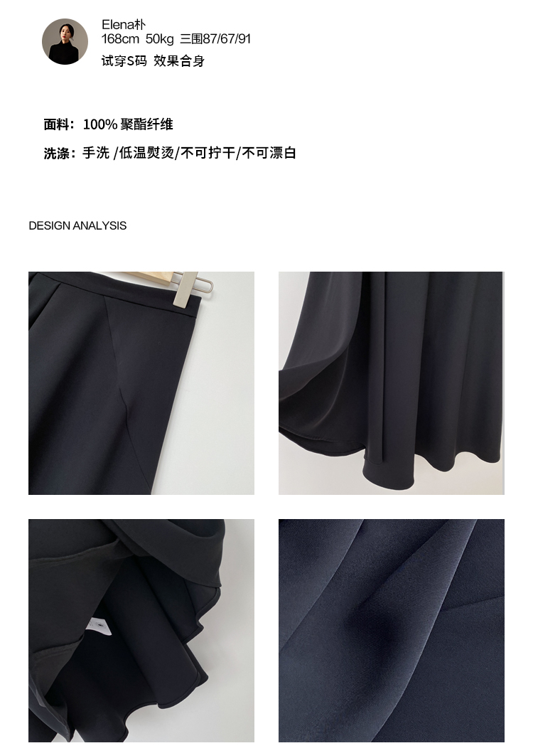褶皱不规则下摆黑色半裙