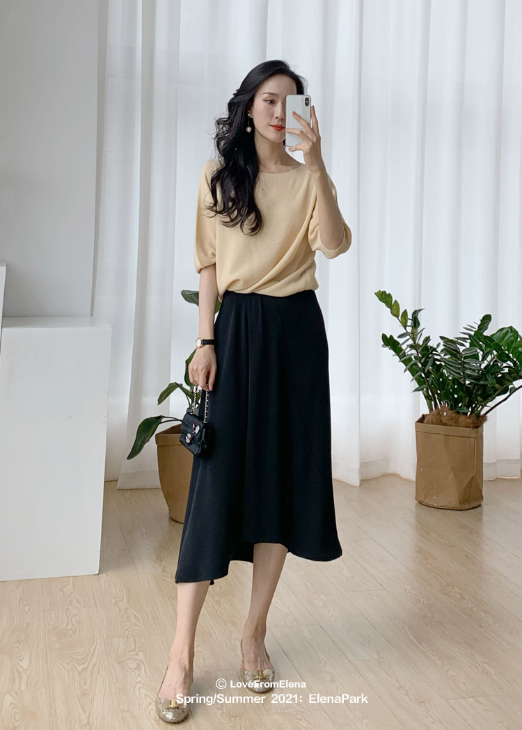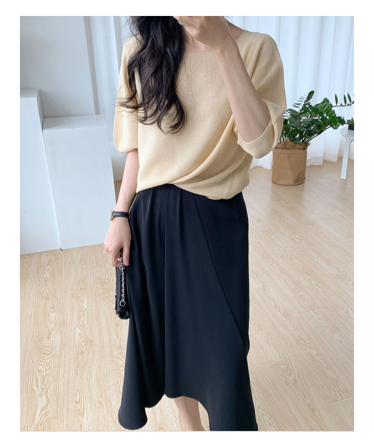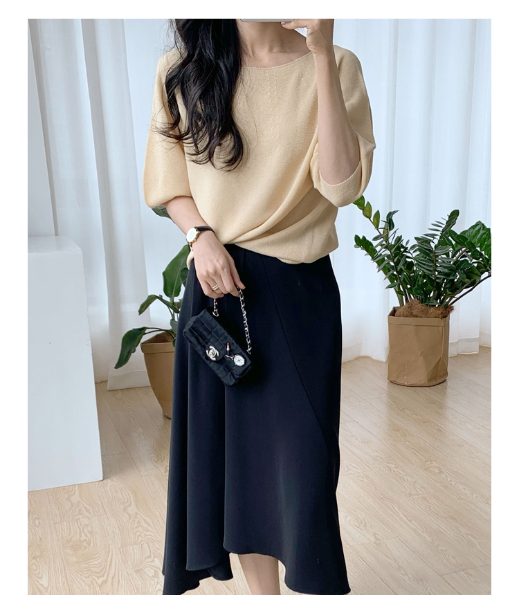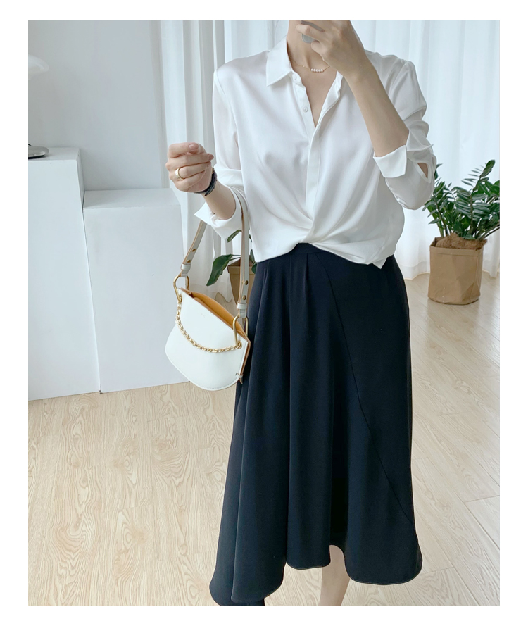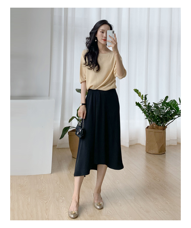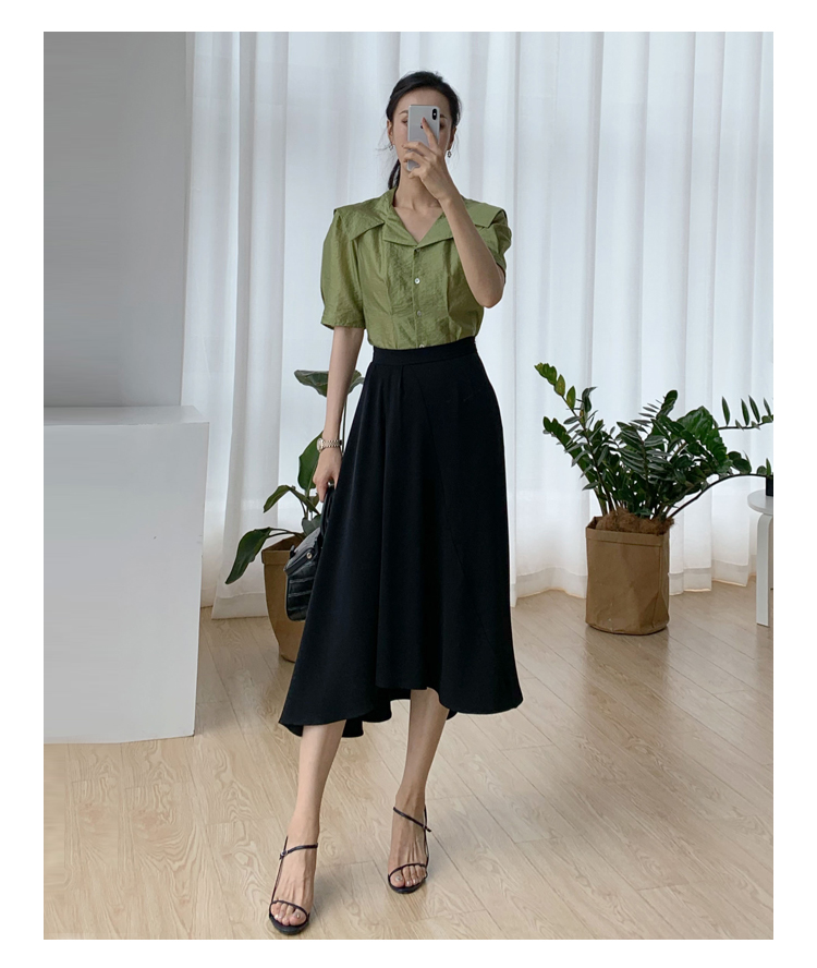 褶皱不规则下摆黑色半裙