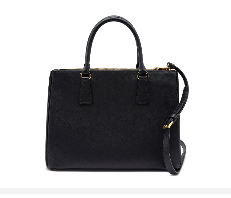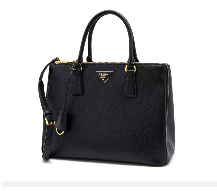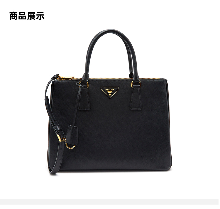 PRADA 普拉达 女士 Galleria Saffiano 皮革三角形金属刻字徽标大号手提包 黑色 1BA274 NZV F0002 DOO