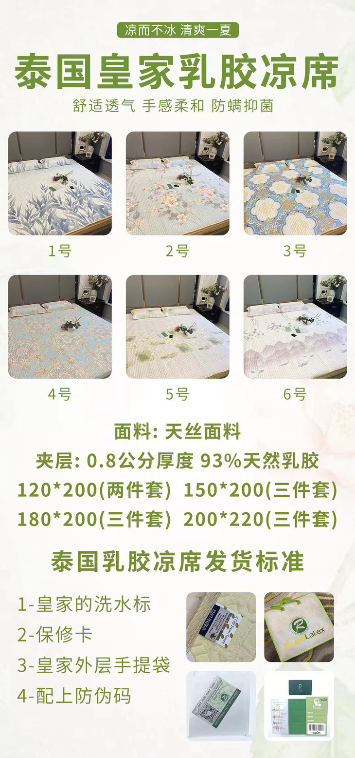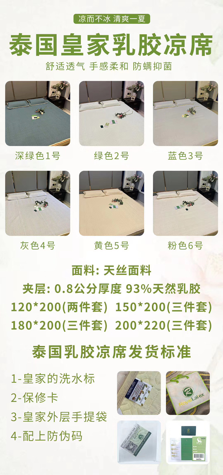 泰国皇家天然抗菌天丝乳胶凉席三件套 舒适透气93%天然乳胶 云母床笠款新款