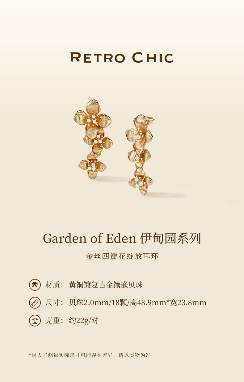 【左小青&孙怡&靳梦佳同款】Garden of Eden 伊甸园系列 | 金丝四瓣花绽放耳环