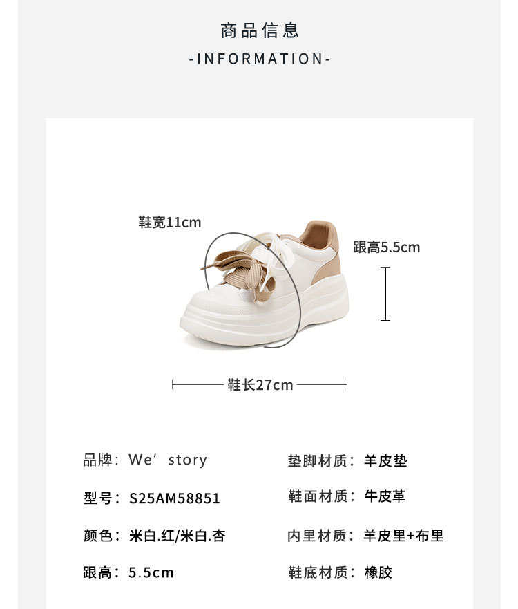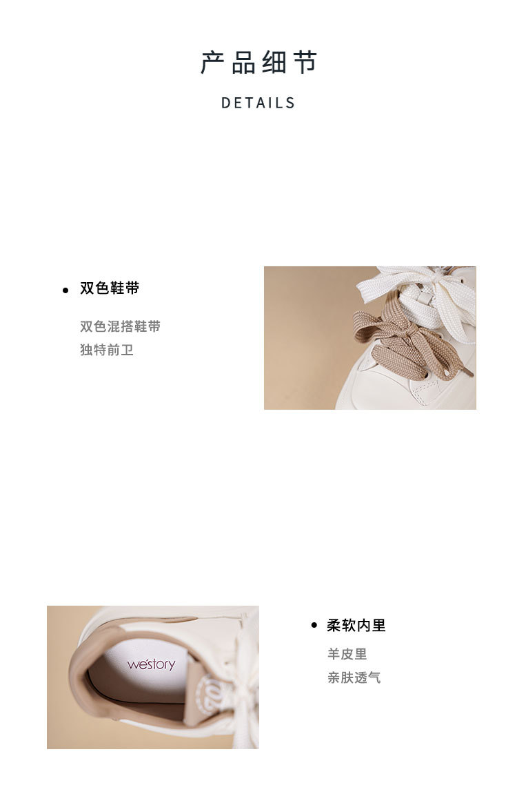 Westory2025年春季休闲厚底双色鞋带板鞋运动深口S25AM58851