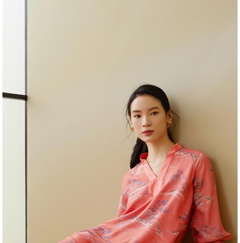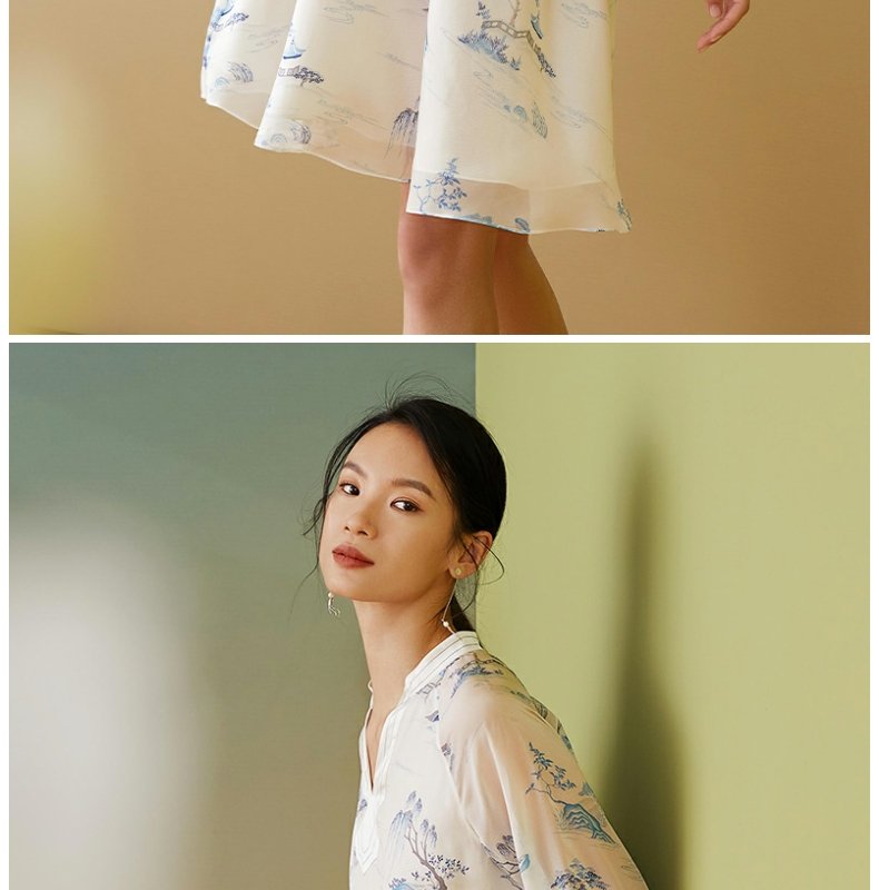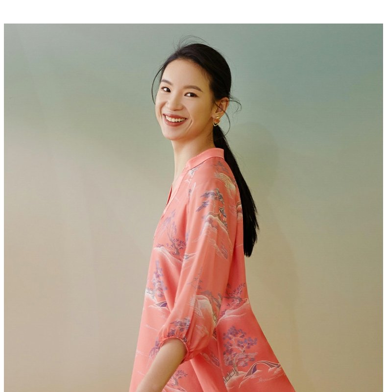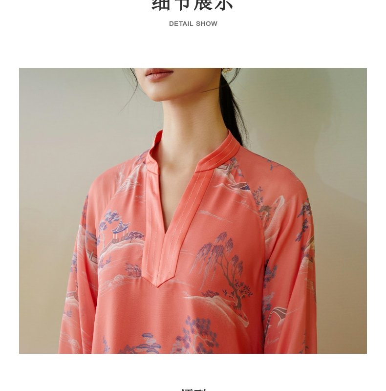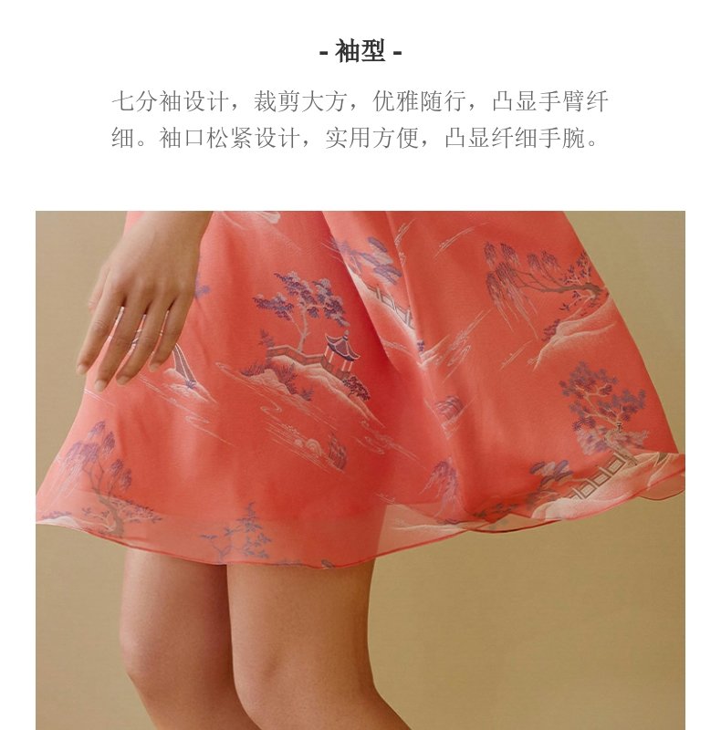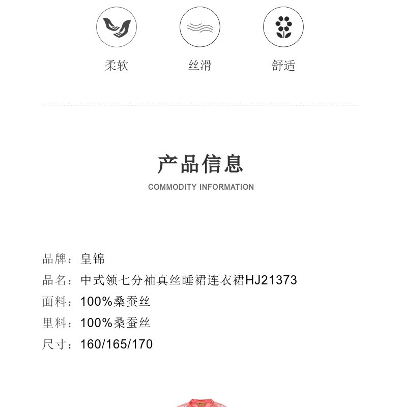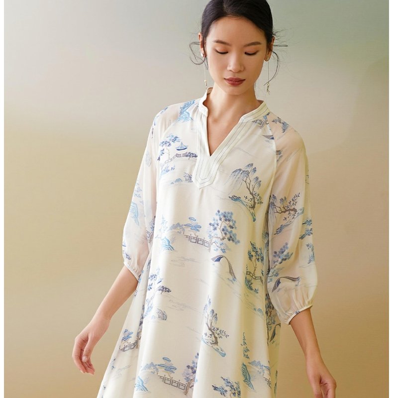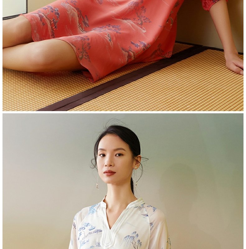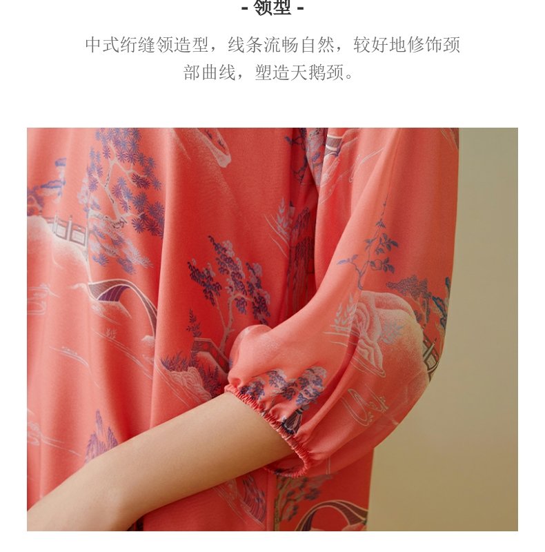 【皇锦】中式领七分袖真丝睡裙连衣裙