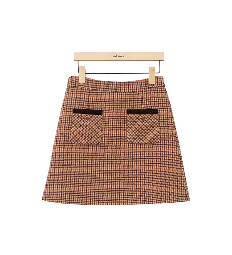 oldcolour复古高腰短裙冬季新款时尚气质格子百搭半身裙O42061272