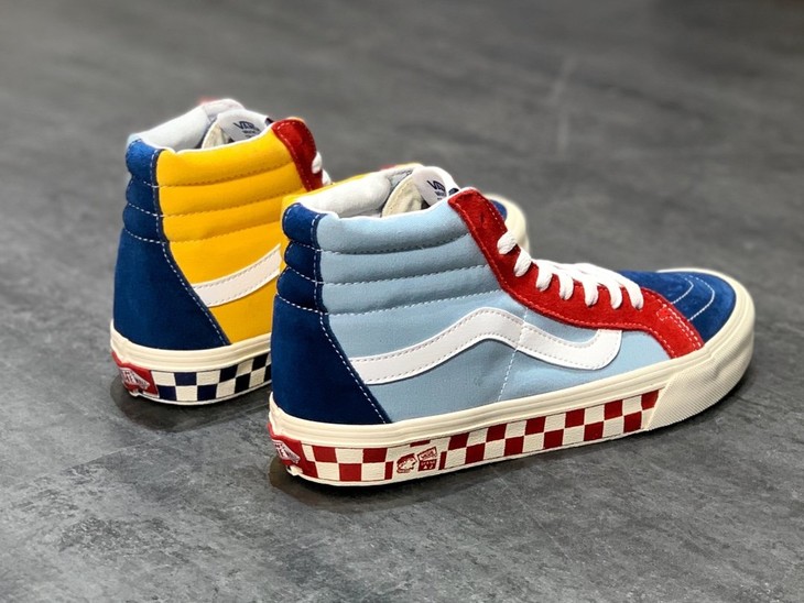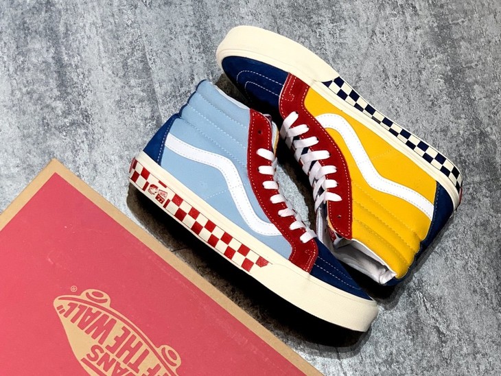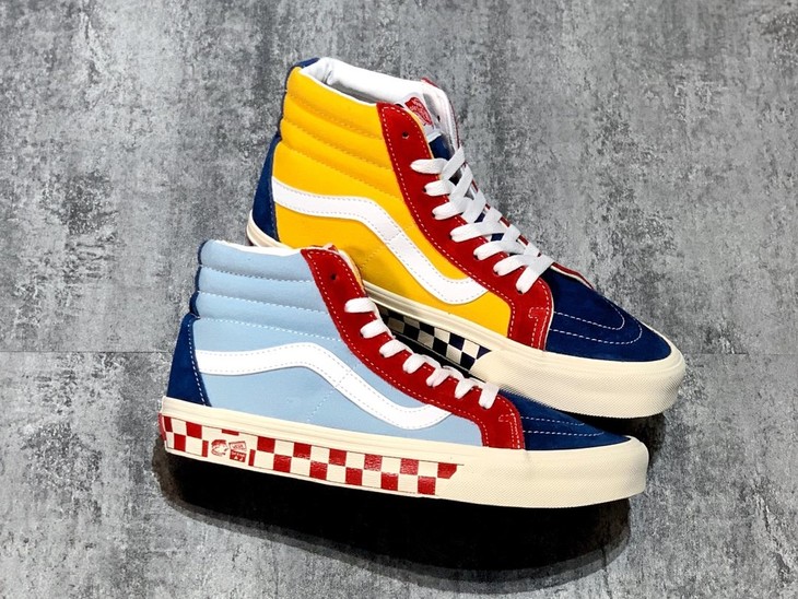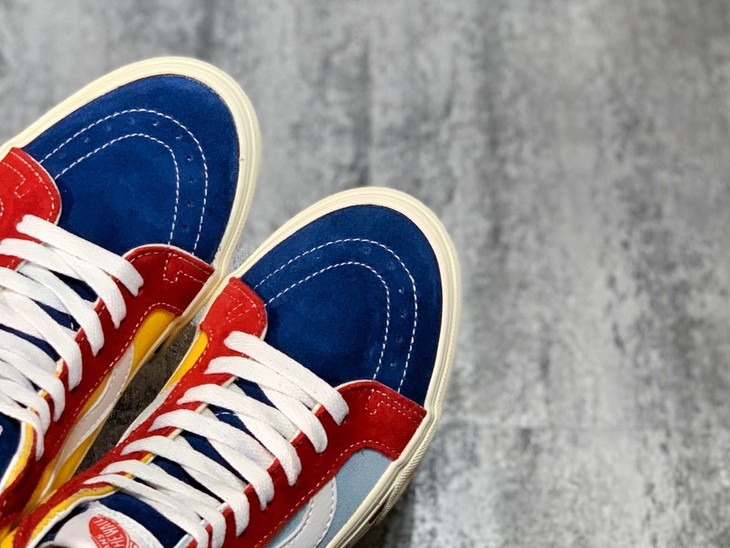 Vans SK8-Hi 安娜海姆 蓝红黄彩色拼接高帮硫化板鞋