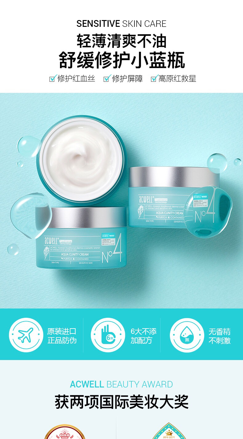 艾珂薇N4面霜acwell舒缓保湿急救敏感肌保湿补水面霜 50ml