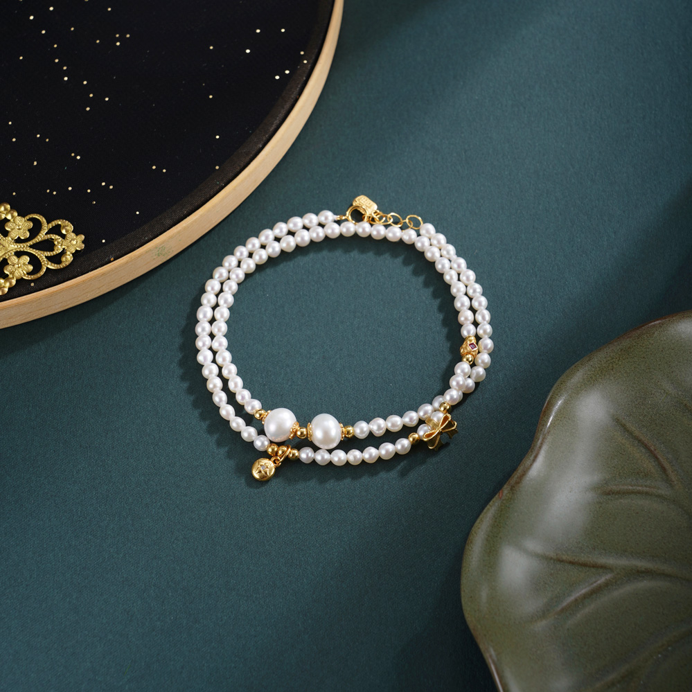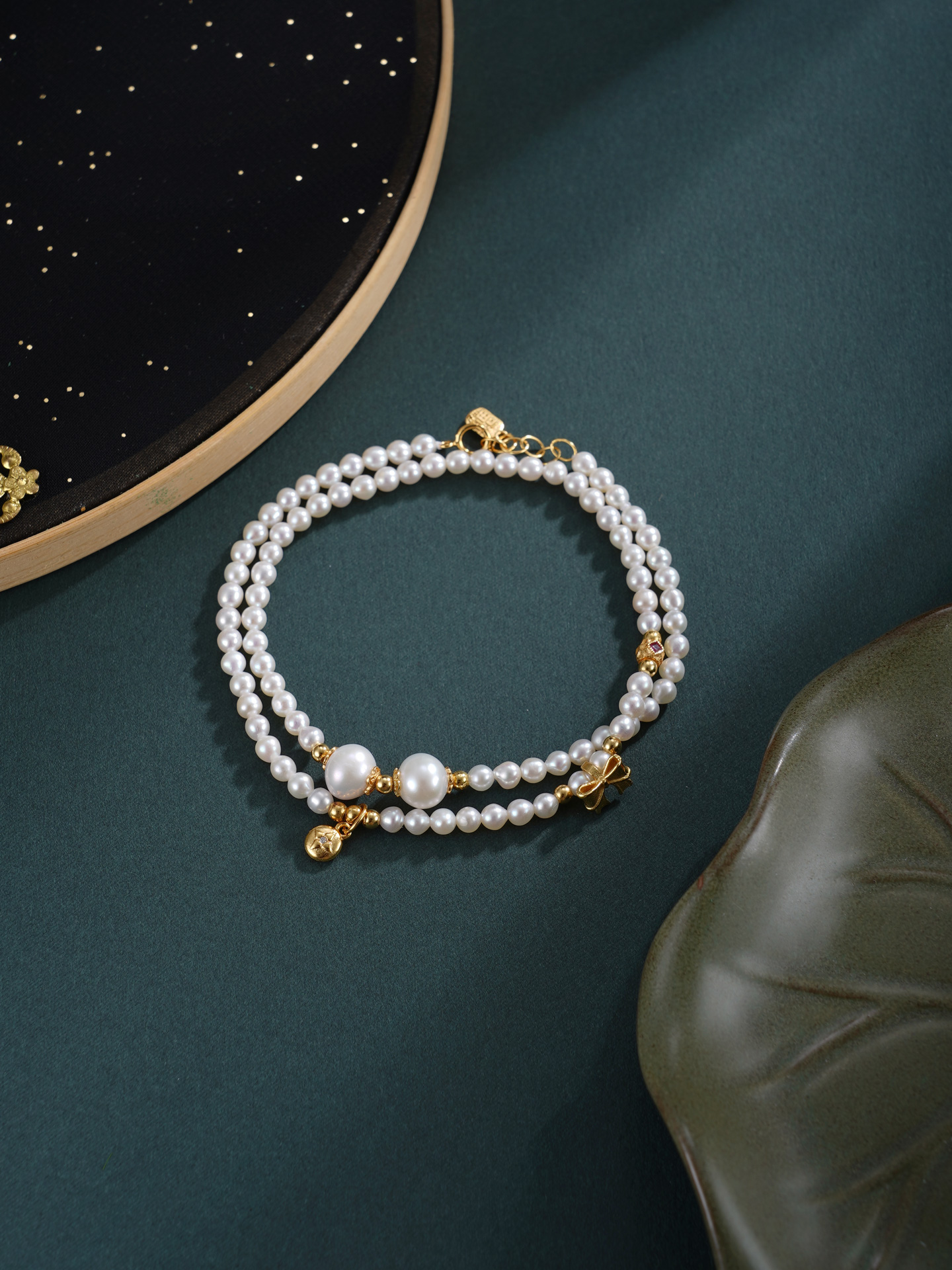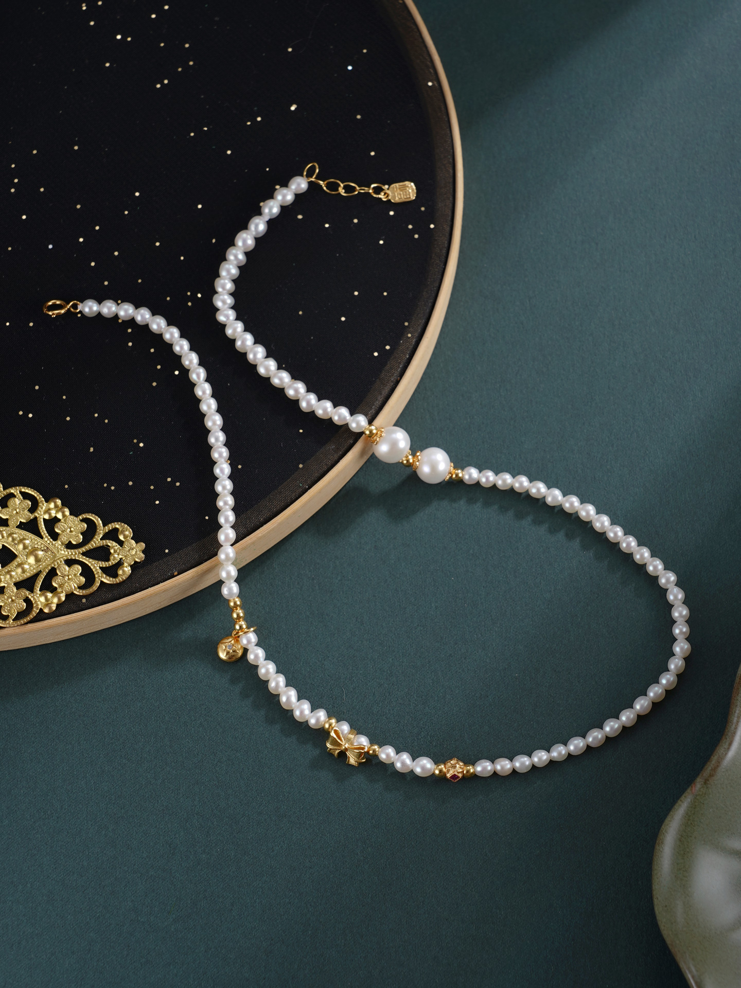 子佩集【依恋情结】银S925珍珠惜王妃手链【QNS0020】3mm珠镀金蝴蝶结2601