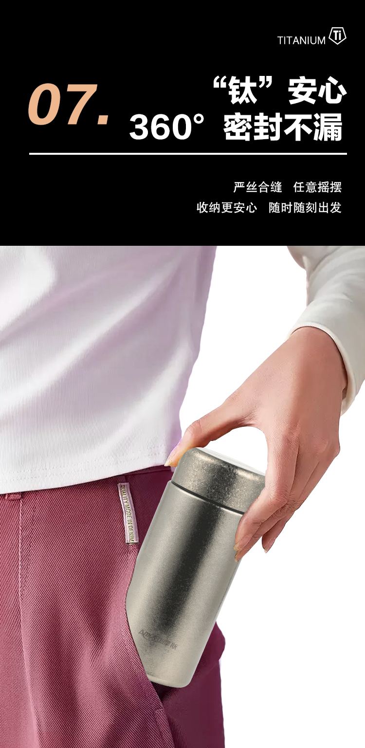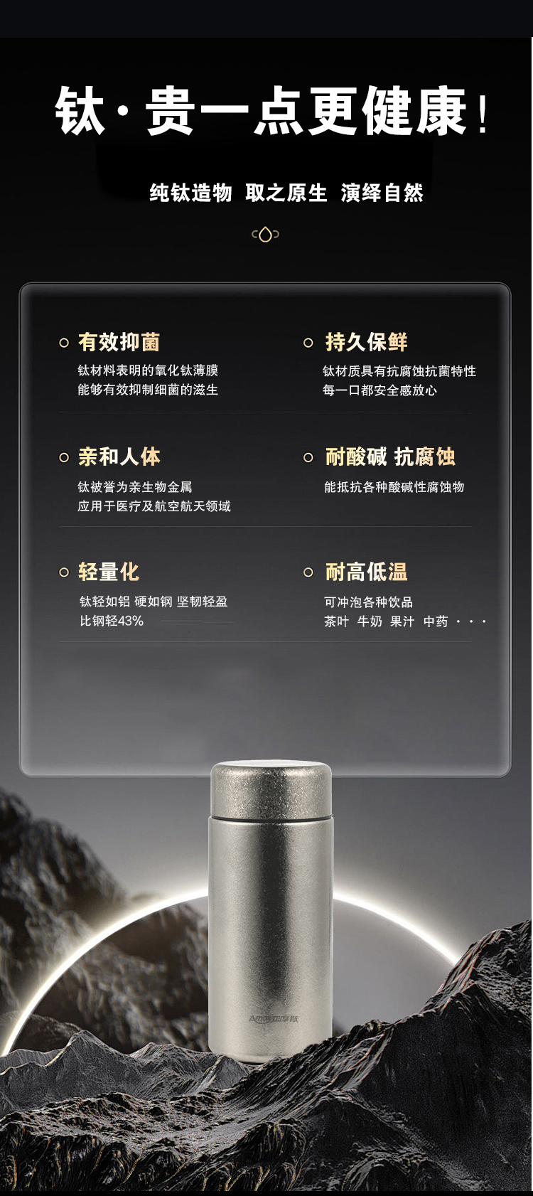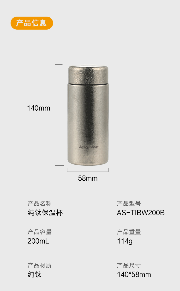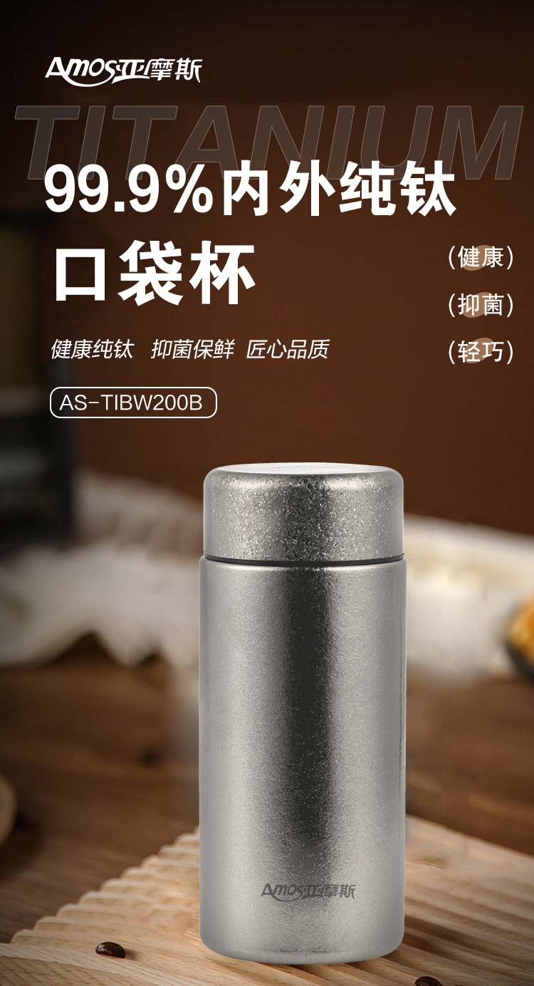 【健康纯钛 便携出行】亚摩斯口袋杯水杯保温杯内外纯钛200ML容量AS-TIBW200B(B)