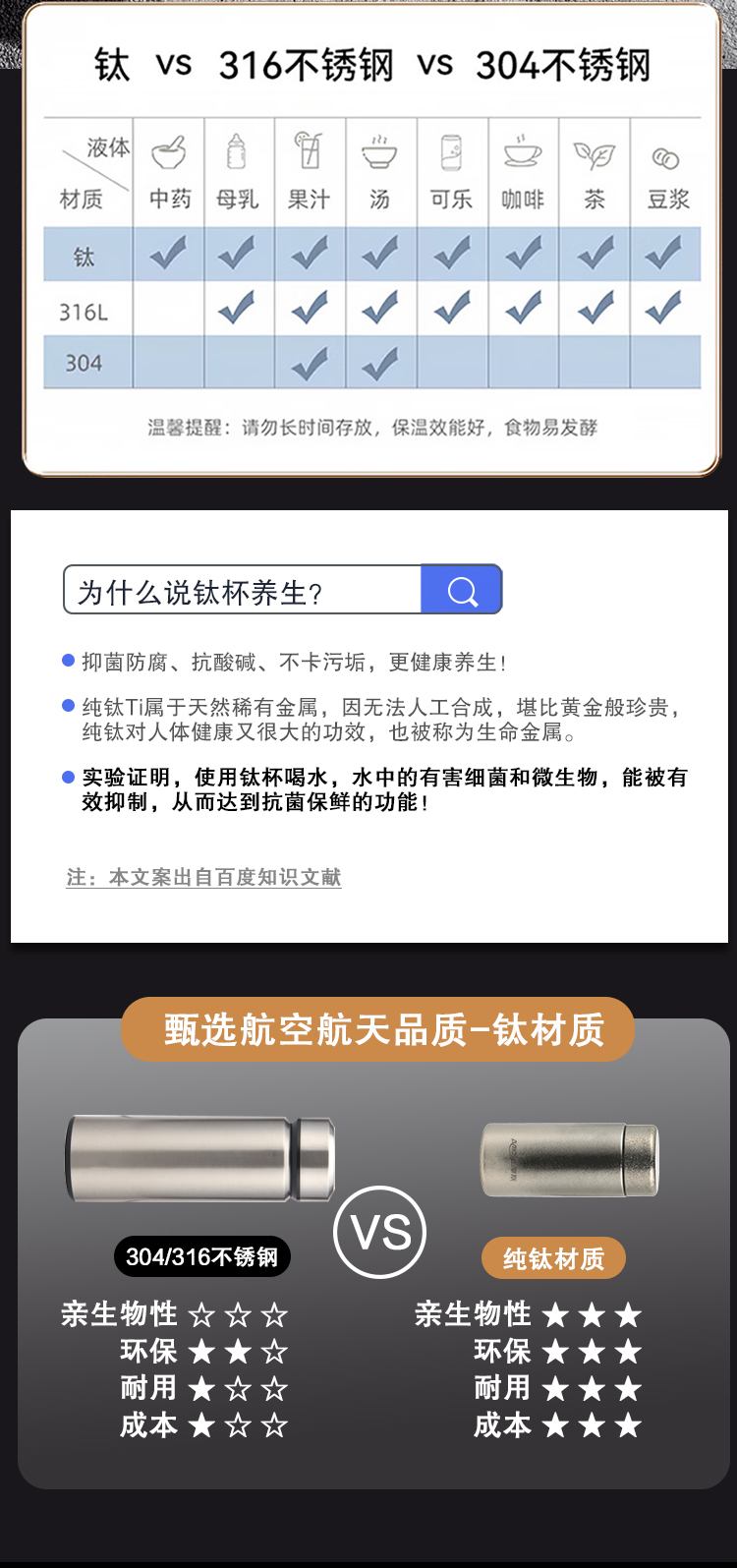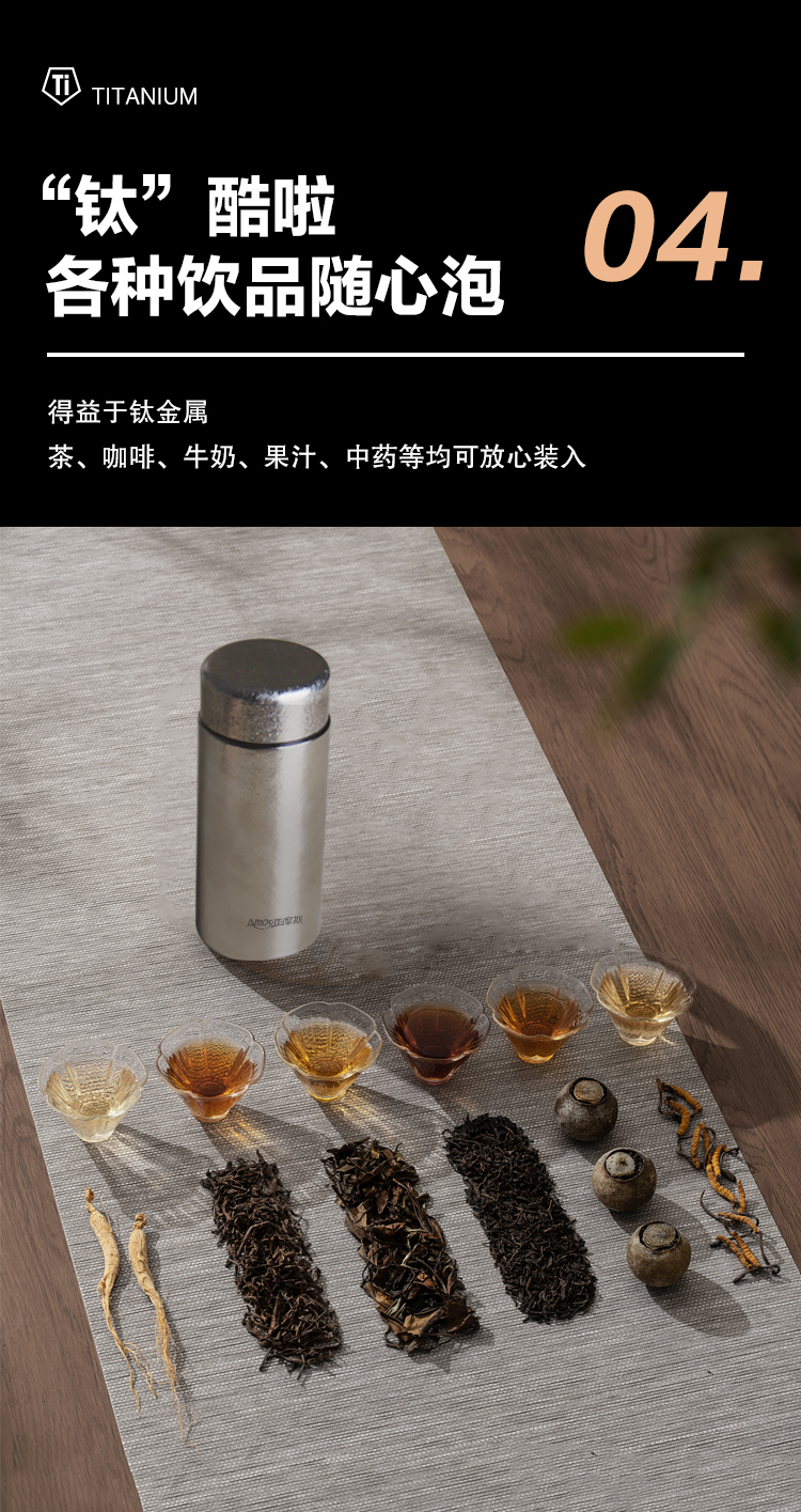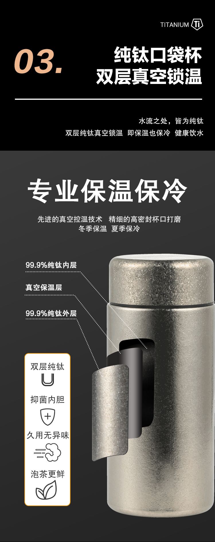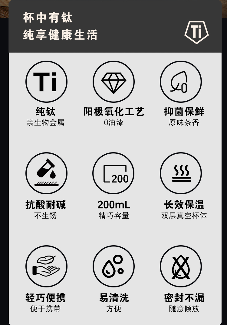 【健康纯钛 便携出行】亚摩斯口袋杯水杯保温杯内外纯钛200ML容量AS-TIBW200B(B)