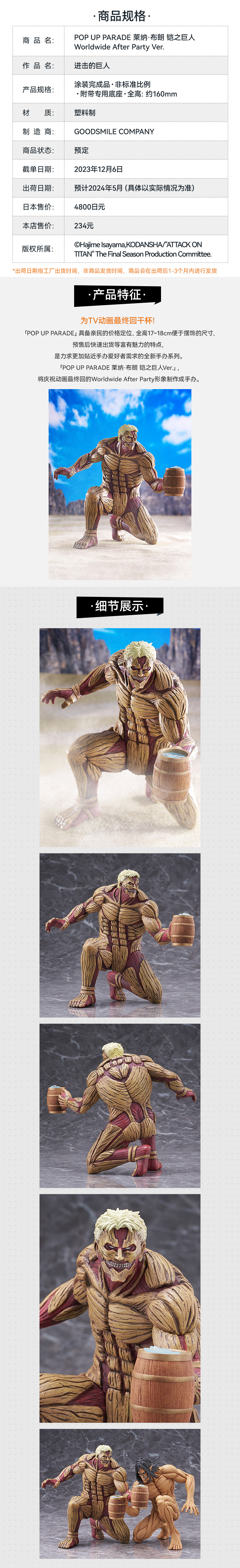 【GSC现货】POP UP PARADE 莱纳·布朗 铠之巨人 Worldwide After Party Ver. TV动画完结纪念版