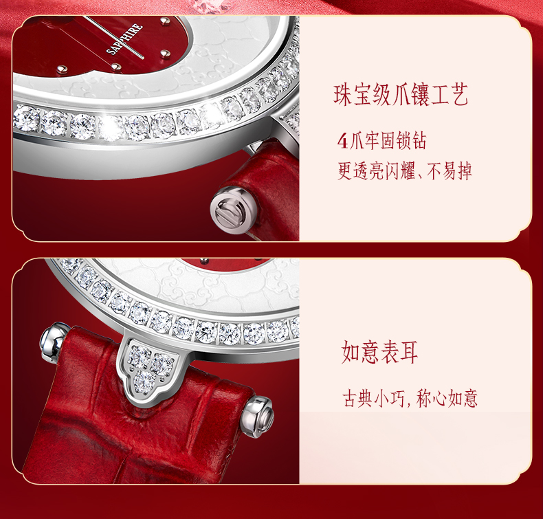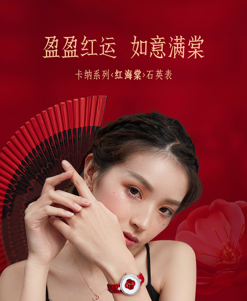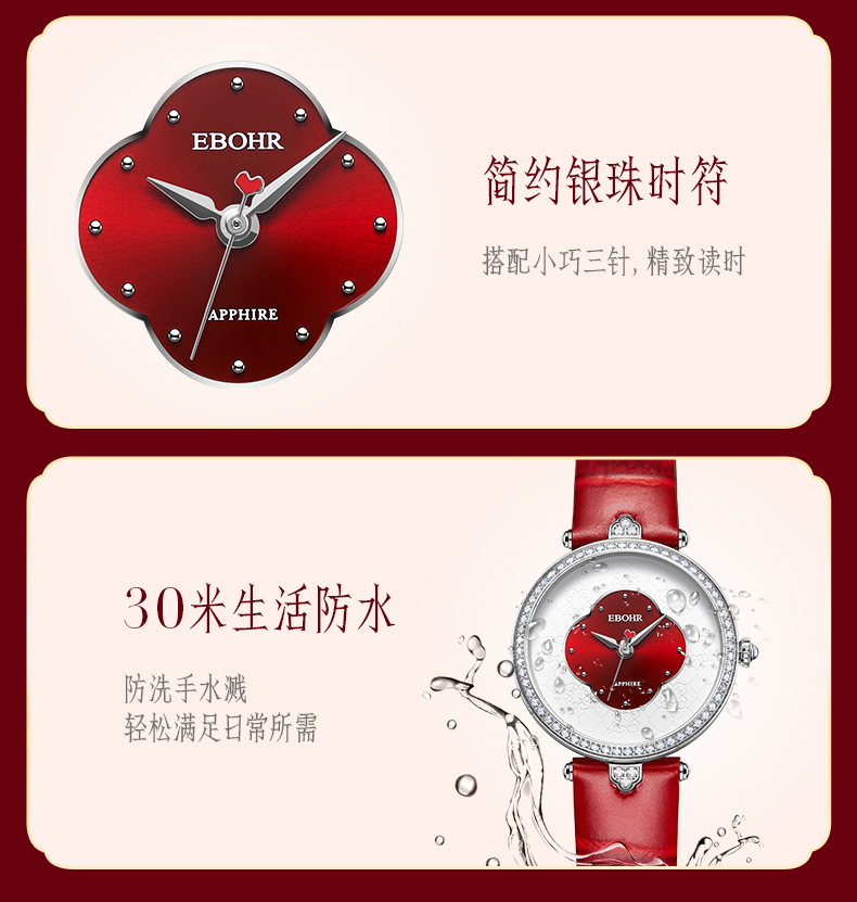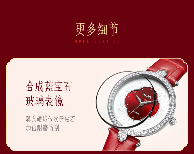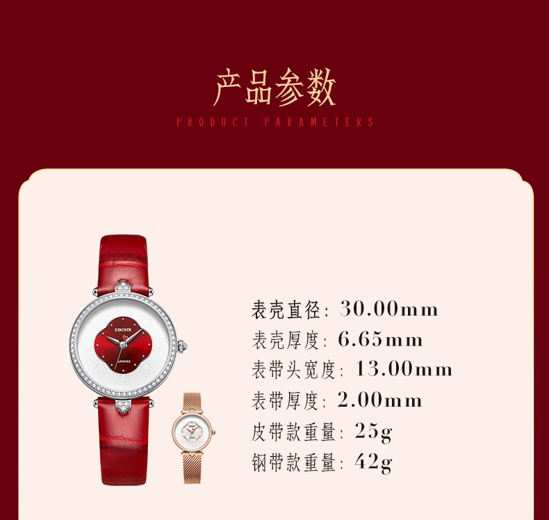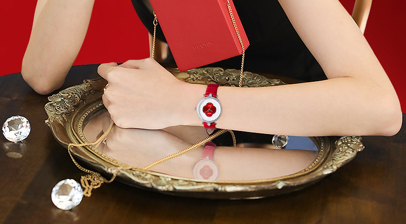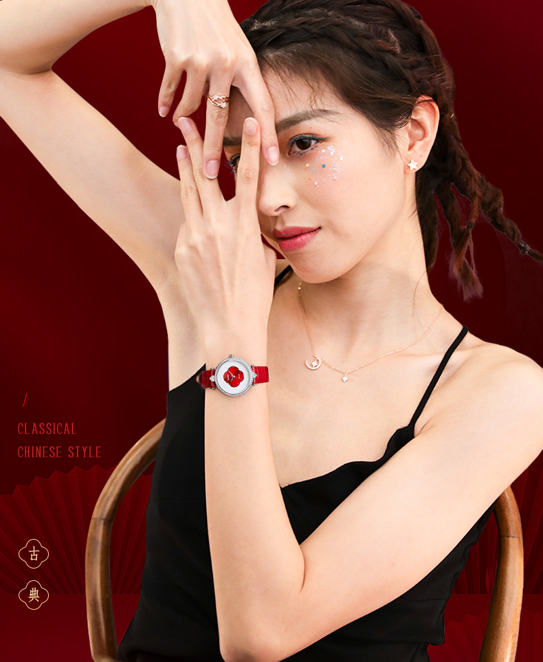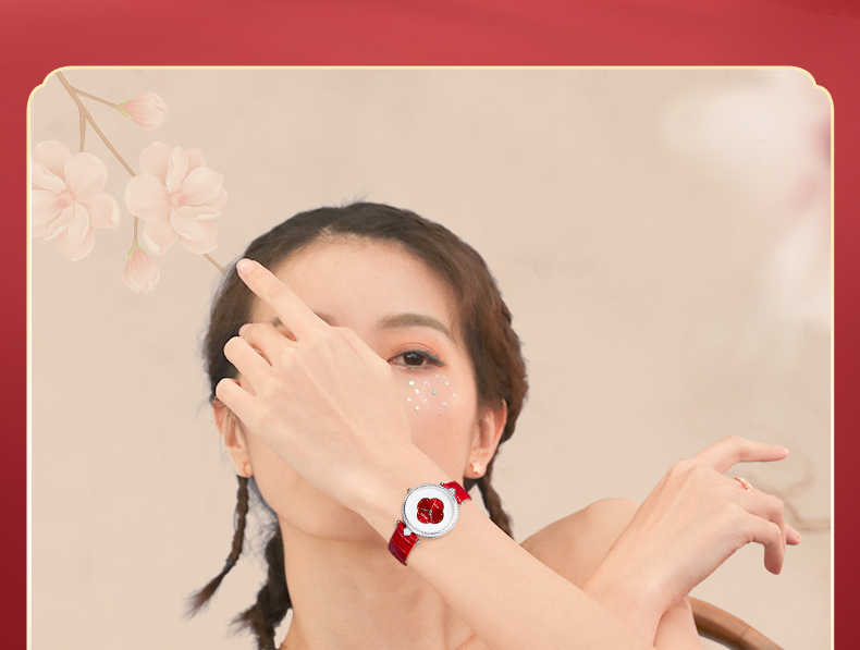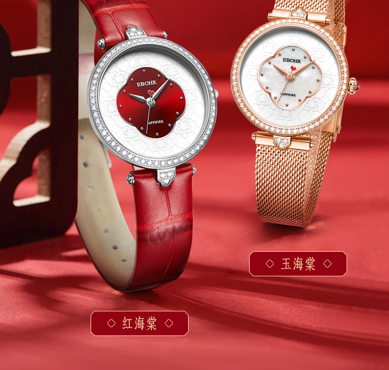 依波表/EBOHR 2024新款国风红海棠气质女款石英表5185