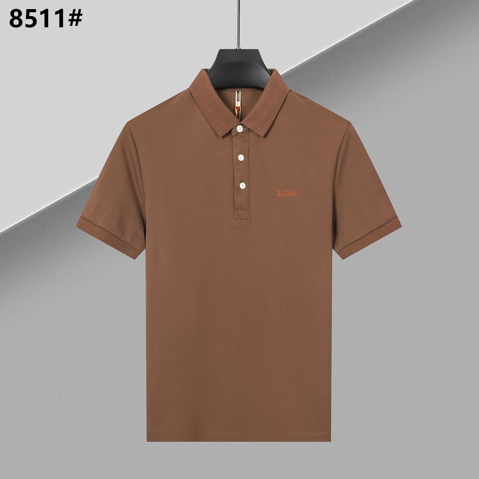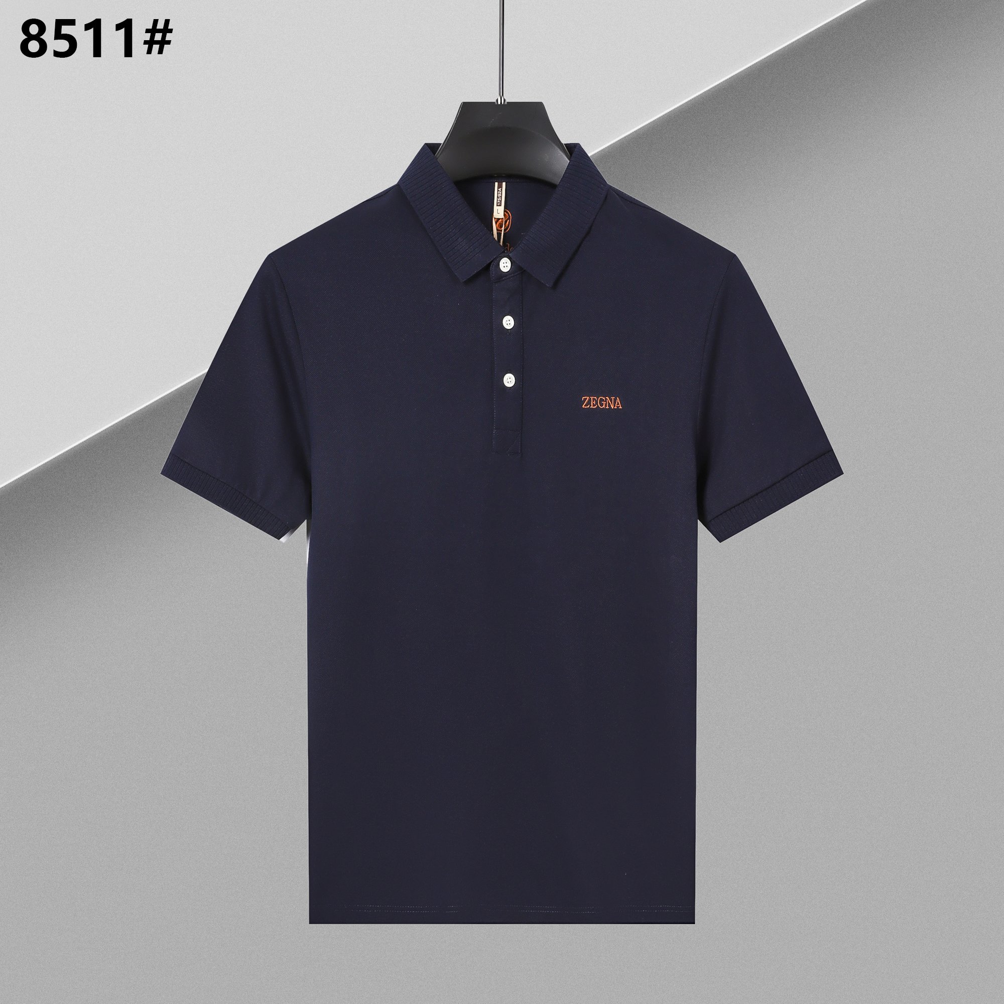 8511# 杰尼亚夏款丝光珠地棉商务半袖t恤男士简约休闲短袖polo衫 中蓝色