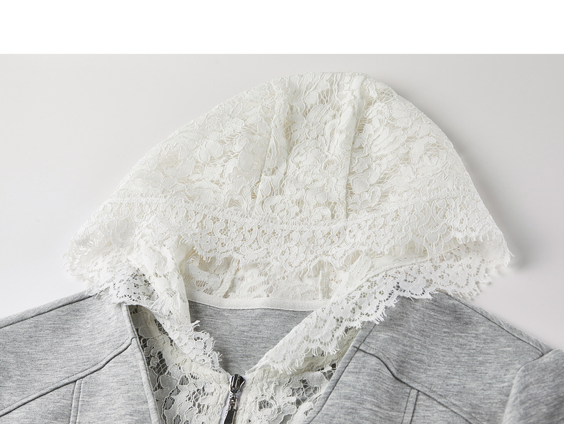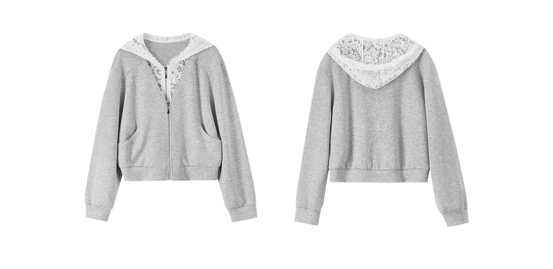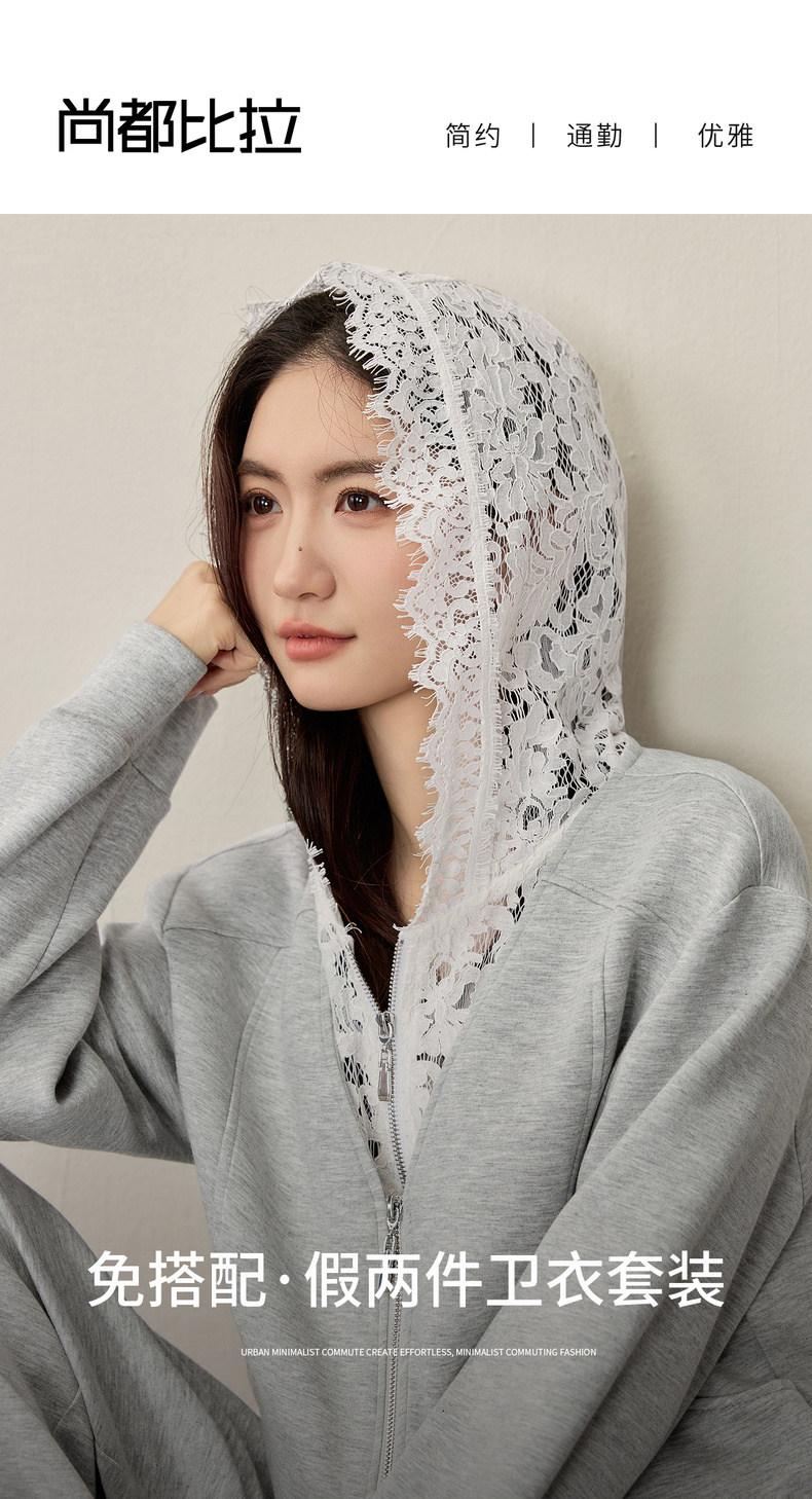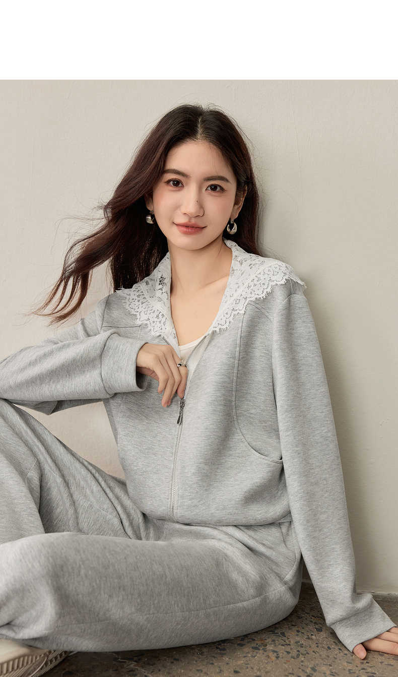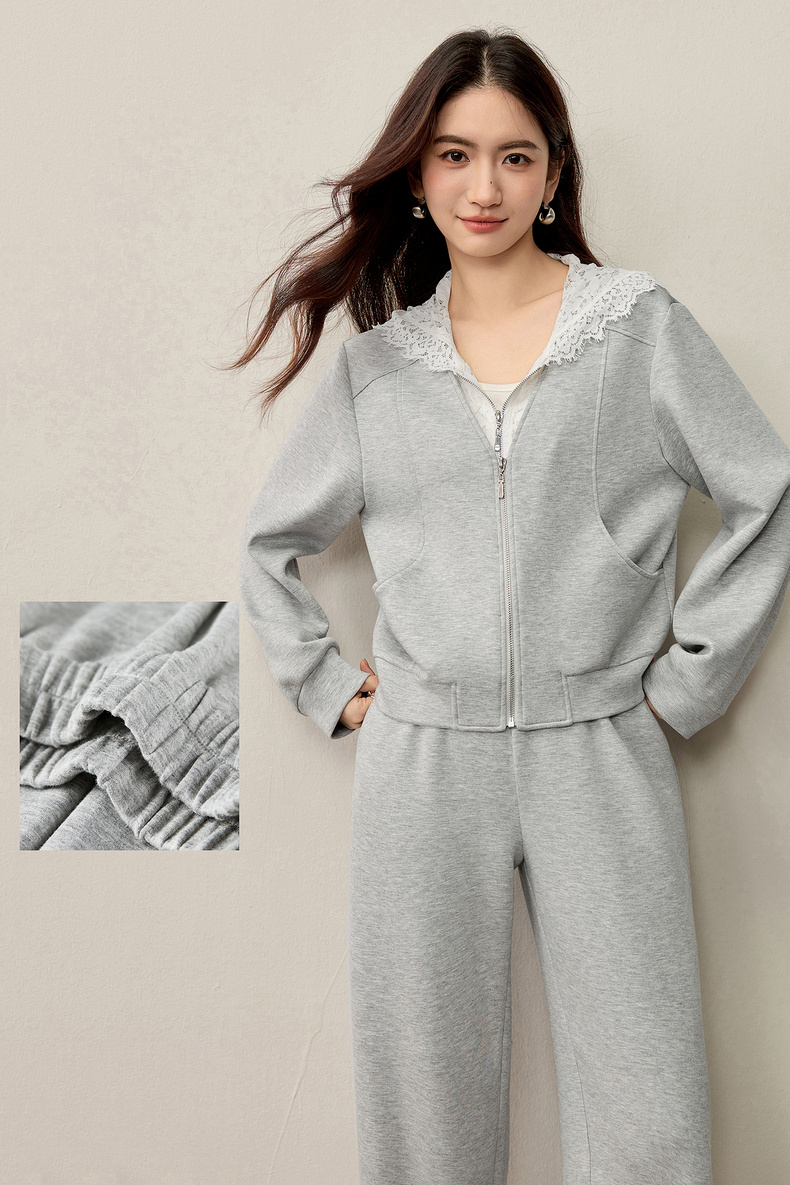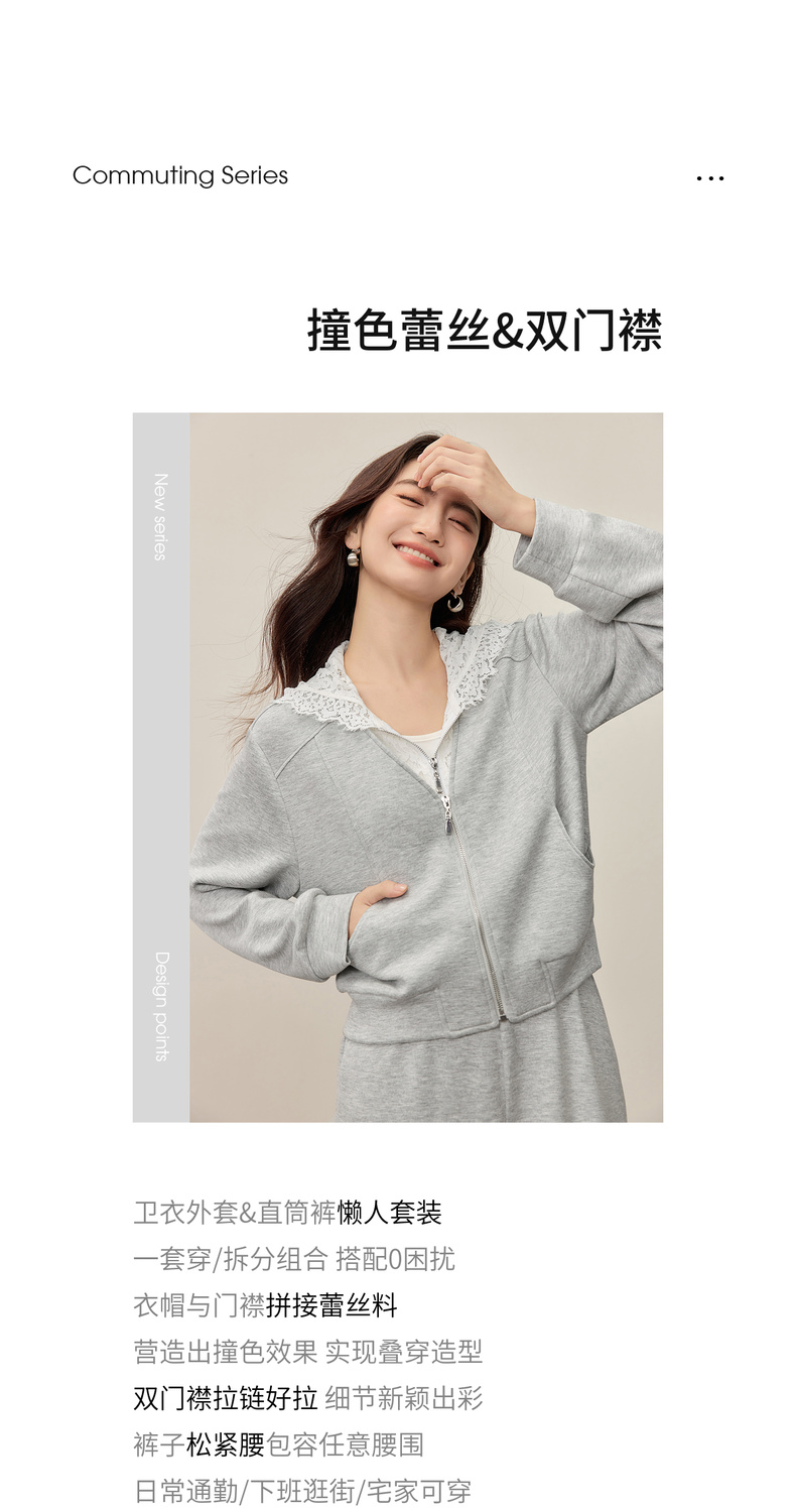 【内购】【免搭配套装】蕾丝连帽双门襟拉链卫衣外套&松紧腰直筒长裤-153ZH2491