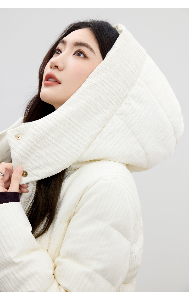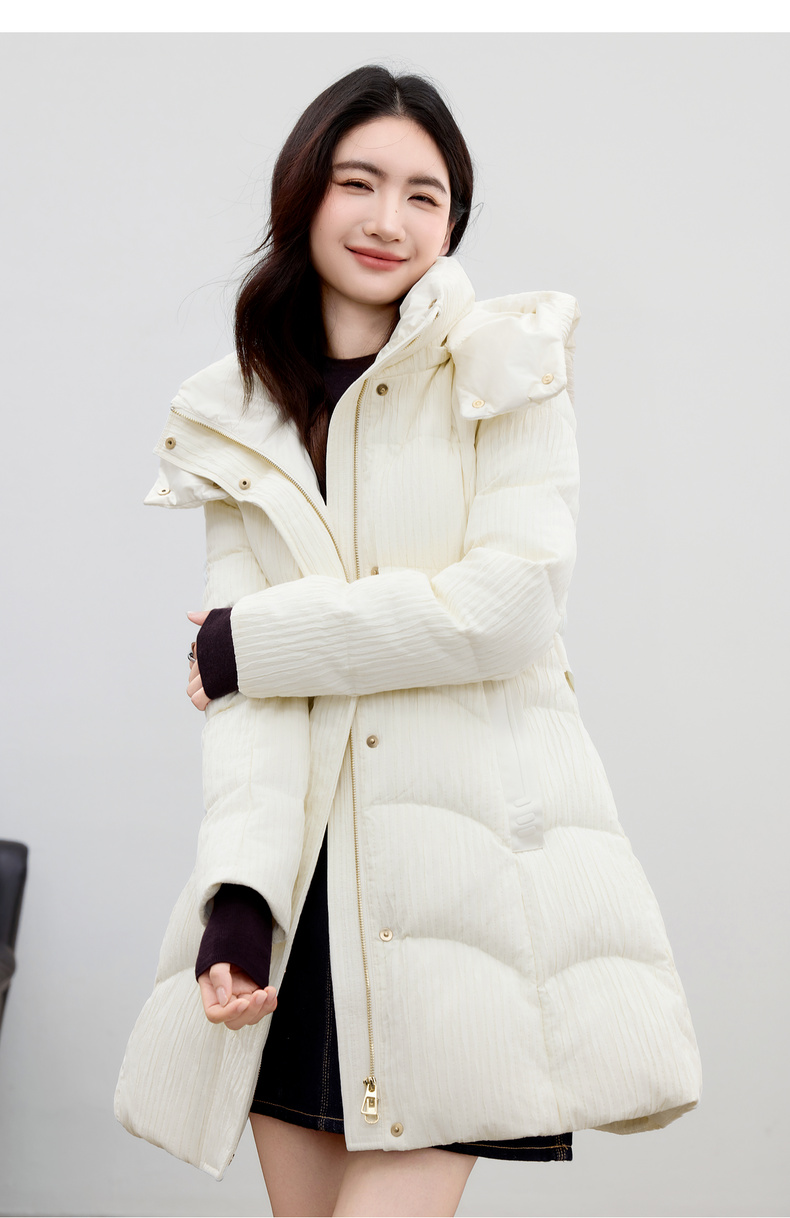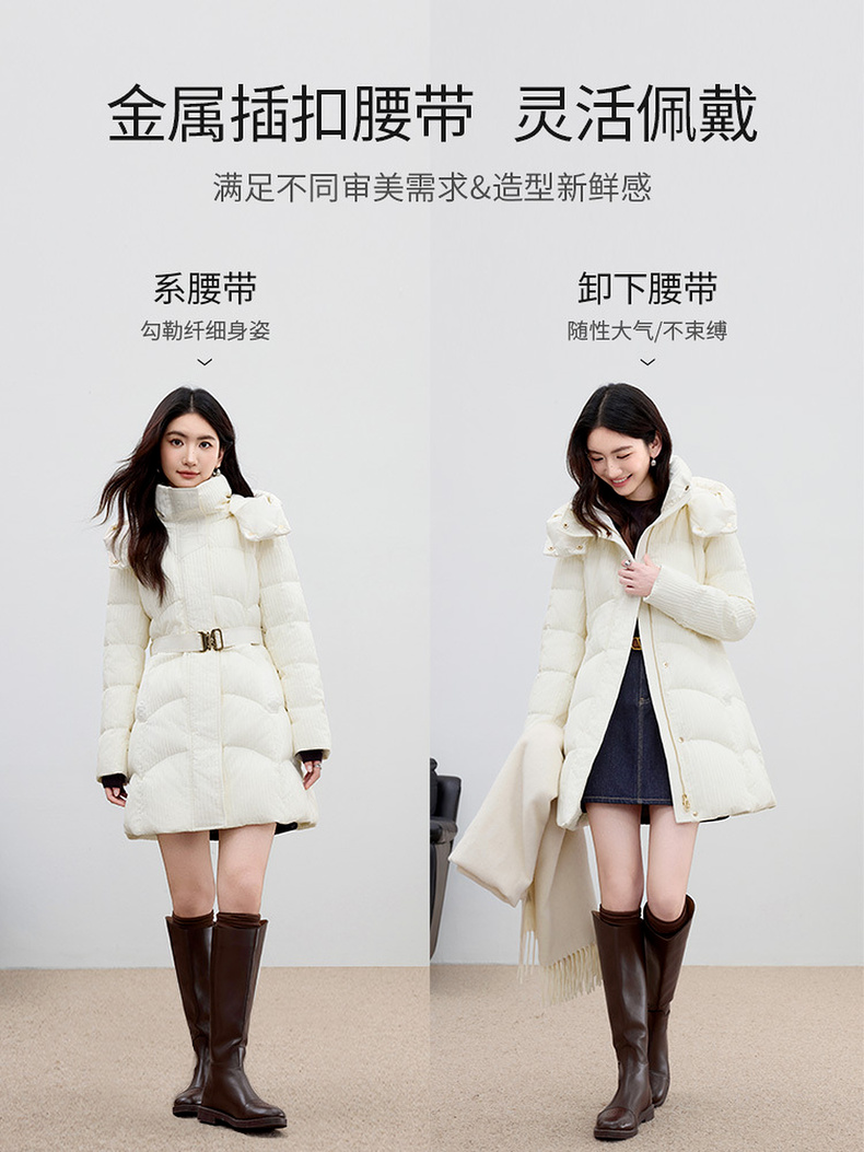 【内购】【90%白鸭绒】通勤立领可拆卸连帽腰带立体字母保暖中长款羽绒服-W54YA2881