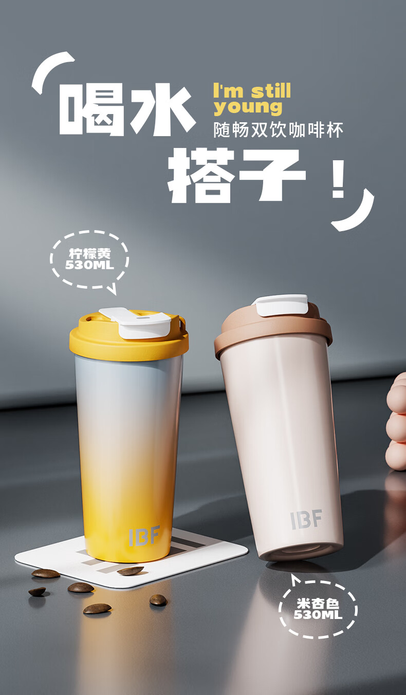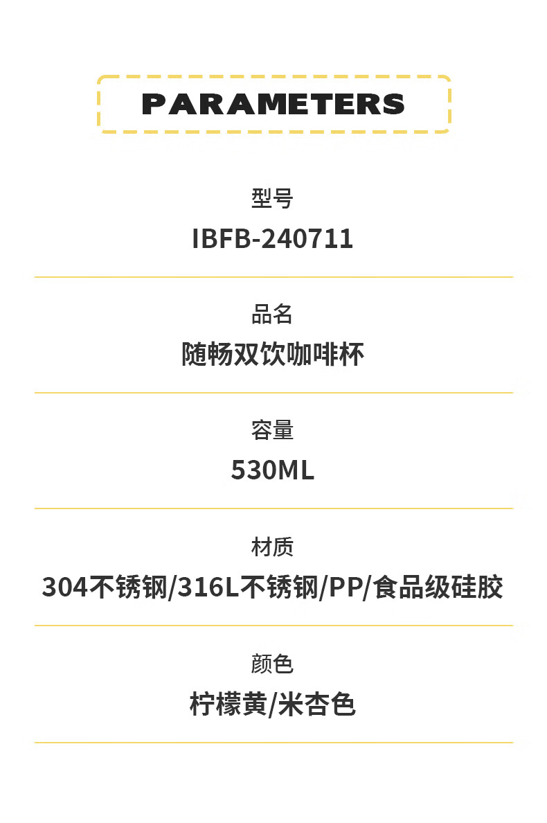 IBF艾博菲艾博菲艾博菲随畅双饮咖啡杯_柠檬黄_530ml【K】