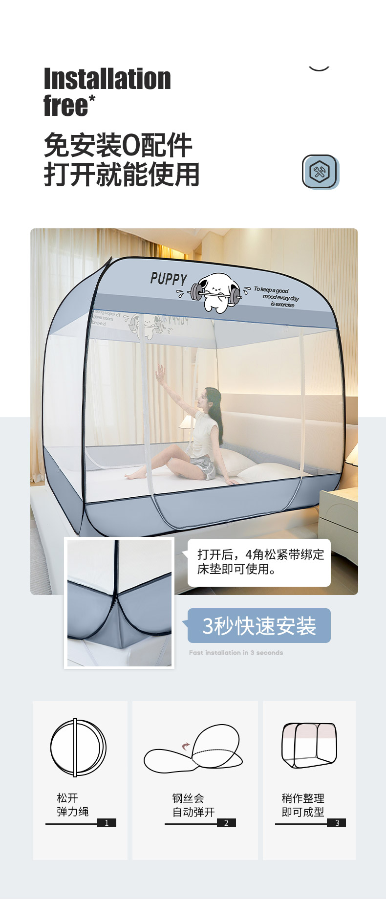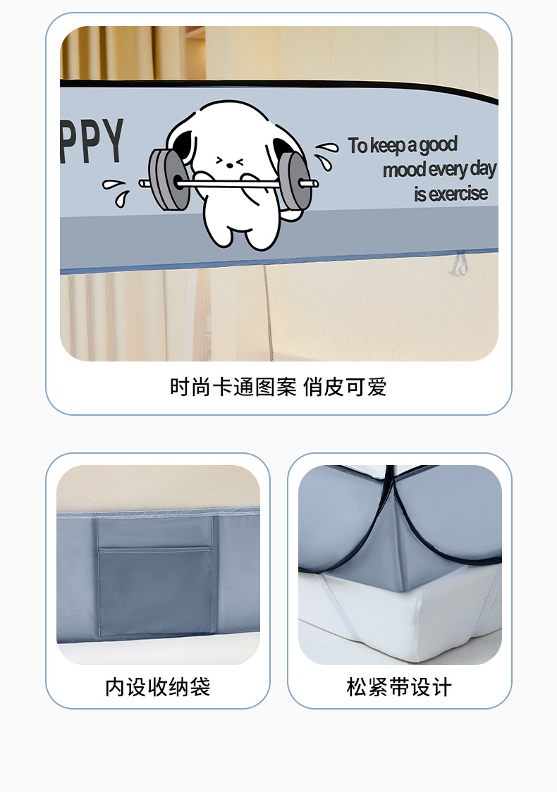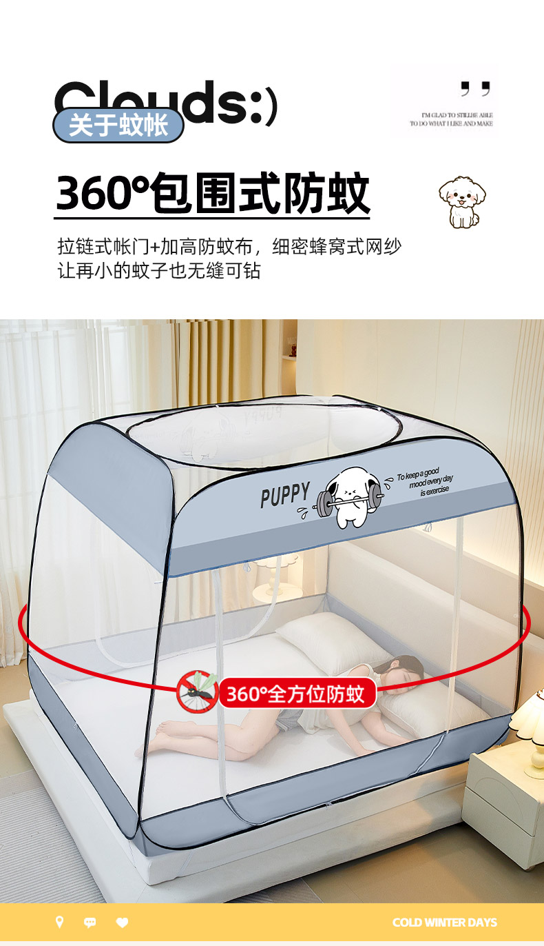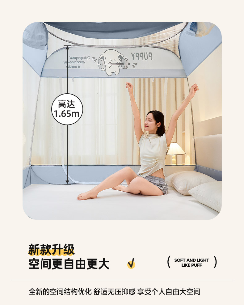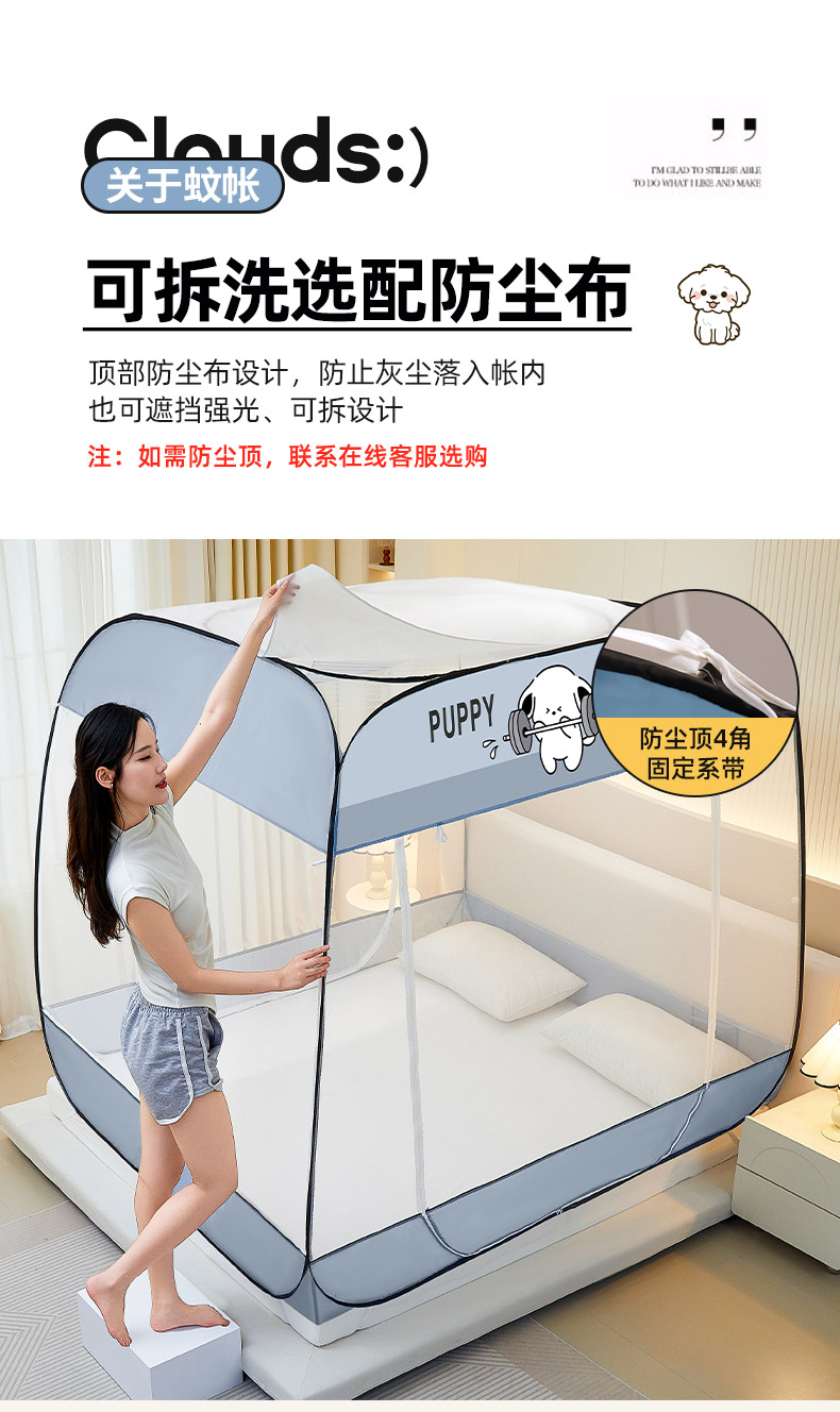 【品牌直发】加倍生活 A类防尘免安装大方顶蚊帐可折 10色可选 叠家用防摔儿童卧室蒙古包加密加厚