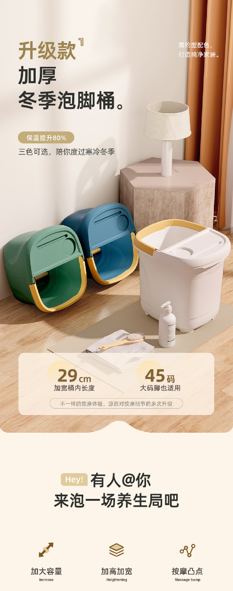 【加厚升级泡脚桶】小型家用保温按摩桶足浴桶 加高深桶宿舍塑料足疗桶洗脚盆