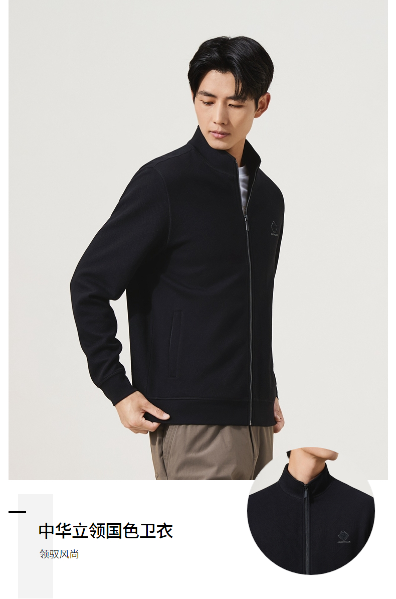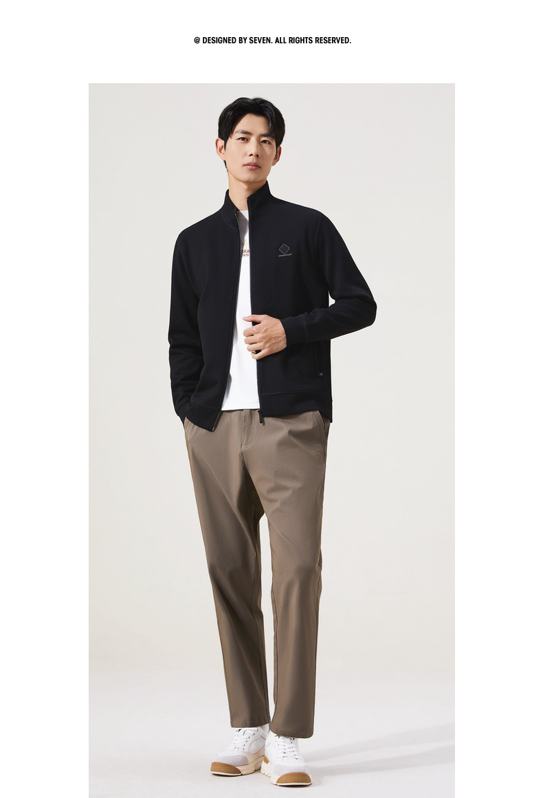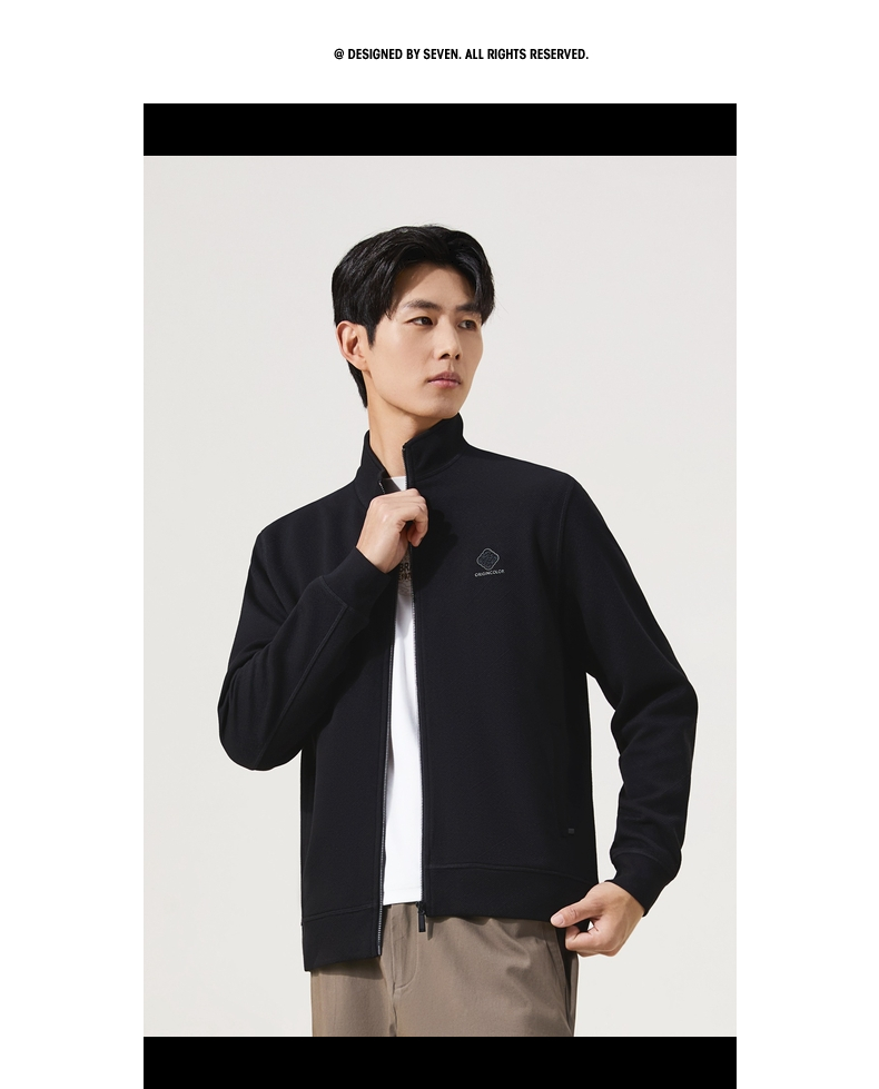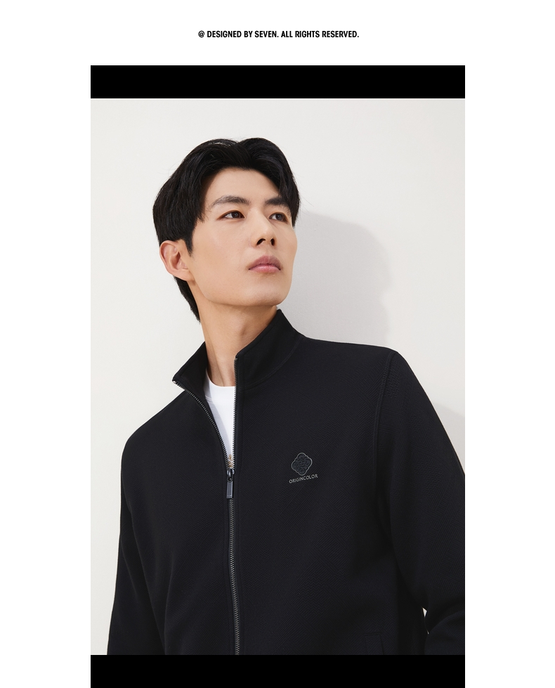 【立领拉链开衫】柒牌男装2025秋季国色提花莫代尔长袖开衫卫衣129W70150
