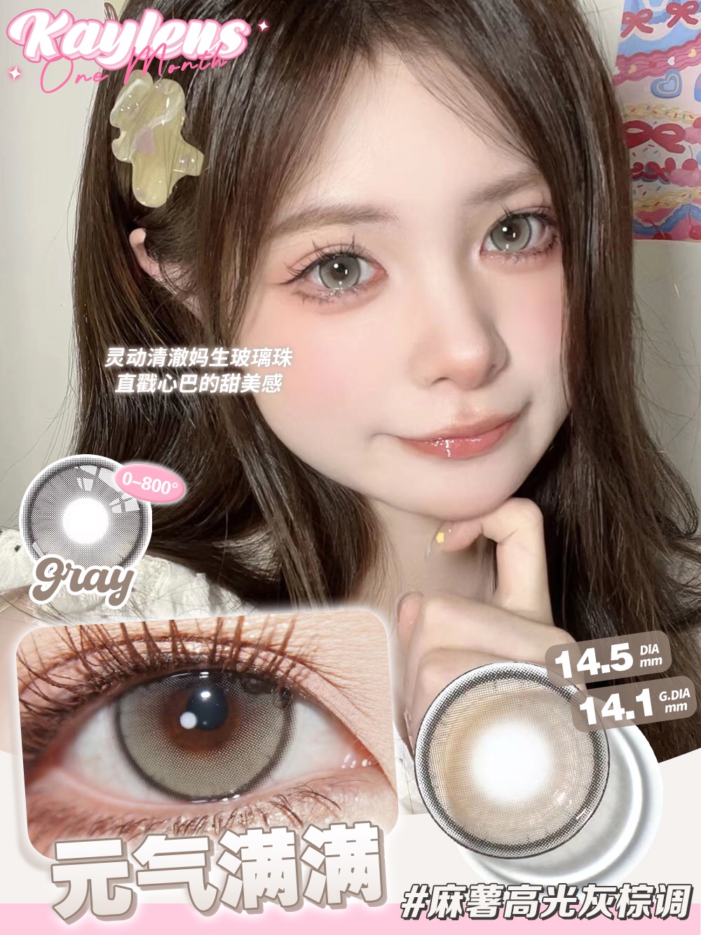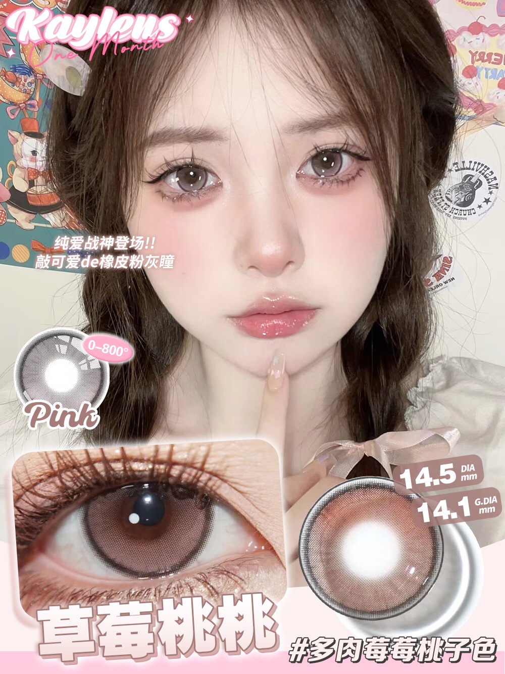 kaylens月抛 草莓桃桃/梦龙可可/元气满满 14.5mm 非离子 粉/棕/灰 abu实拍试色
