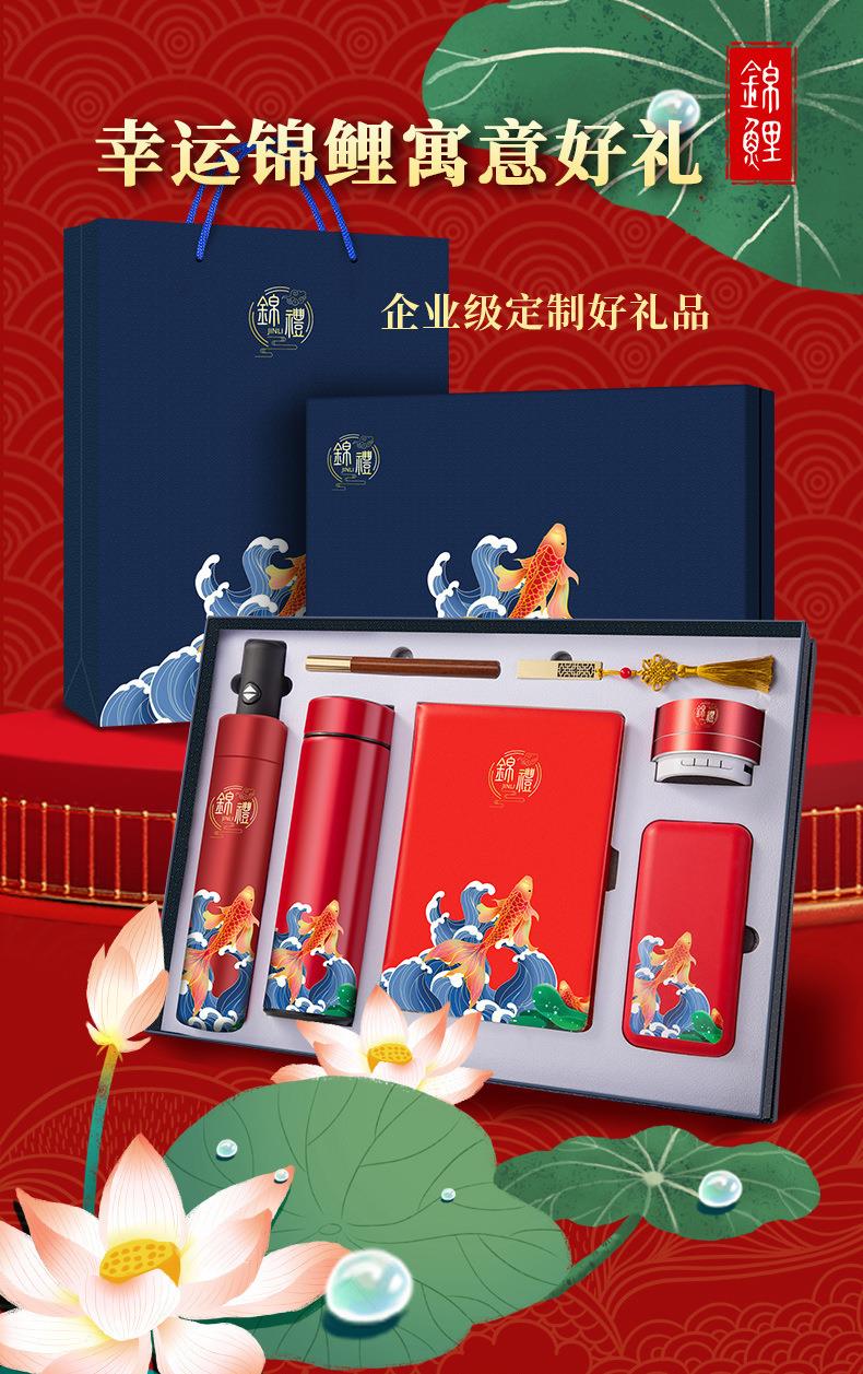 年会国潮商务礼品锦鲤雨伞保温杯套装公司开业周年活动实用伴手礼