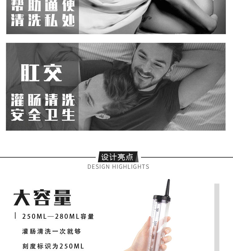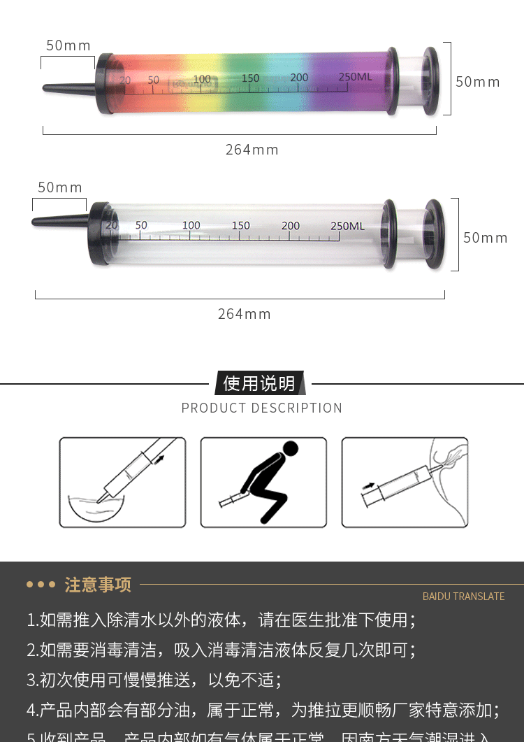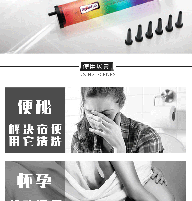 roomfun房趣 灌肠器250ML后庭肛门清洗器同志用品大溶量注射器冲洗器彩虹透明色