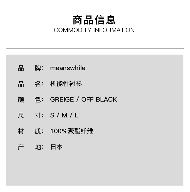meanswhile Breathable Side Slit L/S SH透湿透气防水机能性衬衫
