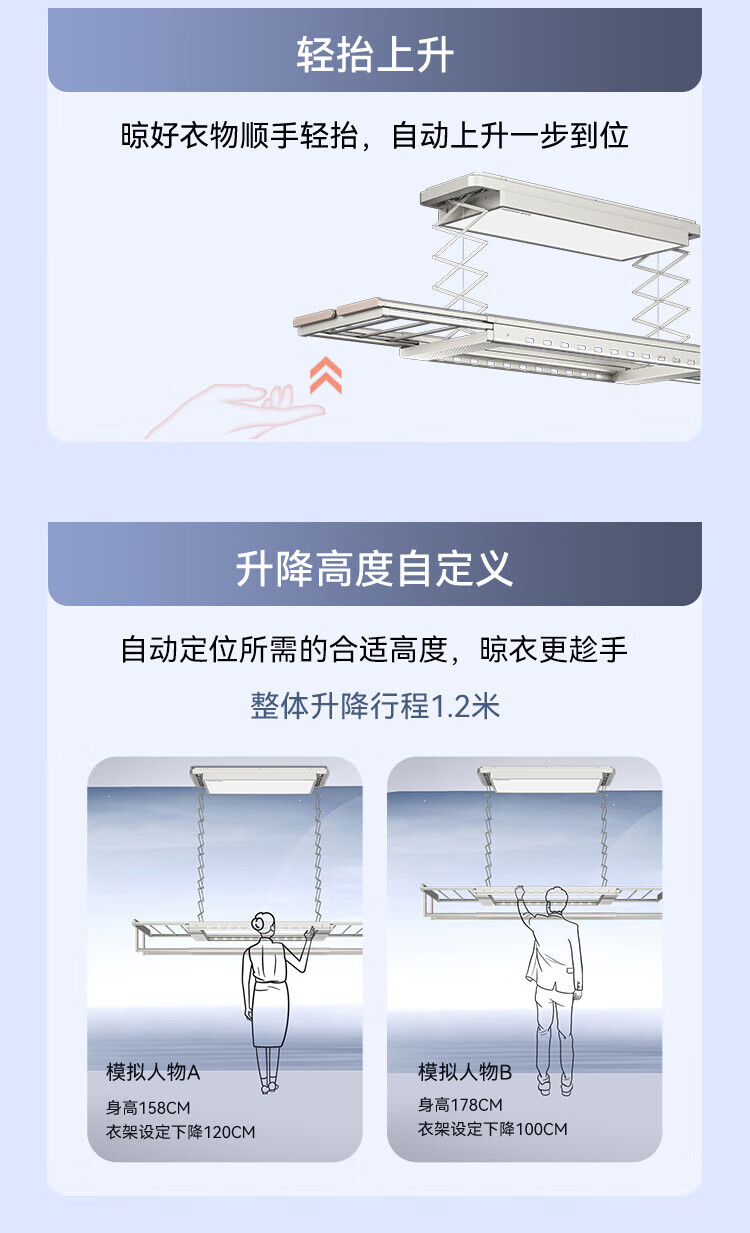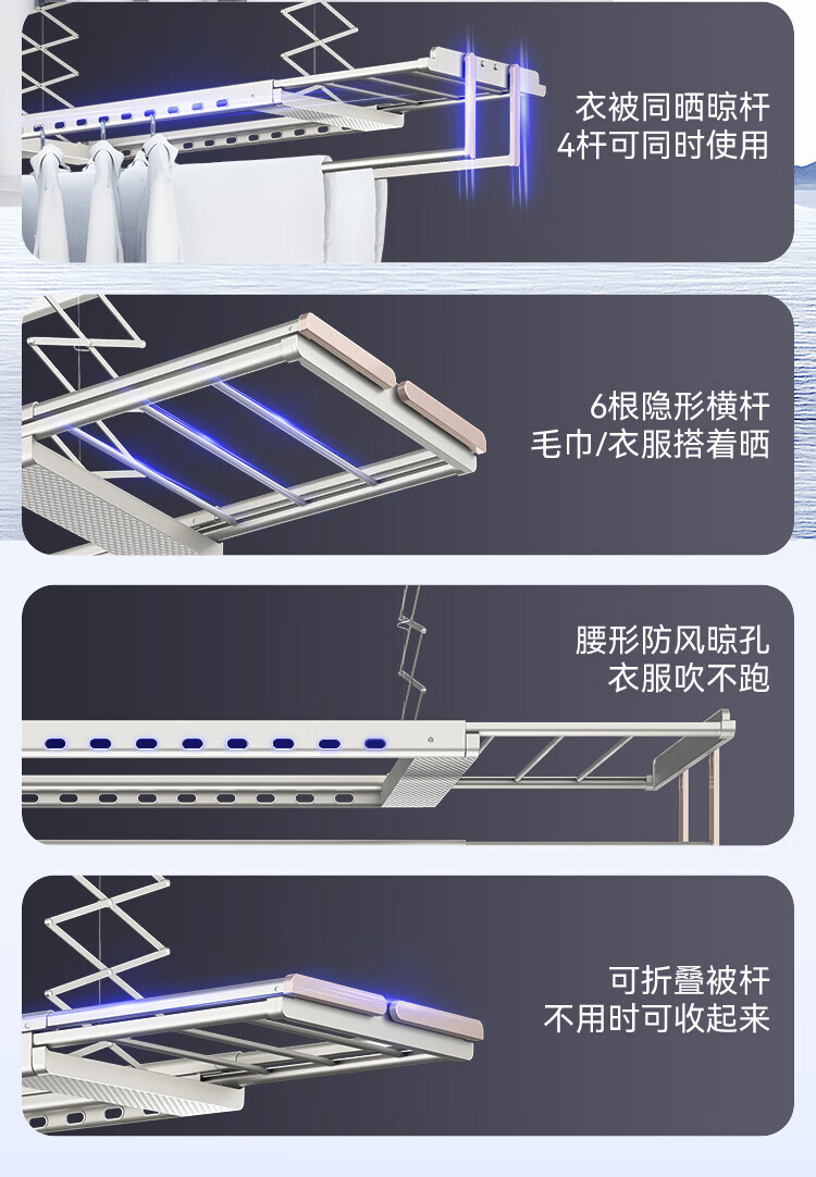 好太太(Hotata)电动晾衣架阳台智能晾衣机隐形嵌入式全自动升降阳台伸缩晾晒衣机 GW-109系列 语音+12个晾衣架