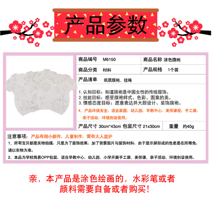 MEIKE美可【涂色旗袍】幼儿园课堂手工DIY纸质涂色旗袍材料包