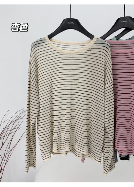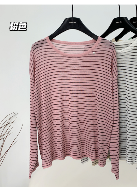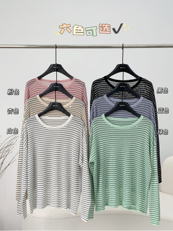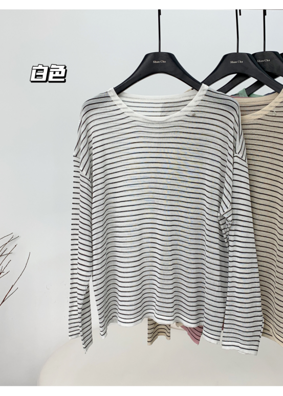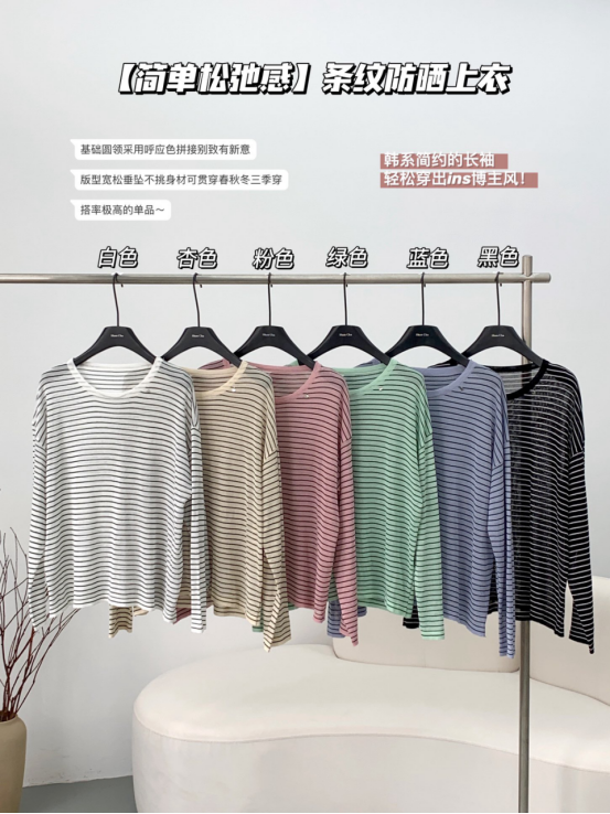 独家首发❗夏日第一件防晒长袖💥【六色法式条纹防晒套头长袖】显瘦不在话下❗真的甜辣十足❗巨好看巨好搭设计感十足!49.9元错过后悔哭😎 ✔88%仿亚麻粘胶和12%尼龙面料,自带防晒力秒了烂大街的防晒衣 ✔oversize版型的设计,微胖的小美女穿上也能有视觉显瘦的效果 ✔150克轻量好物,微微透风格内搭背心吊带简直一绝 均码80-130斤,百搭又时髦
