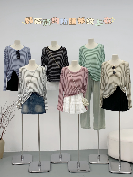 夏天来了阳光热烈 美少女可不能晒黑了🔥 长袖防晒T来安排上 中长设计 质感轻盈透气 既遮阳又不闷热 无论是内搭还是作为外搭都超级百搭😍 内搭背心 吊带 下穿休闲裤 牛仔裤 都能展现出你的独特魅力👏 超级解腻的六个色系搭配条纹风格 法式系小姐姐不就来了 夏日视觉降温TOP1 清新春夏 好爱这种简单感觉的风格 显得真的好乖 好显白 少女感穿搭