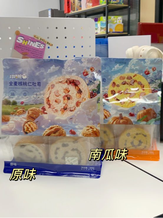 【全麦核桃仁吐司袋装(原味&南瓜味)】 全麦核桃仁吐司是一款结合了健康与美味的特色烘焙产品, 尤其适合注重健康饮食和减脂代餐需求的消费者。 双口味的全麦核桃仁吐司(南瓜味和原味)满足你的味蕾