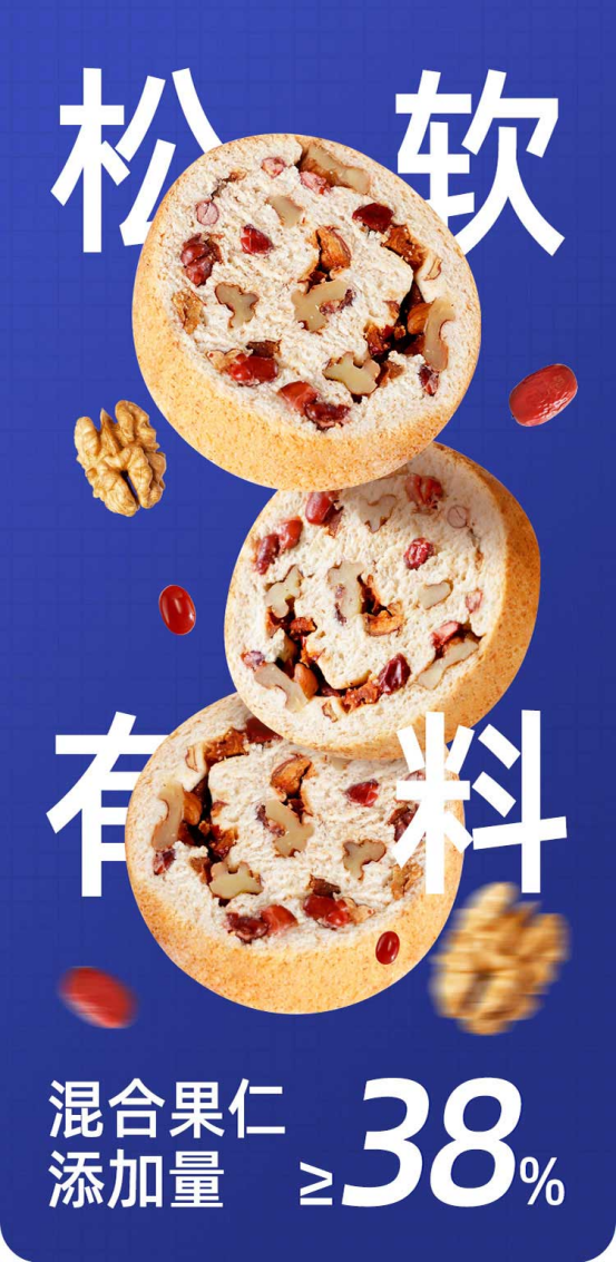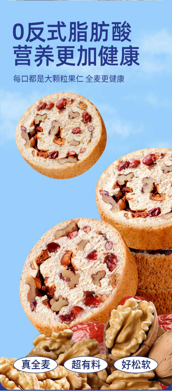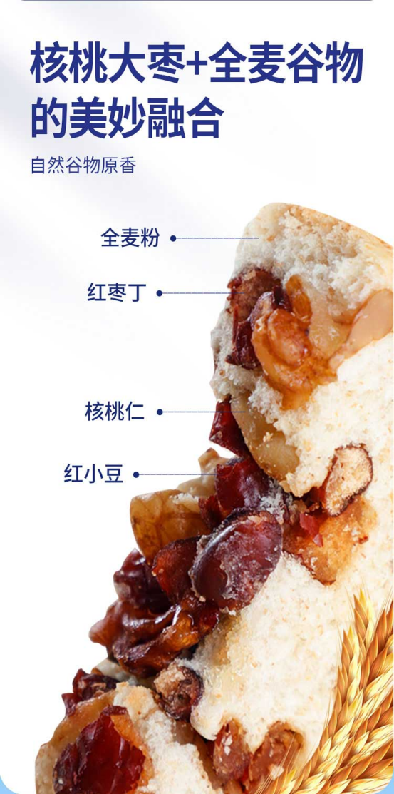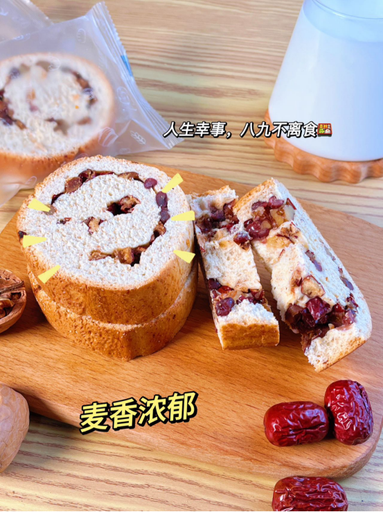 【配料】全麦粉、混合果仁≥38%、饮用水、食用小麦麸皮、纯牛奶、海藻糖、鲜酵母......