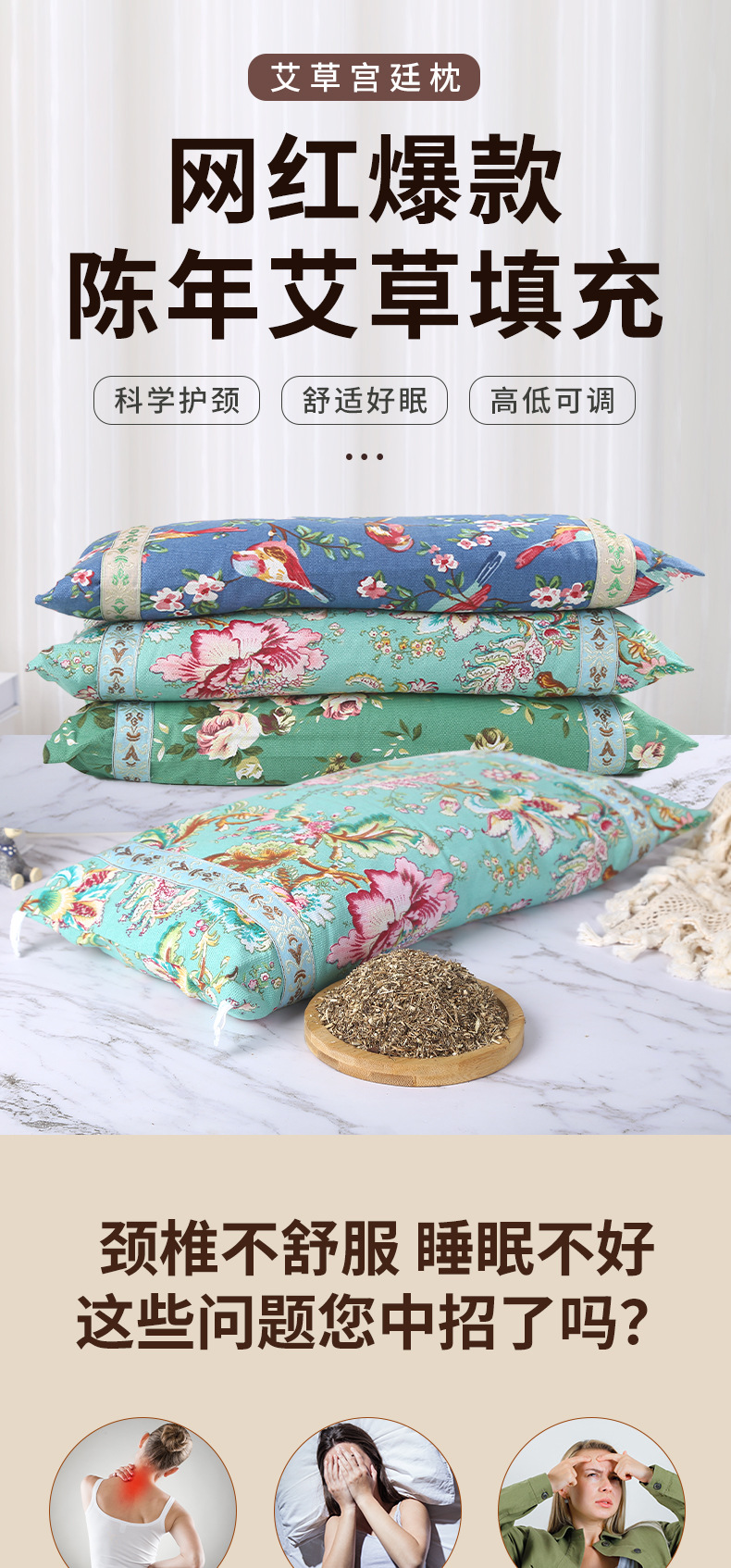 【舒适好眠!方形艾草宫廷枕】高低可调节,科学护颈!刺绣棉麻艾草枕护颈睡觉可调节拆卸艾草颈椎枕头